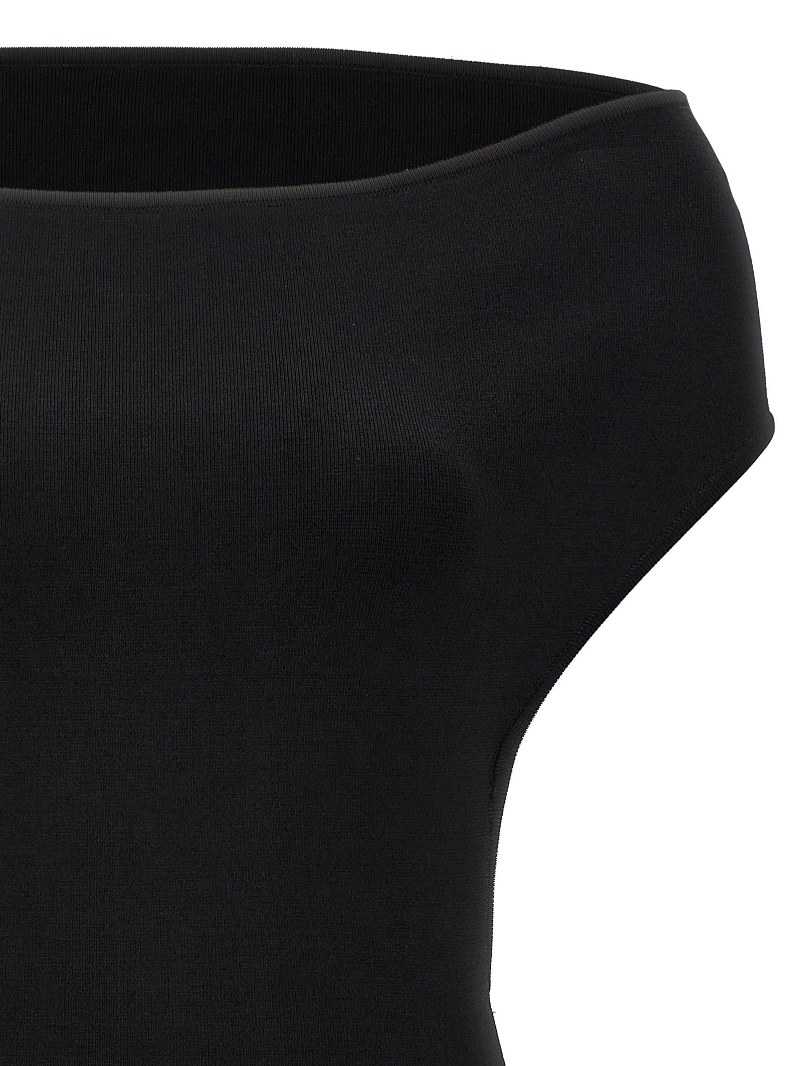 Abito "La Robe Cubista" in viscosa elastica, modella fuori dalla spalla, schiena nuda.