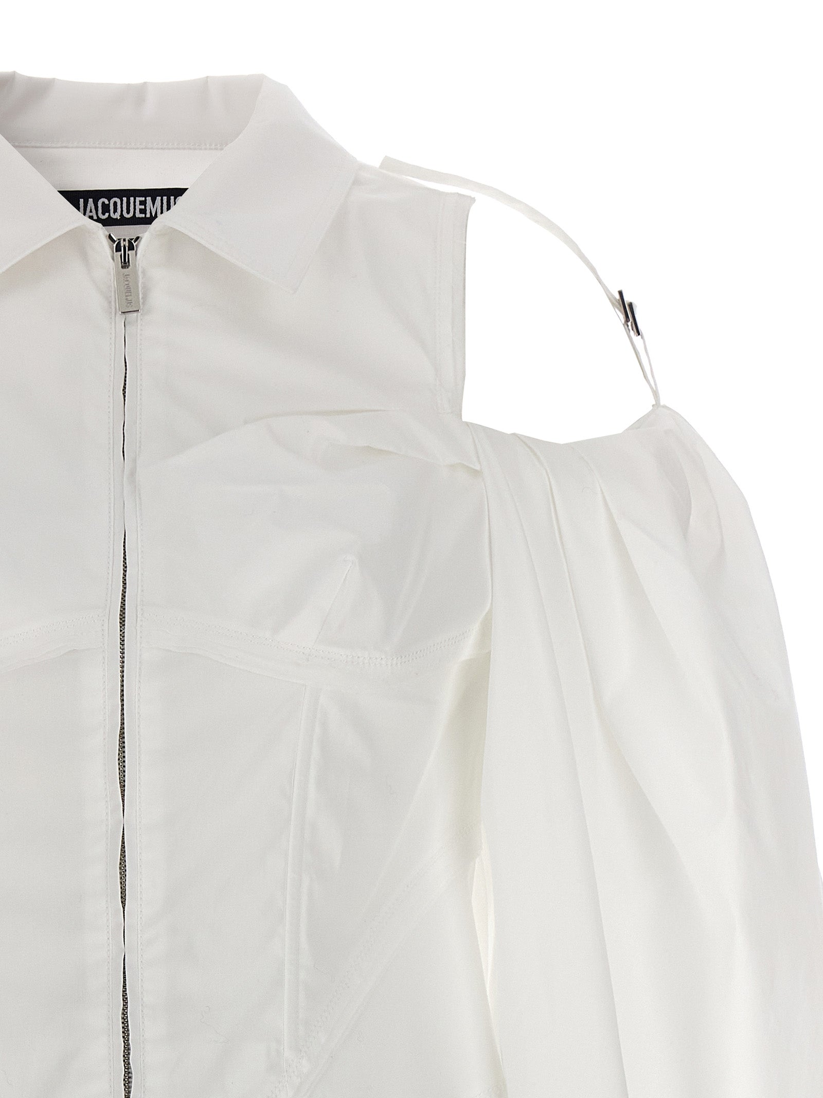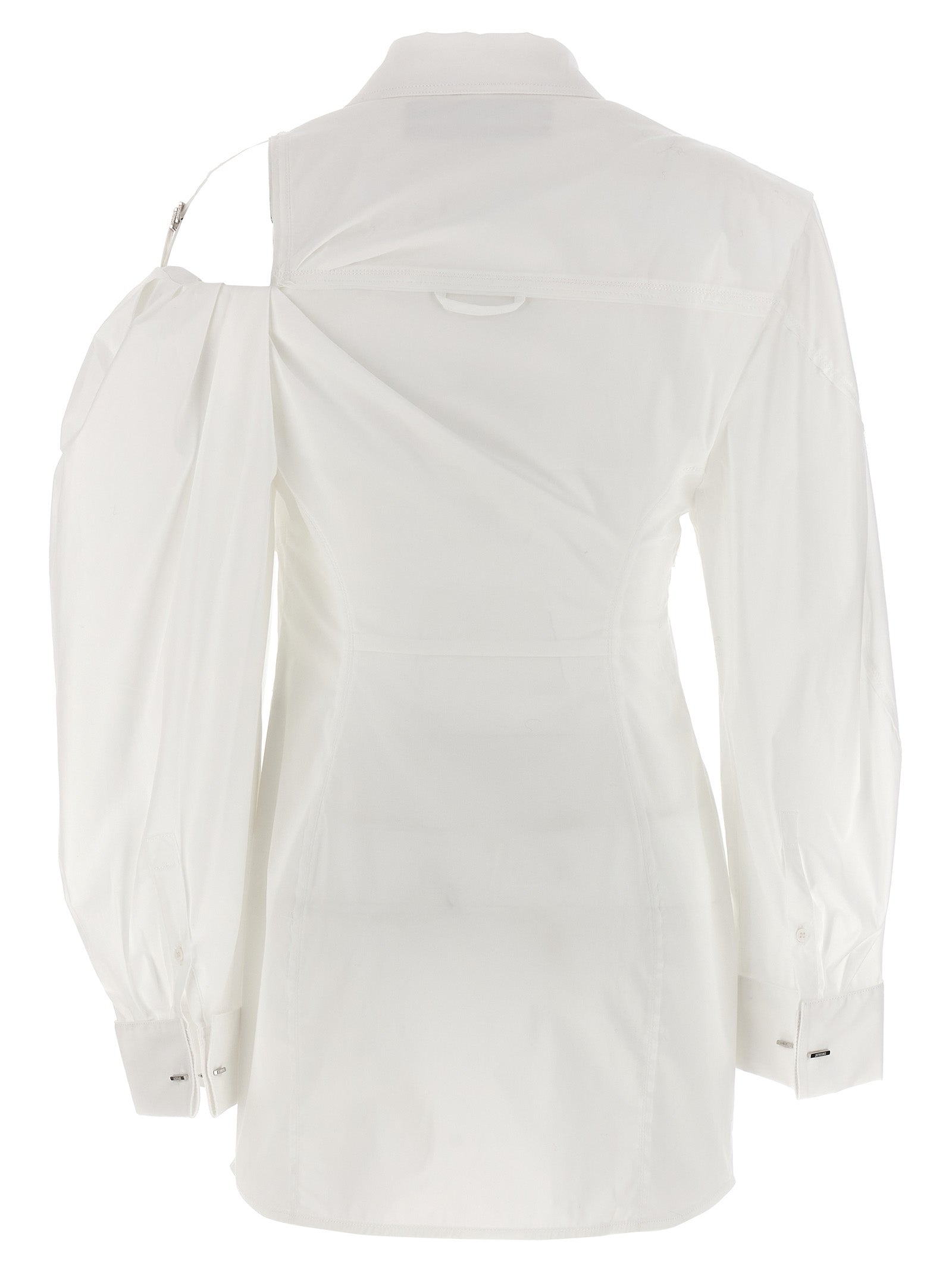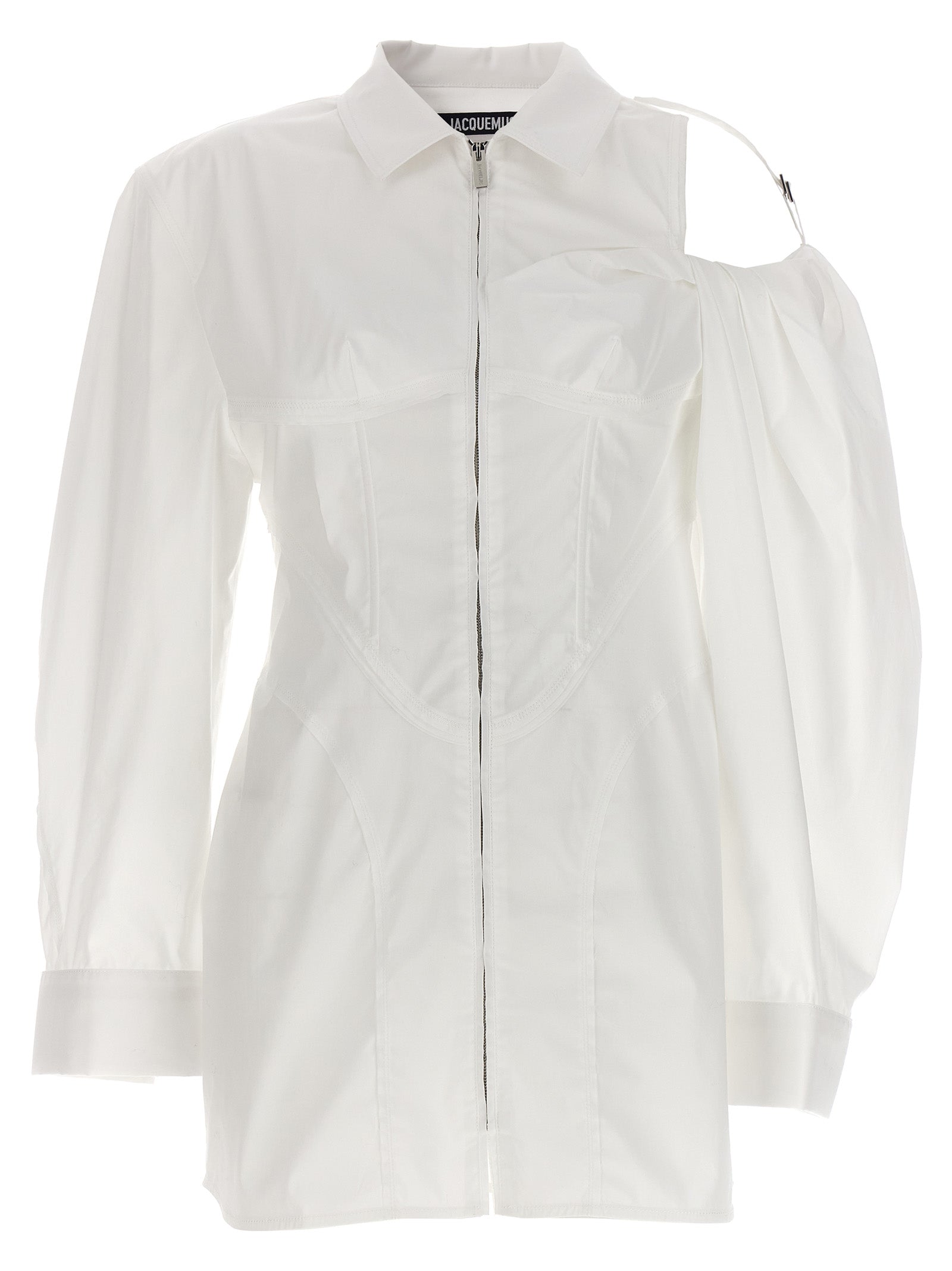 Abito "La Robe Galliga" in viscosa elastica, modello sagomata con corsetto, chiusura della cerniera anteriore, modello asimmetrico con una manica normale e una manica a soffio con ritaglio sulla spalla.