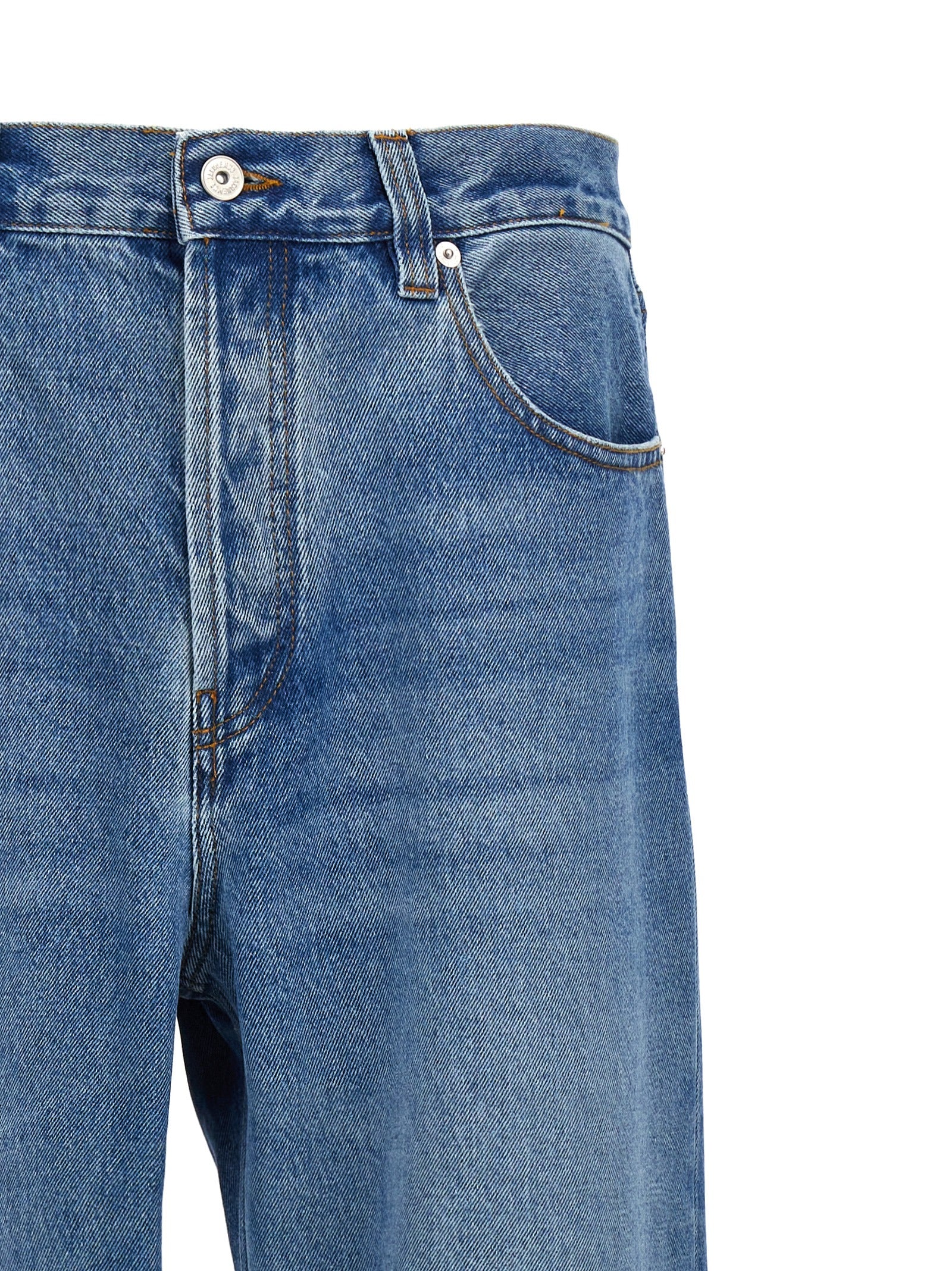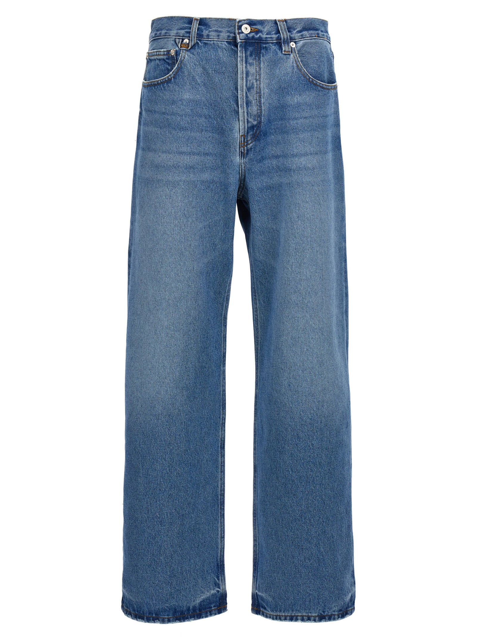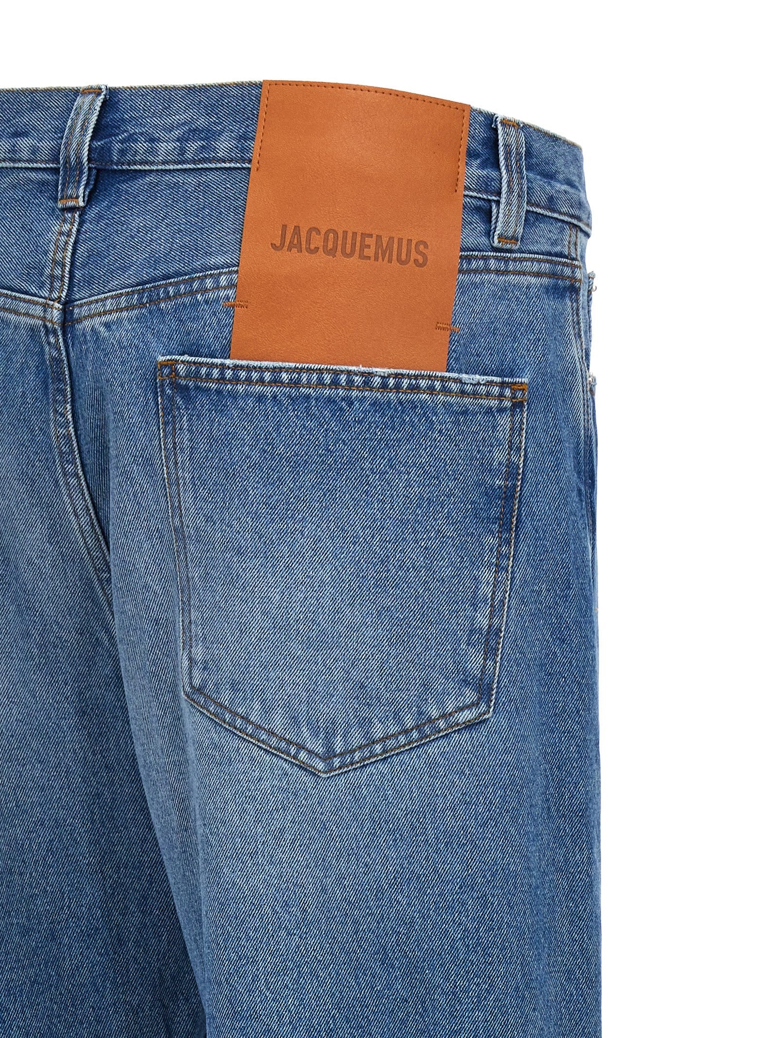 Jeans in denim in cotone "Le de Nîmes Droit" con dettagli a effetto usato, chiusura dei pulsanti, cinque tasche, tag a logo maxi in pelle.