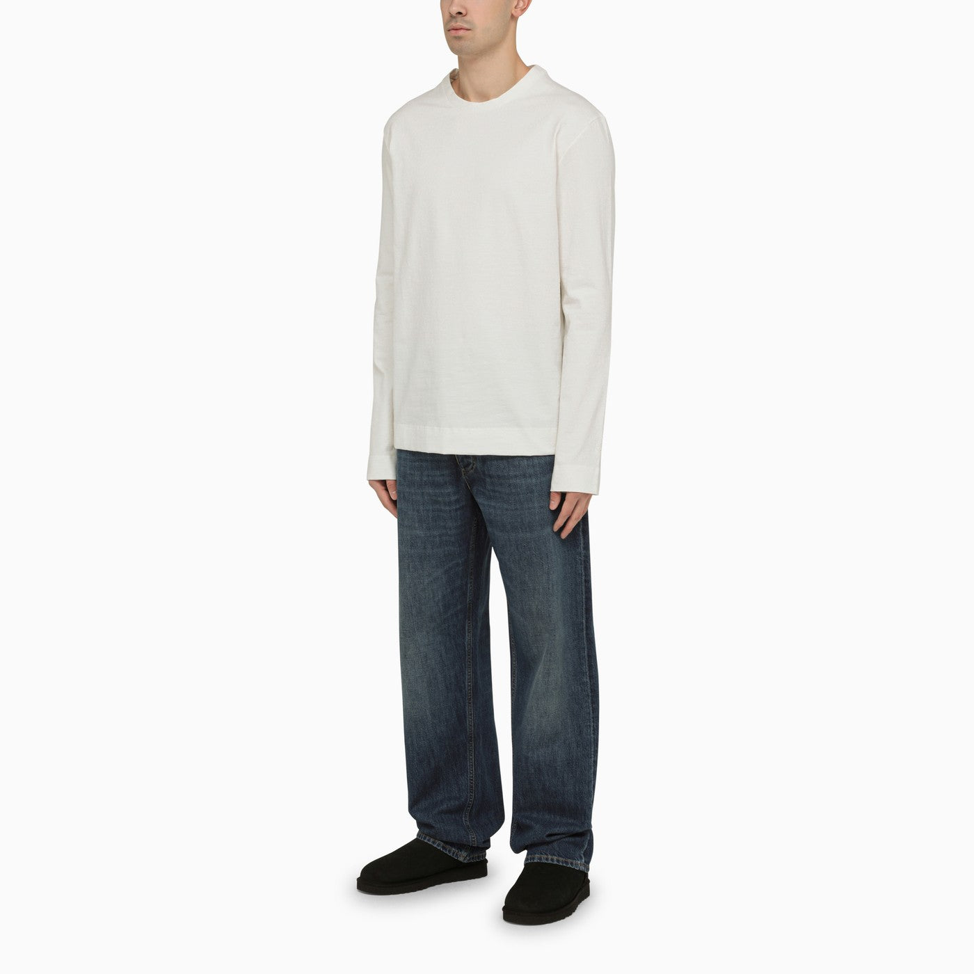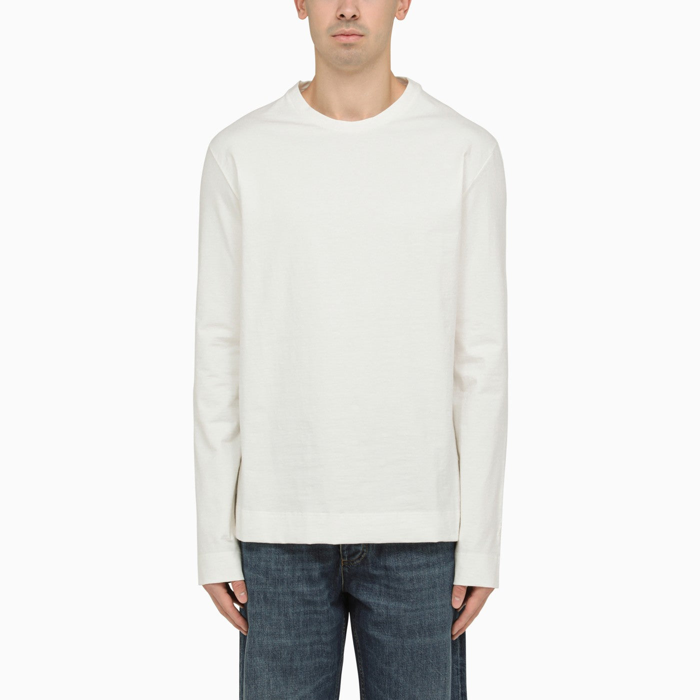 Magi di gira di cotone bianco di Jil Sander con maniche lunghe, fessure laterali e orlo dritto.