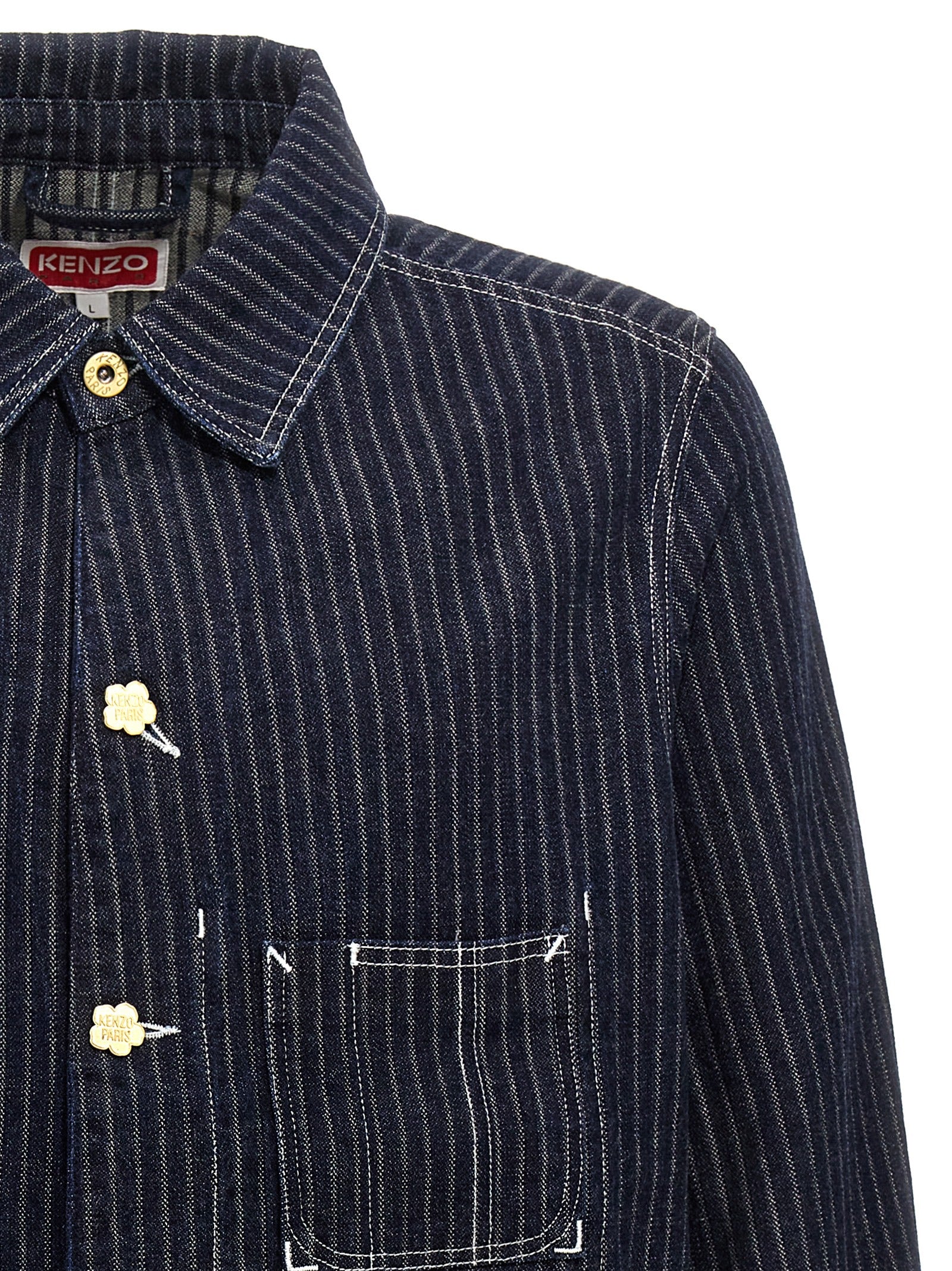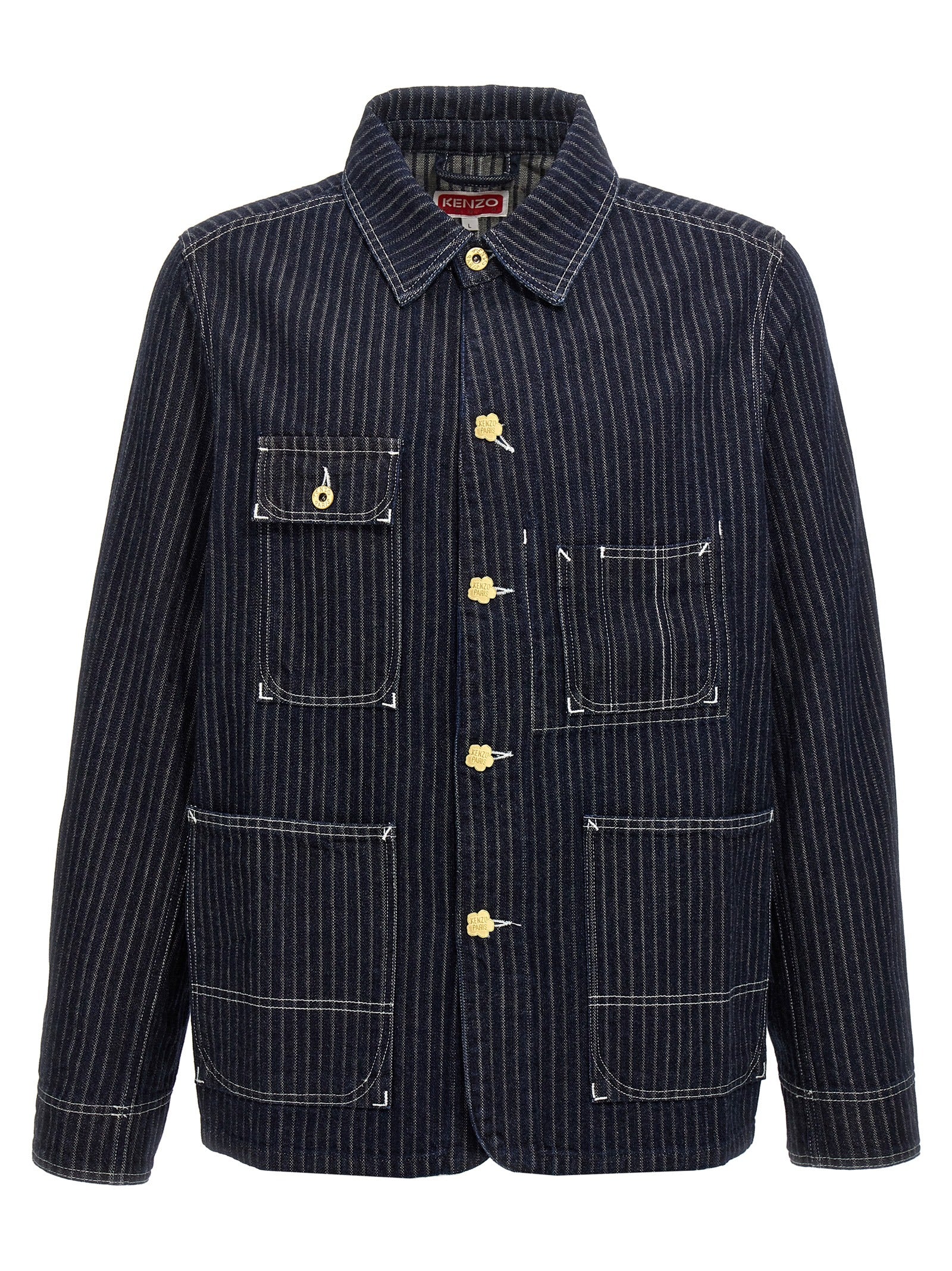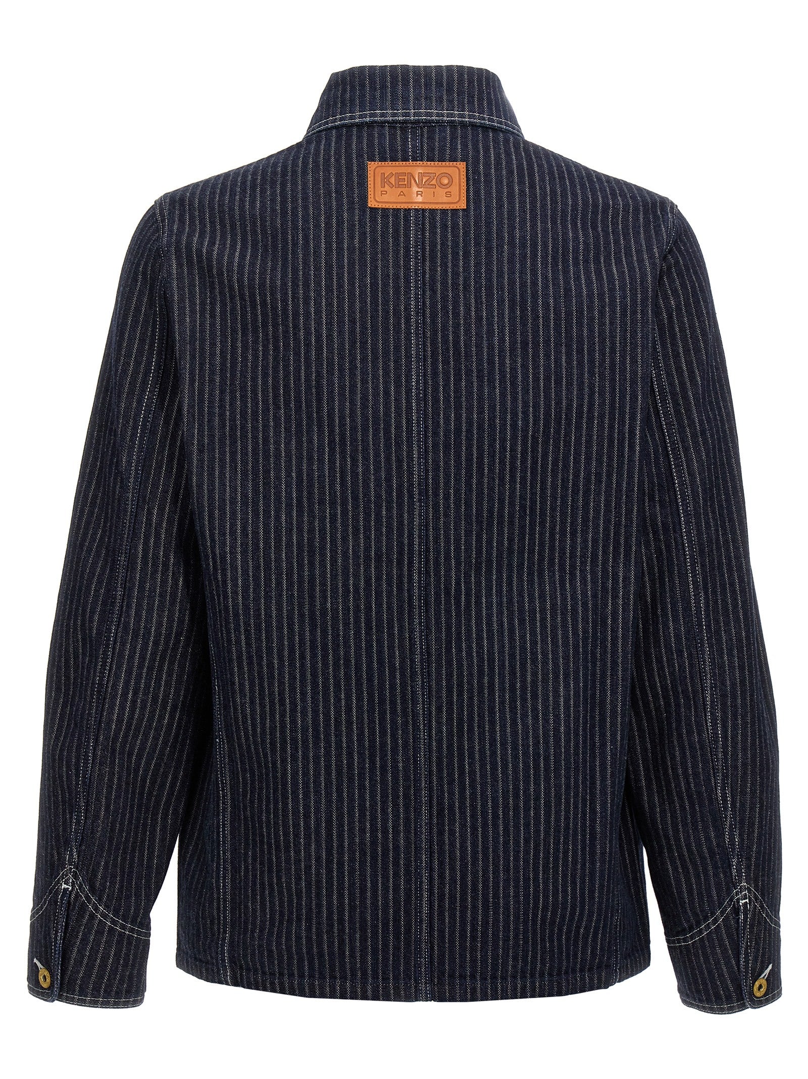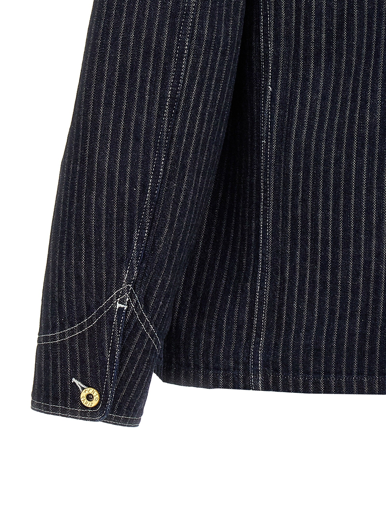 Giacca in denim in cotone a coste con chiusura del pulsante logo, tasche, maniche lunghe, patch logo in pelle sul retro.
