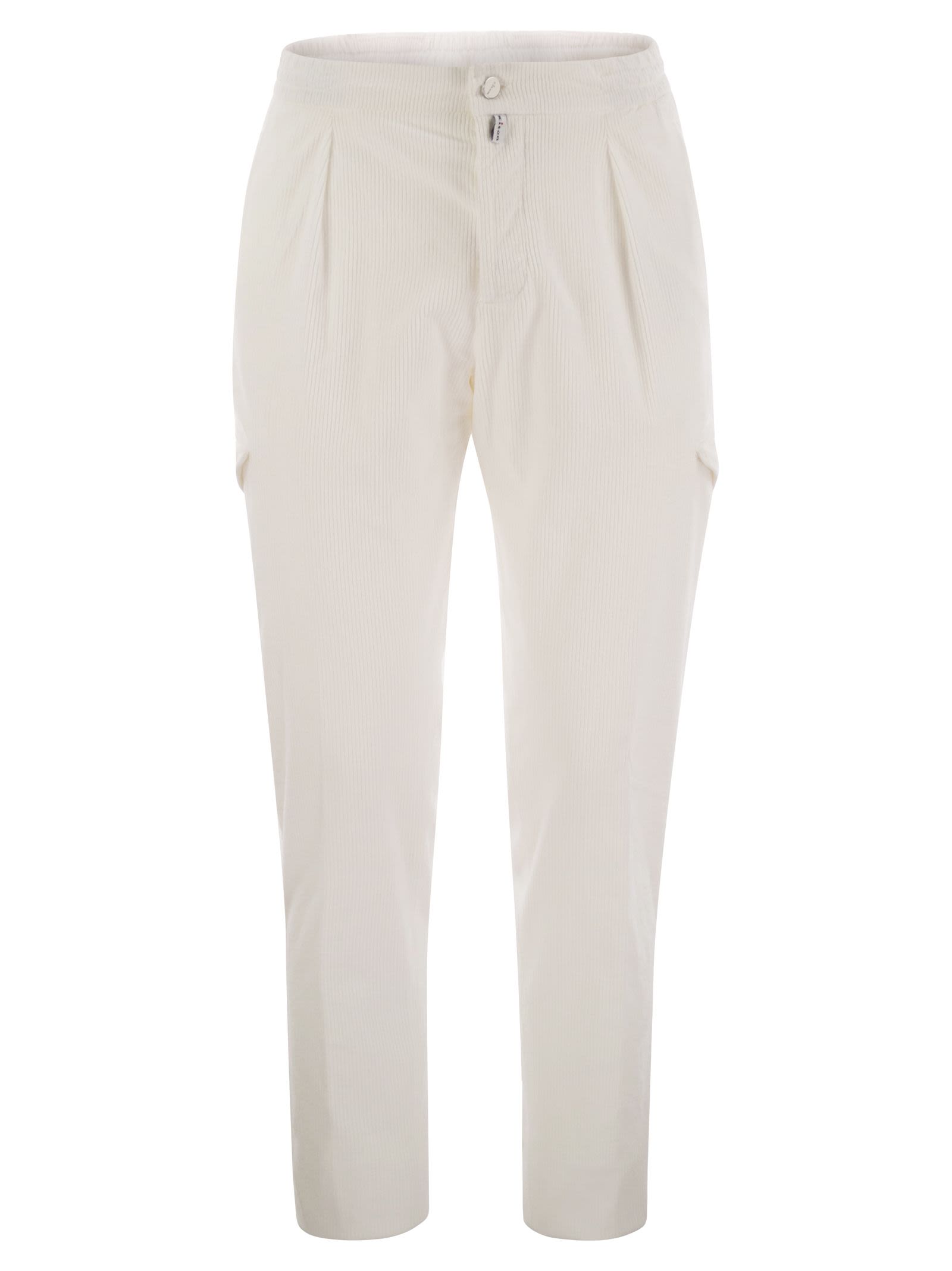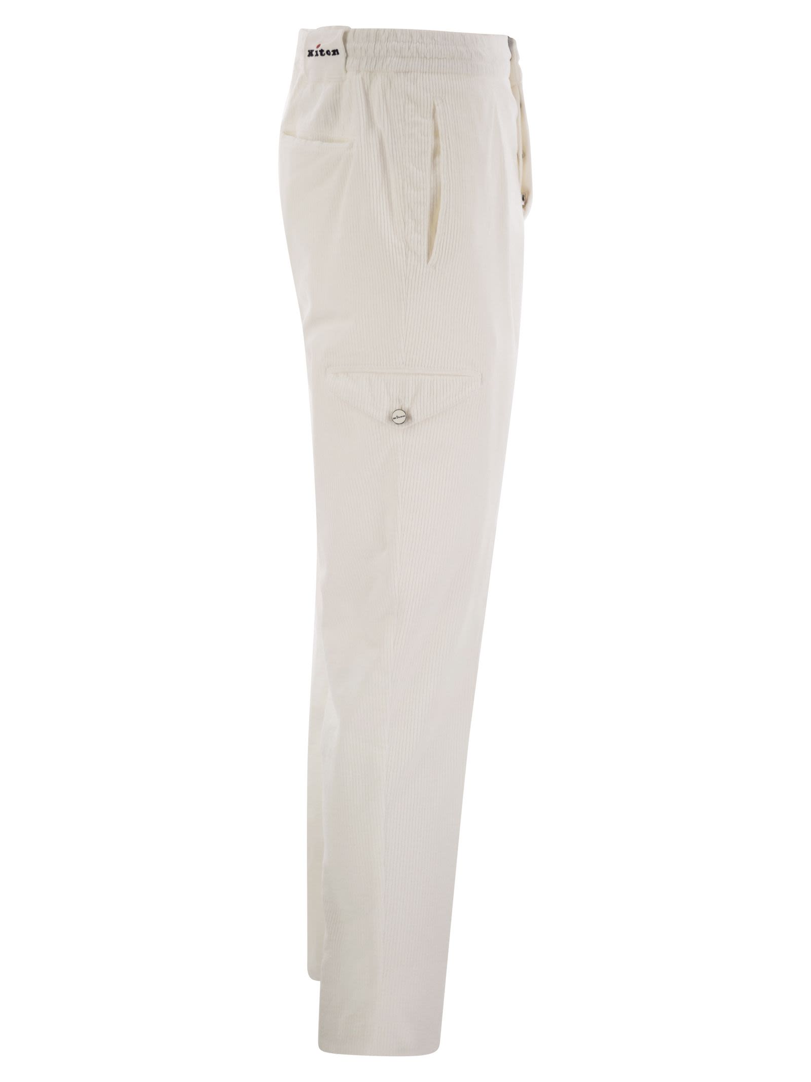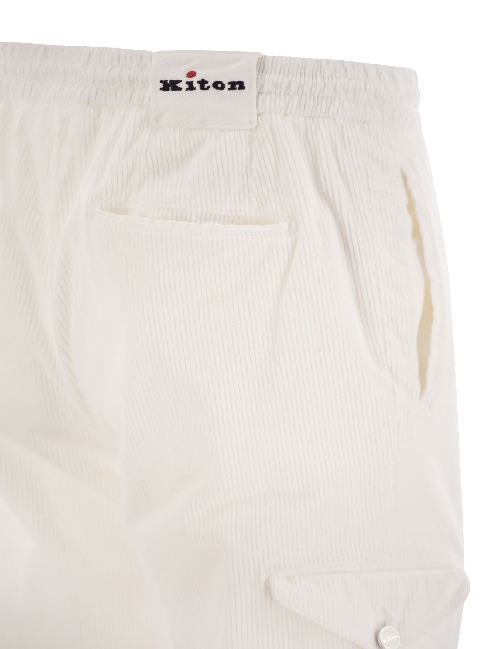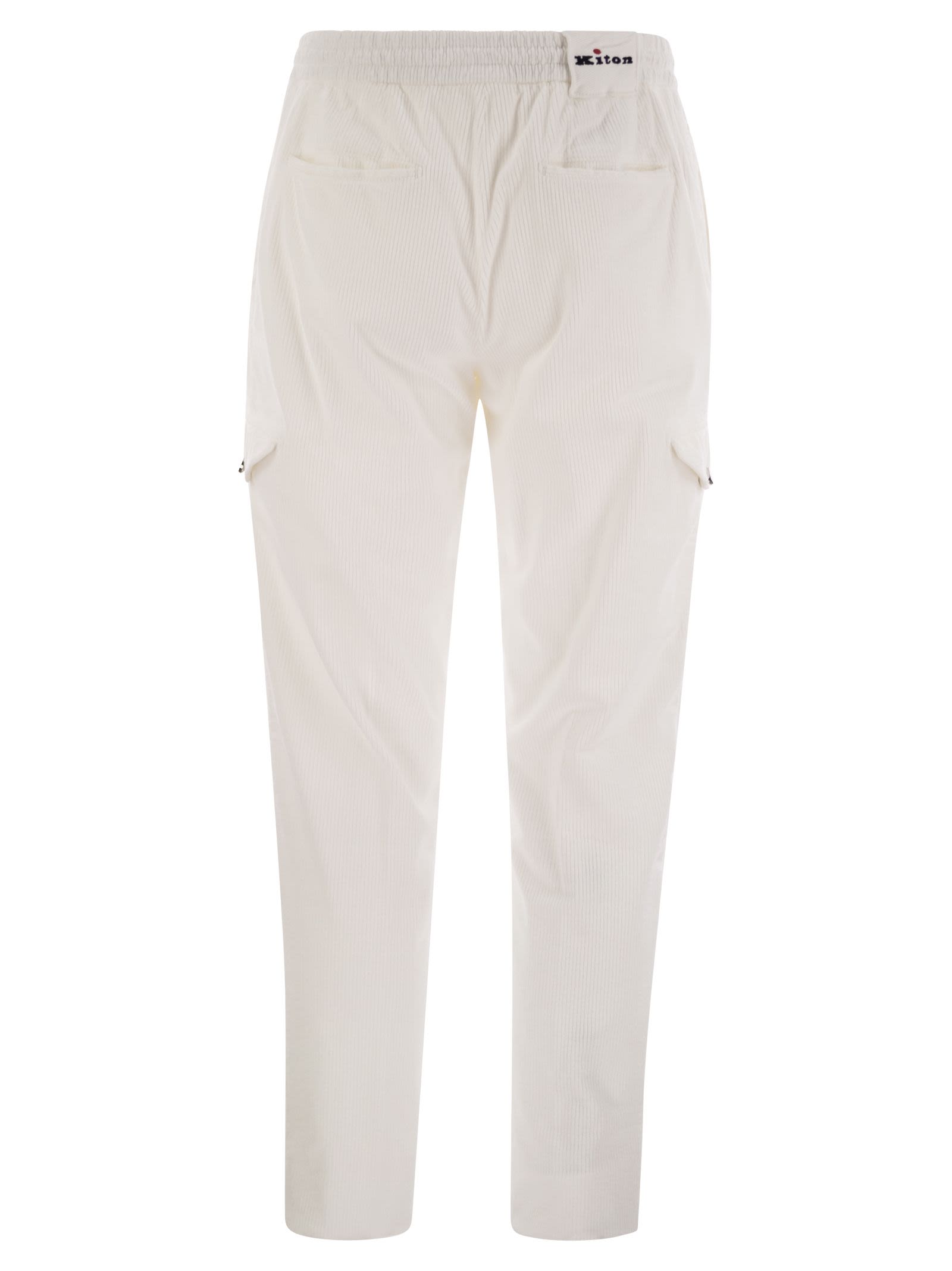 Pantaloni realizzati in velluto di cotone caldo e cashmere. Il pantalone Kiton, un'icona di stile casual, viene reinterpretato in una chiave di décontratto con volumi che sono rilassati sul bacino, largo sulla gamba e più stretti in fondo per offrire un'esperienza autentica di comfort. Le tasche sulle gambe con uno spirito sportivo incontrano le freccette ispirate alla sartoria per esprimere la vocazione casuale ed elegante del capo. - Darts - tasche cargo - ID progettista di velluto: UP1lactk0107f10 000