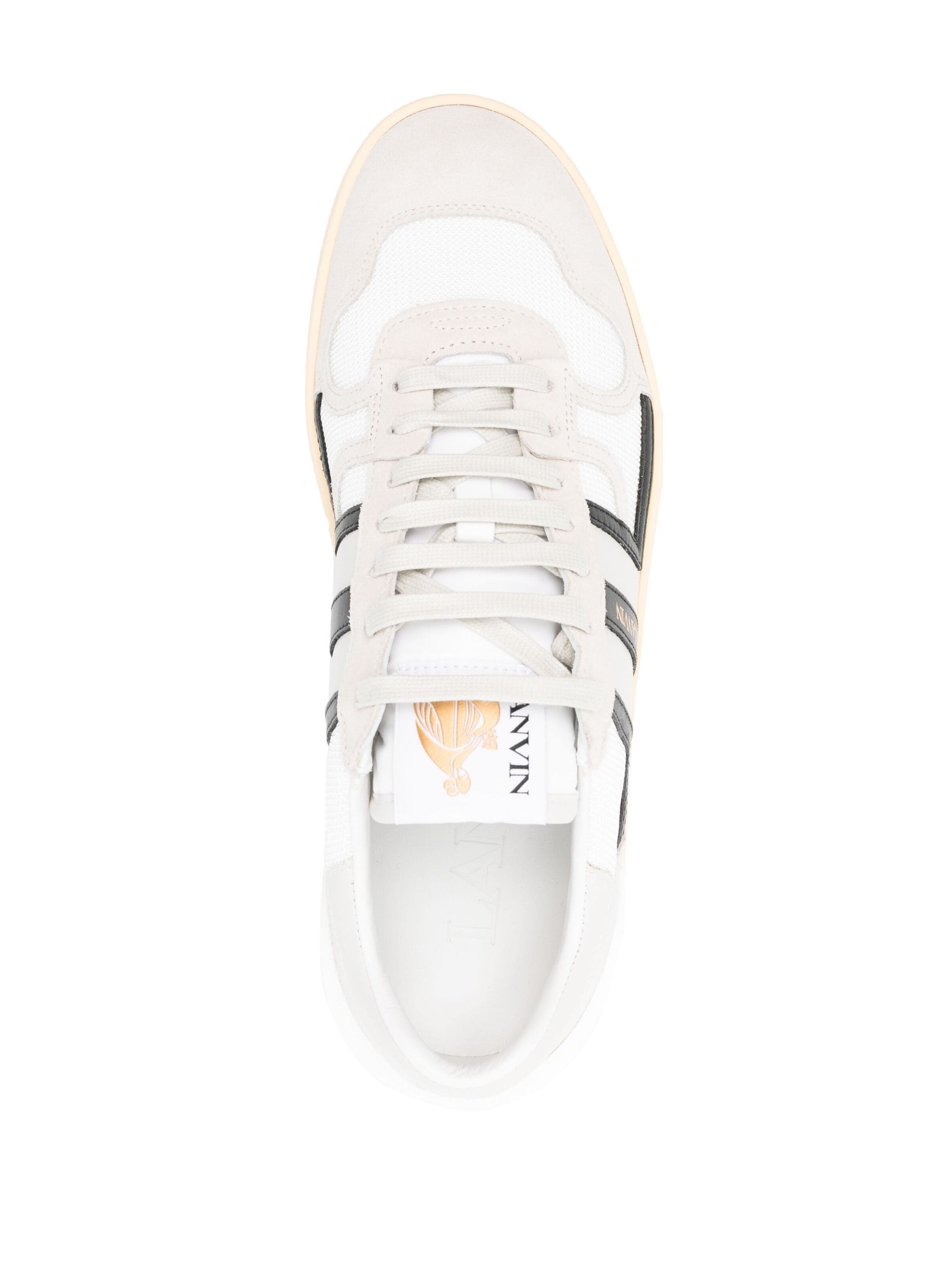 Allenatori di lacci in pelle di Lanvin con fissaggio a pizzo anteriore, suola in gomma piatta e tag labbinnaio con logo.