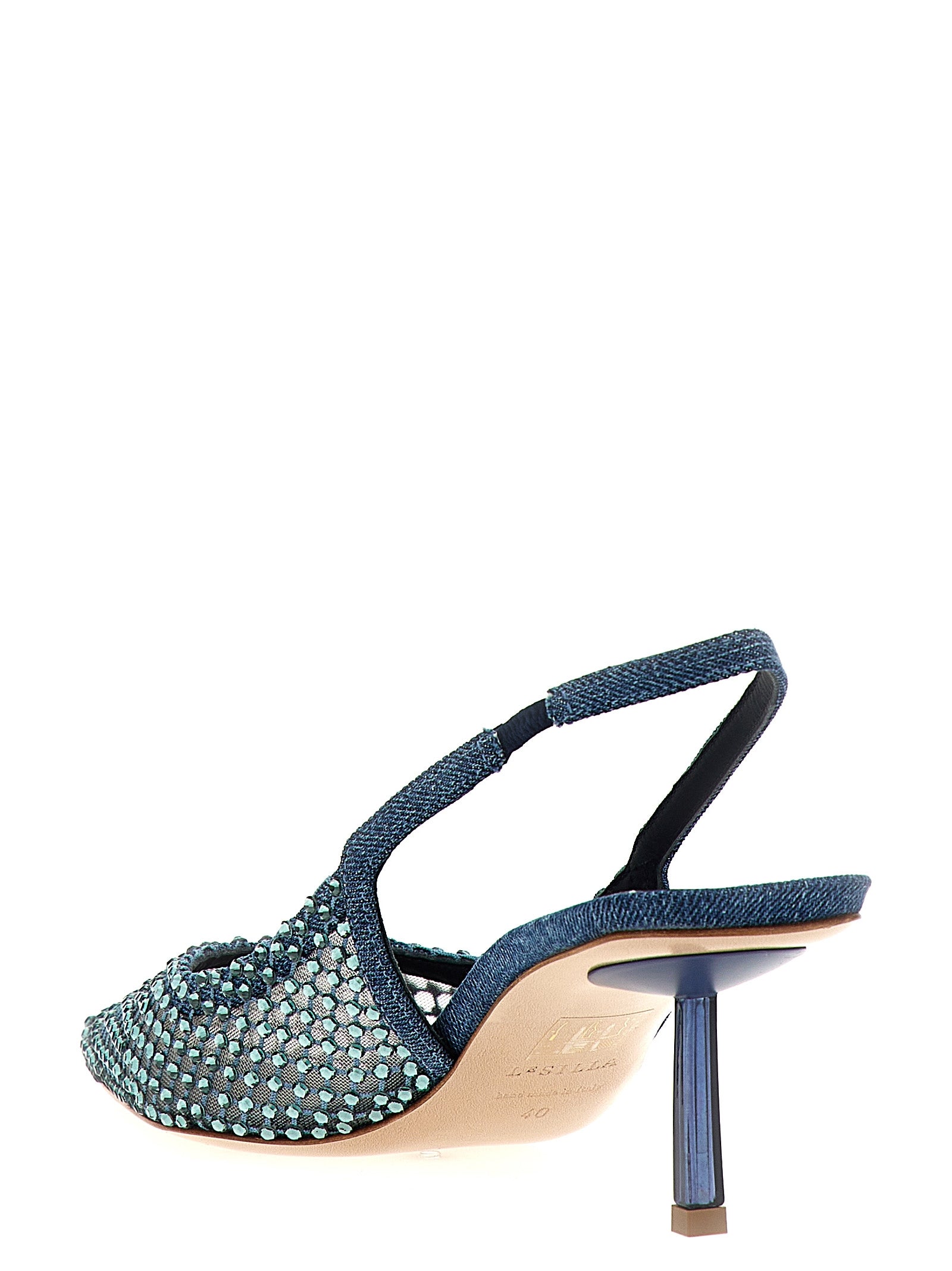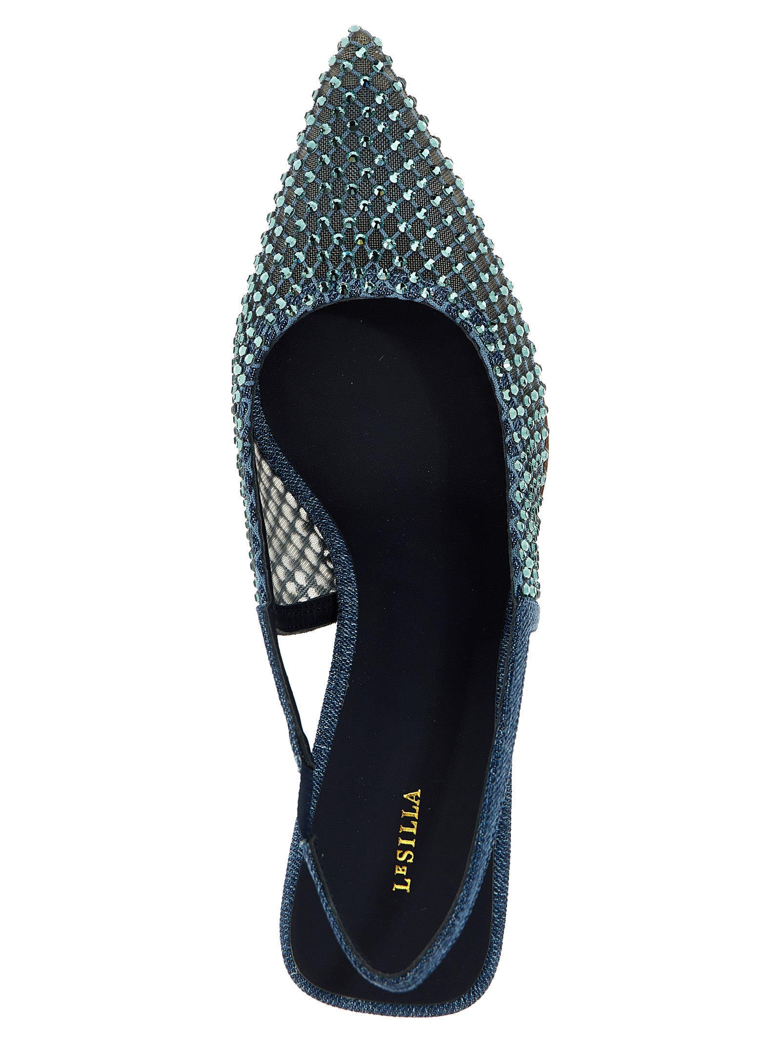 Chanel Gilda "pompa in tessuto in denim e maglia con cristalli, tallone.