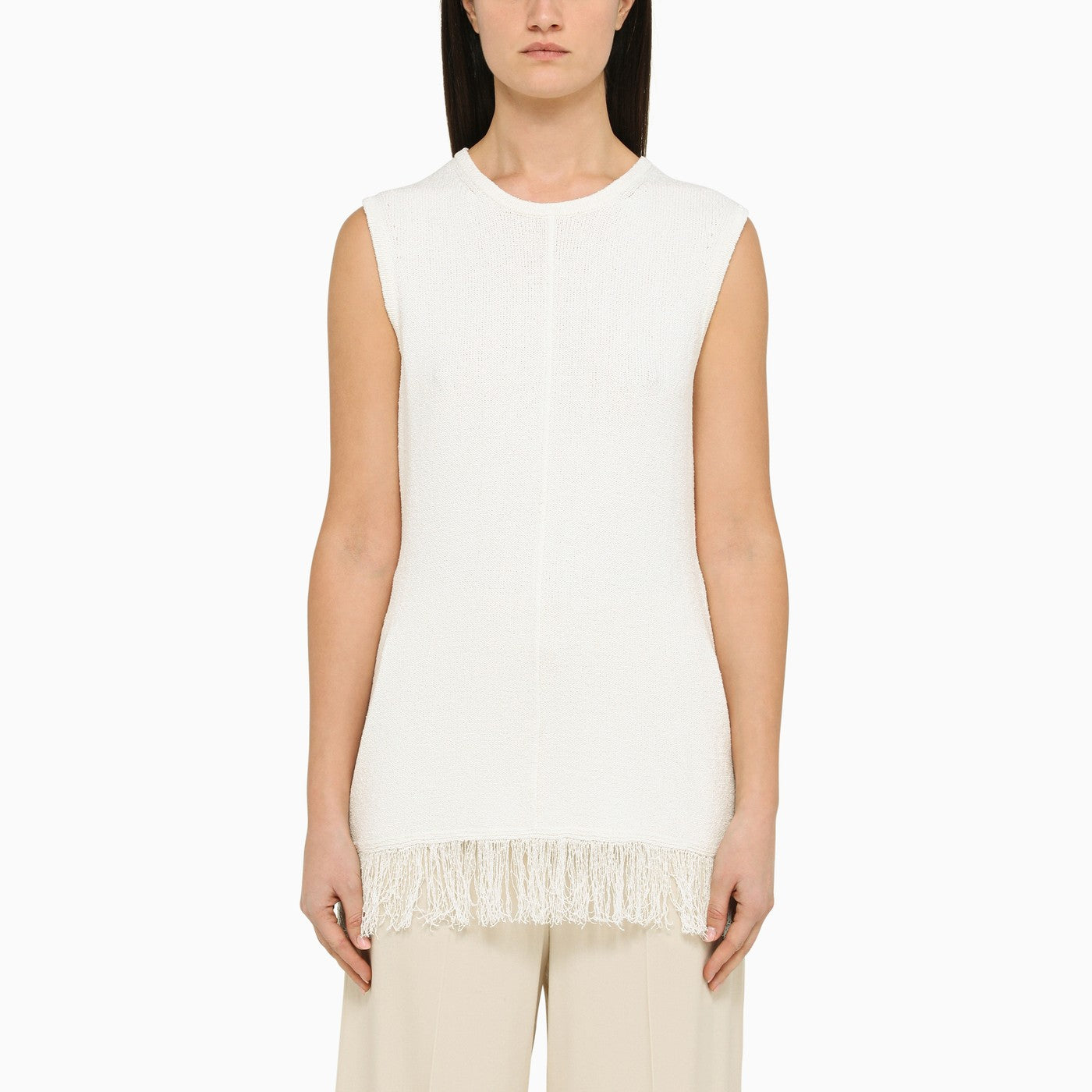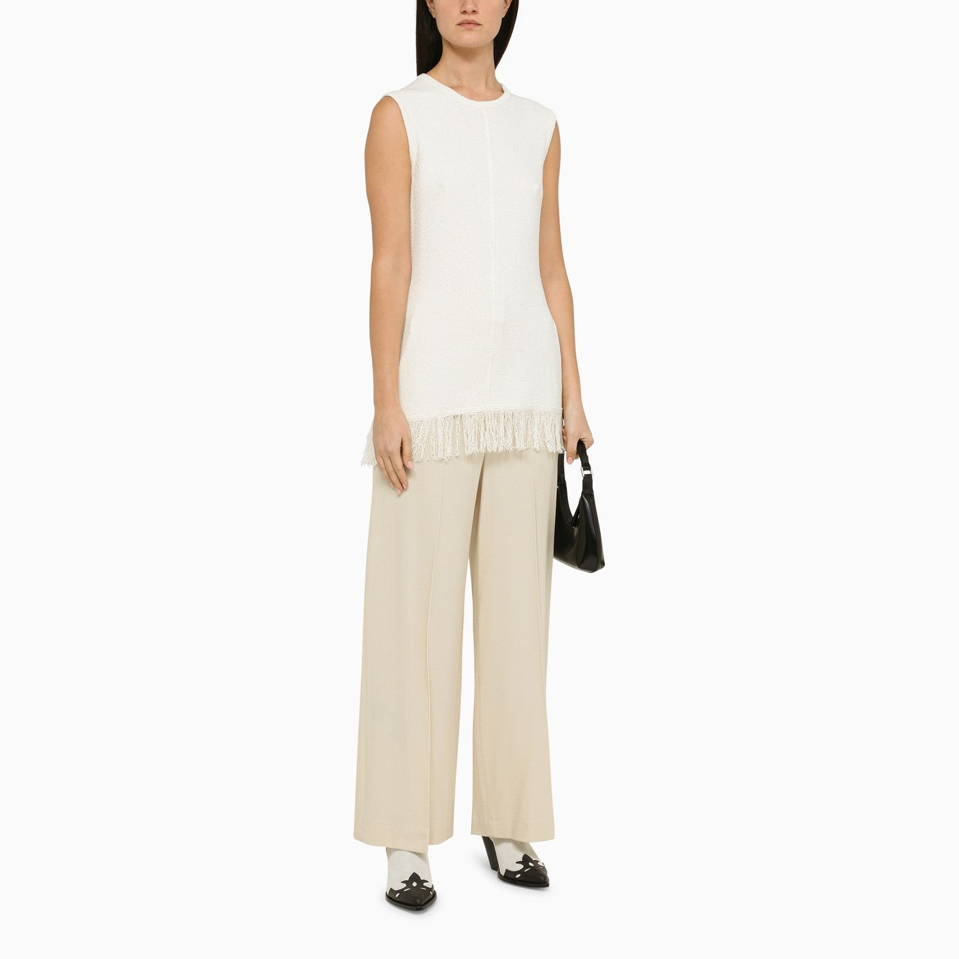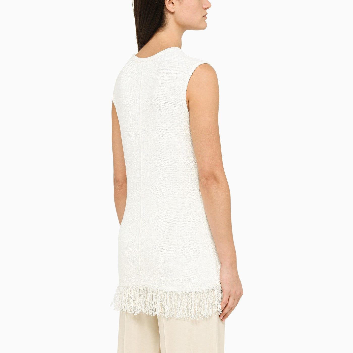 Sin colloco con l'equipaggio a maglia a Ivorio di Loulou Studio, con bordo inferiore con frange decorativo.