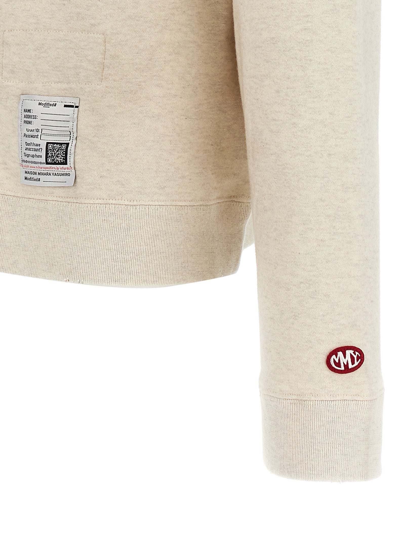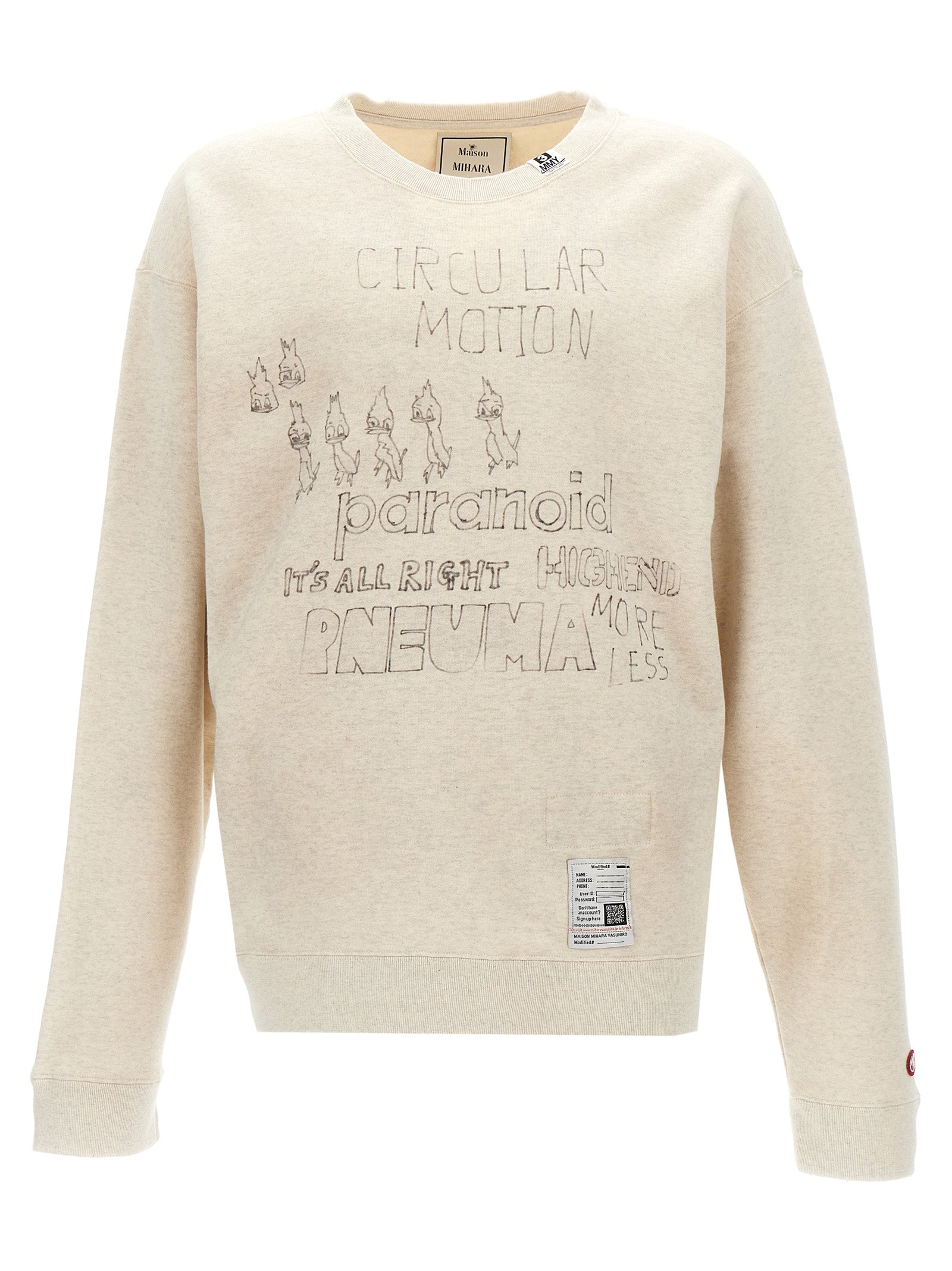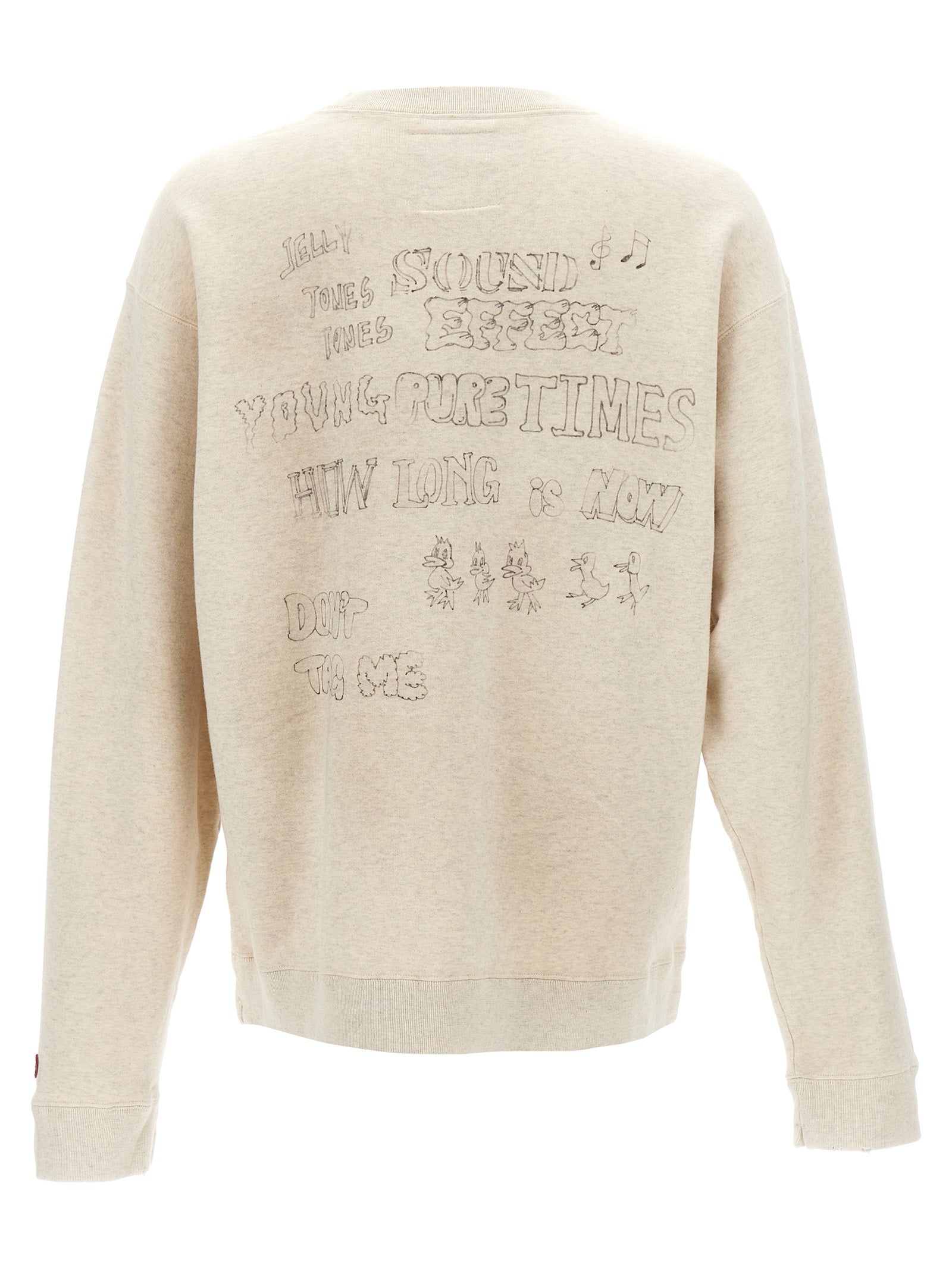 Felpa di cotone con stampa sulla parte anteriore e posteriore, dettagli angosciati, collo dell'equipaggio, maniche confuse lunghe.