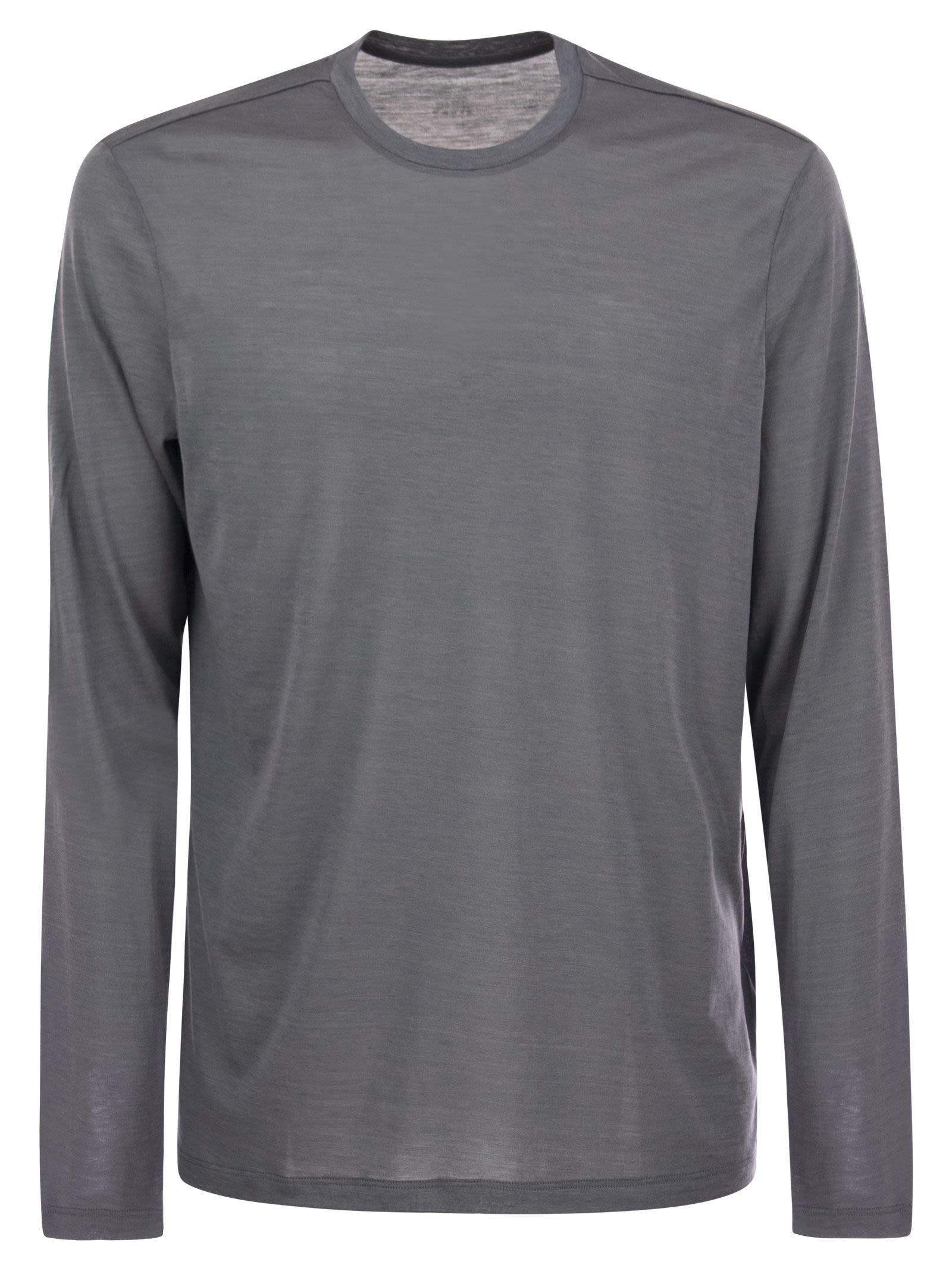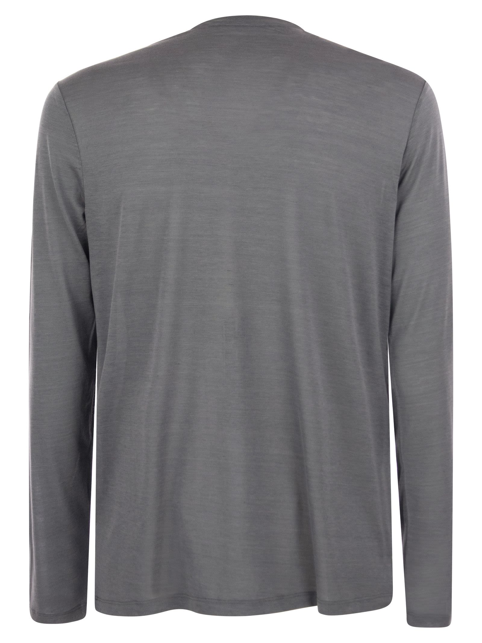T-shirt a maniche lunghe, scoretta da equipaggio: un capo passeparto, semplice ed elegante. La composizione della seta e del cotone lo rende particolarmente lussuoso e morbido al tatto, perfetto per combinarsi con altri indumenti o indossato da solo per un aspetto essenziale. - T -shirt - Crew Neck - ID Designer Fit regolare: S23M299 HTS023 261