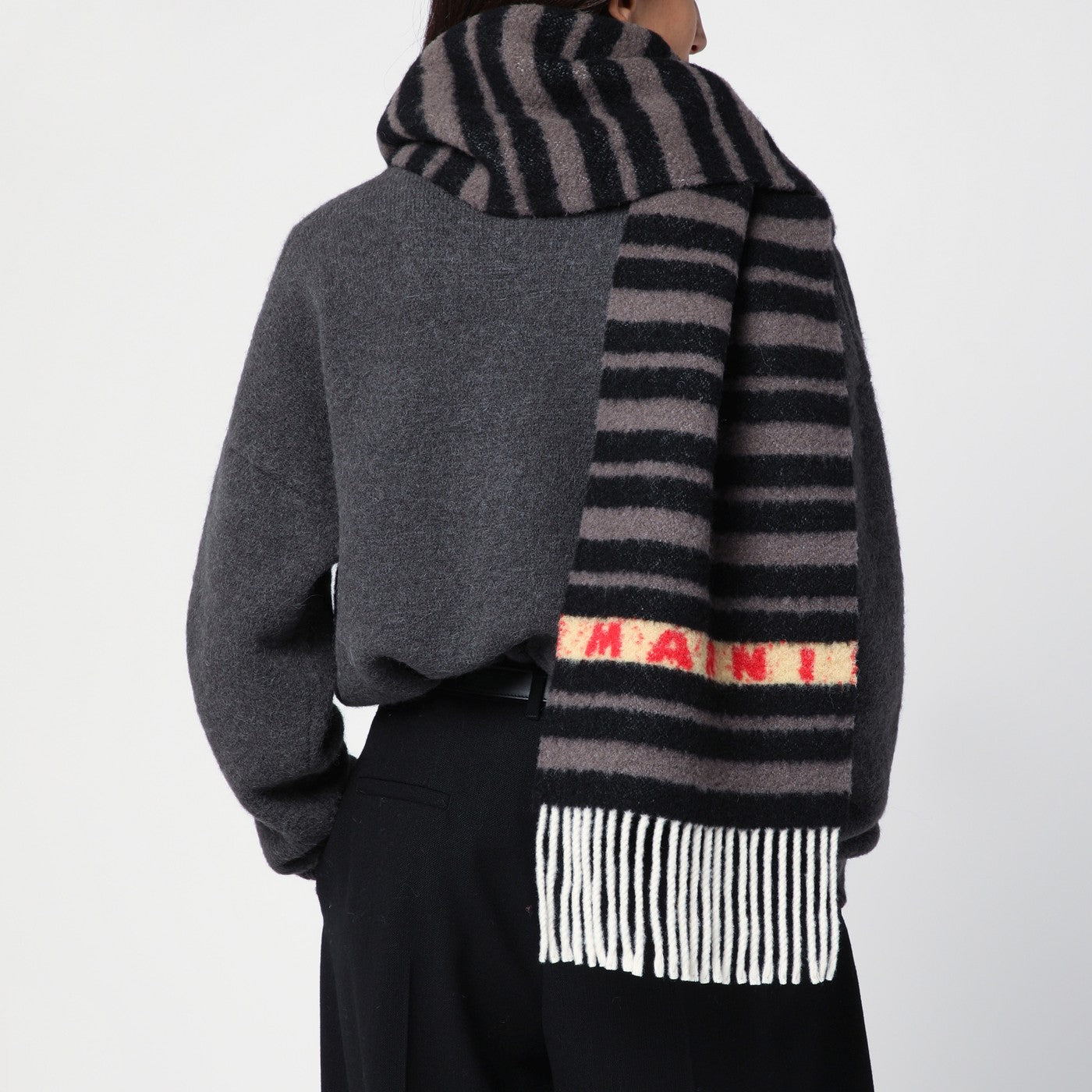 Sciarpa con miscela alpaca a strisce nera Marni con logo