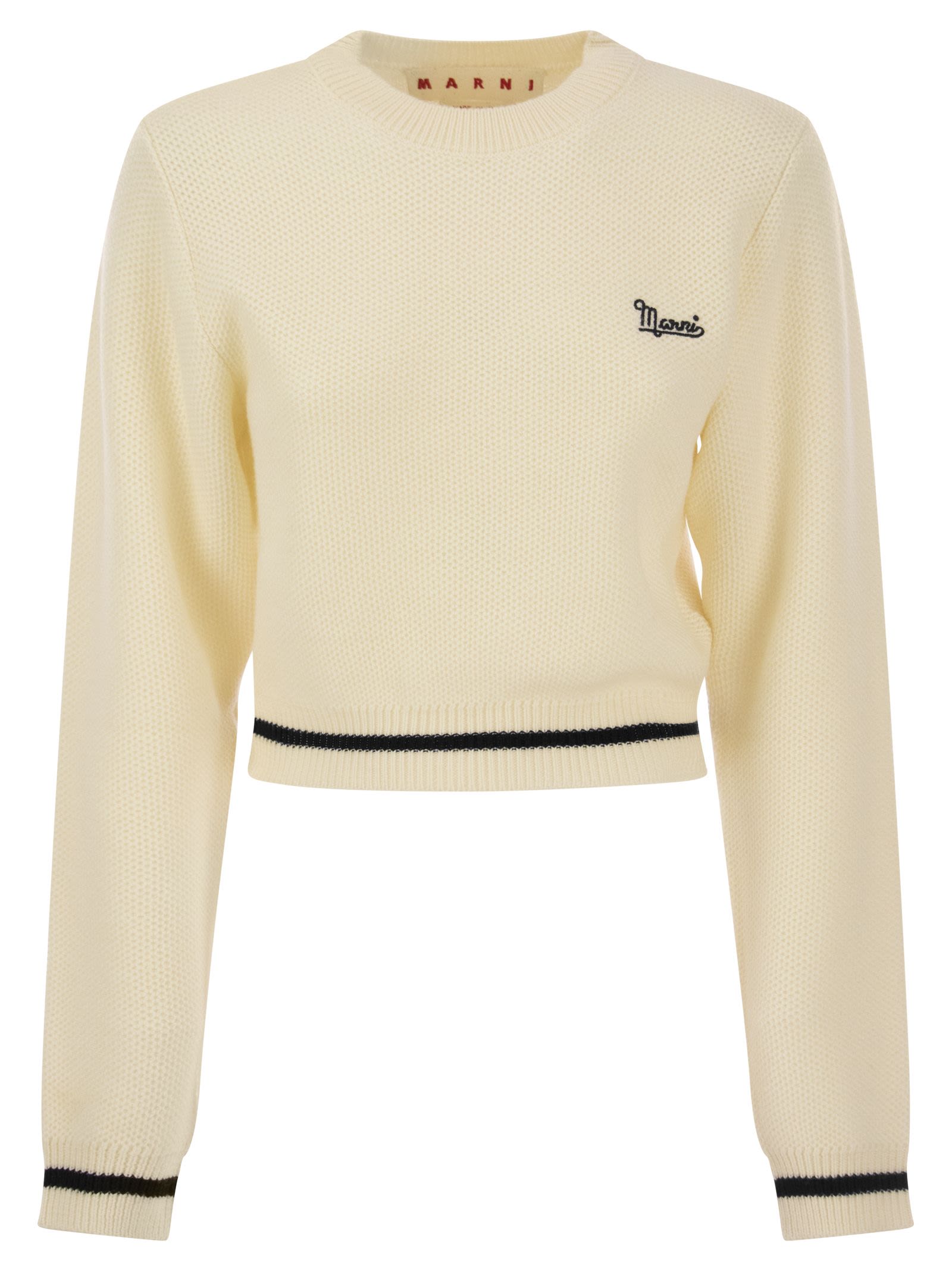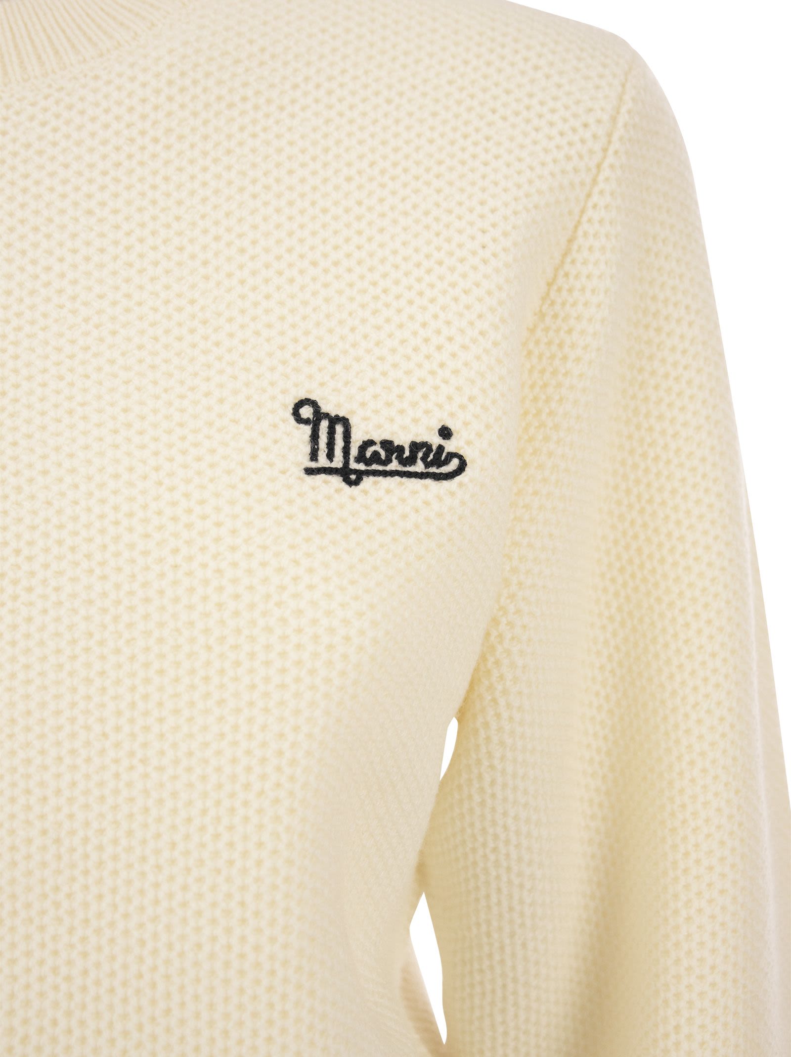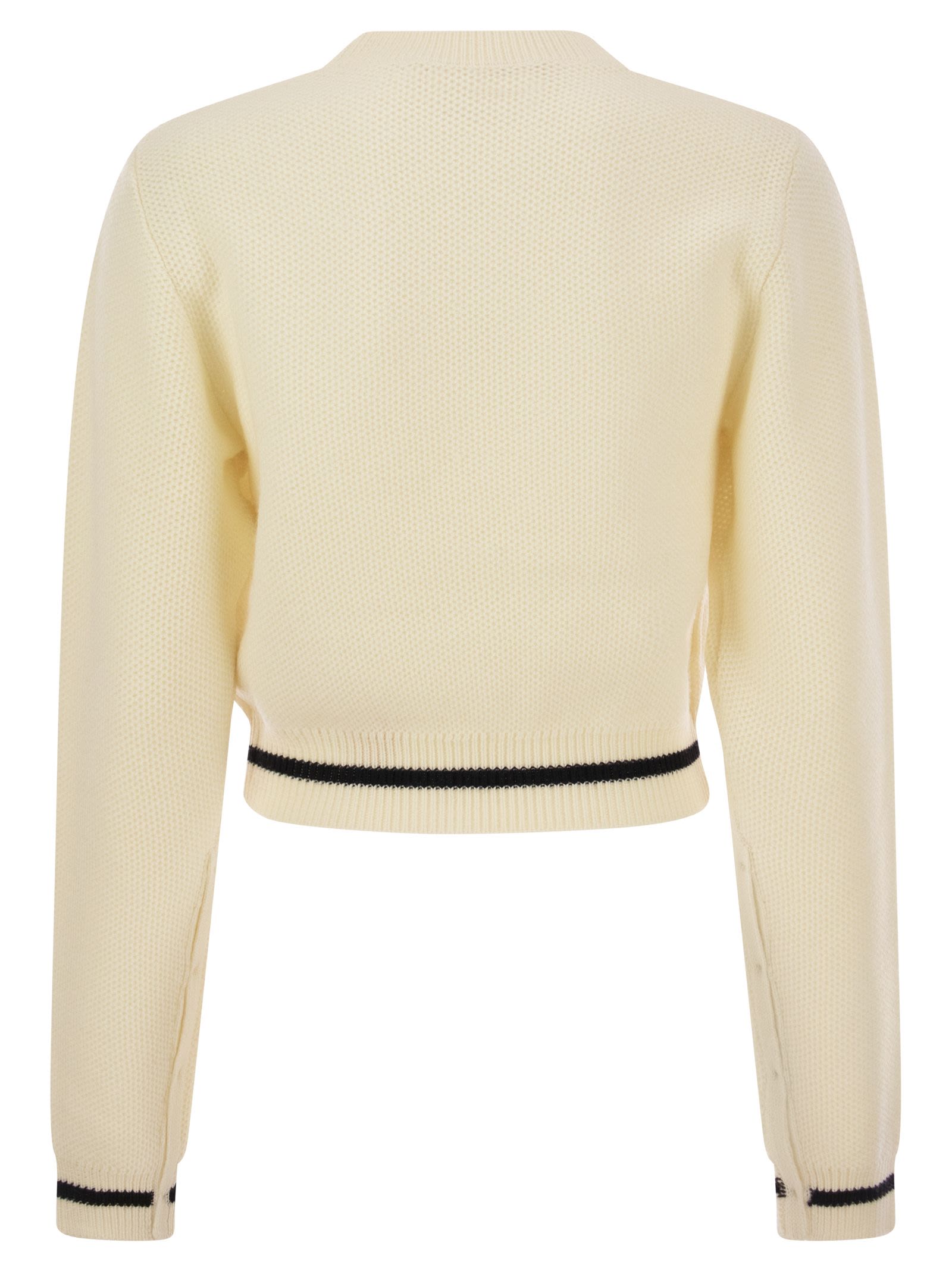Maglione in lana dal collo dell'equipaggio, caratterizzato da lunghe maniche a palloncino. Finito con un bordo a contratto sul bordo della manica e sull'orlo. Logo ricamato sul petto. - Fit regolare - logo ricamato sul fronte - Made in Italia Designer ID: GCMD0402Q1 UFWH11 00W03