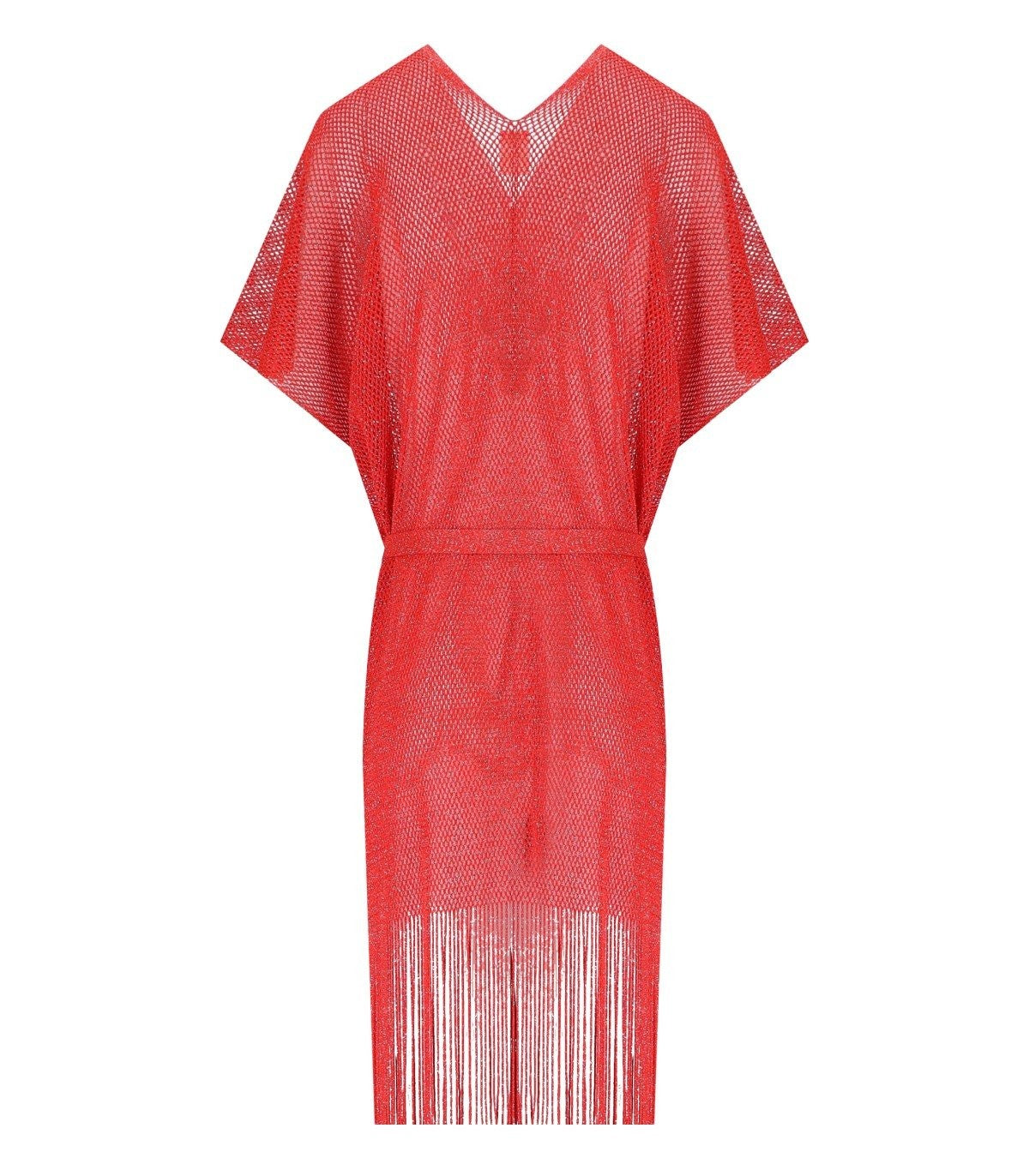Max Mara Iacopo Kimono realizzato in viscosa e Lurex in sfumature di rosso, abbellita con appliqué alla frangia sul fondo. Maniche di kimono, cintura in vita abbinata. Fit morbido. Composizione: 78% di viscosa, 11% di poliammide, fibra metallica 11%.