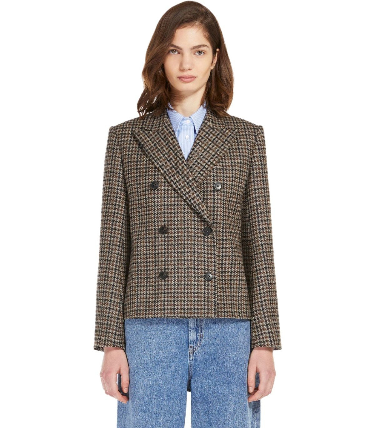 Nausica Cropped a doppio petto di giacca di Max Mara Weekend realizzata con un tessuto di miscela di lana con un effetto Shetland in sfumature di grigio marrone. Caratterizzato da un colletto a bass appuntito, presenta una chiusura frontale. Maniche lunghe con bottoni ai polsini, in vita e sul retro. Fit sciolto. Il modello indossa la taglia 40 (IT) ed è alto 178 cm. Composizione: tessuto 96% di lana vergine, 4% di poliammide; rivestimento del 50% acetato, 50% di viscosa; rivestimento per maniche al 65% acetato, 31% di poliammide, 4% di elastano.