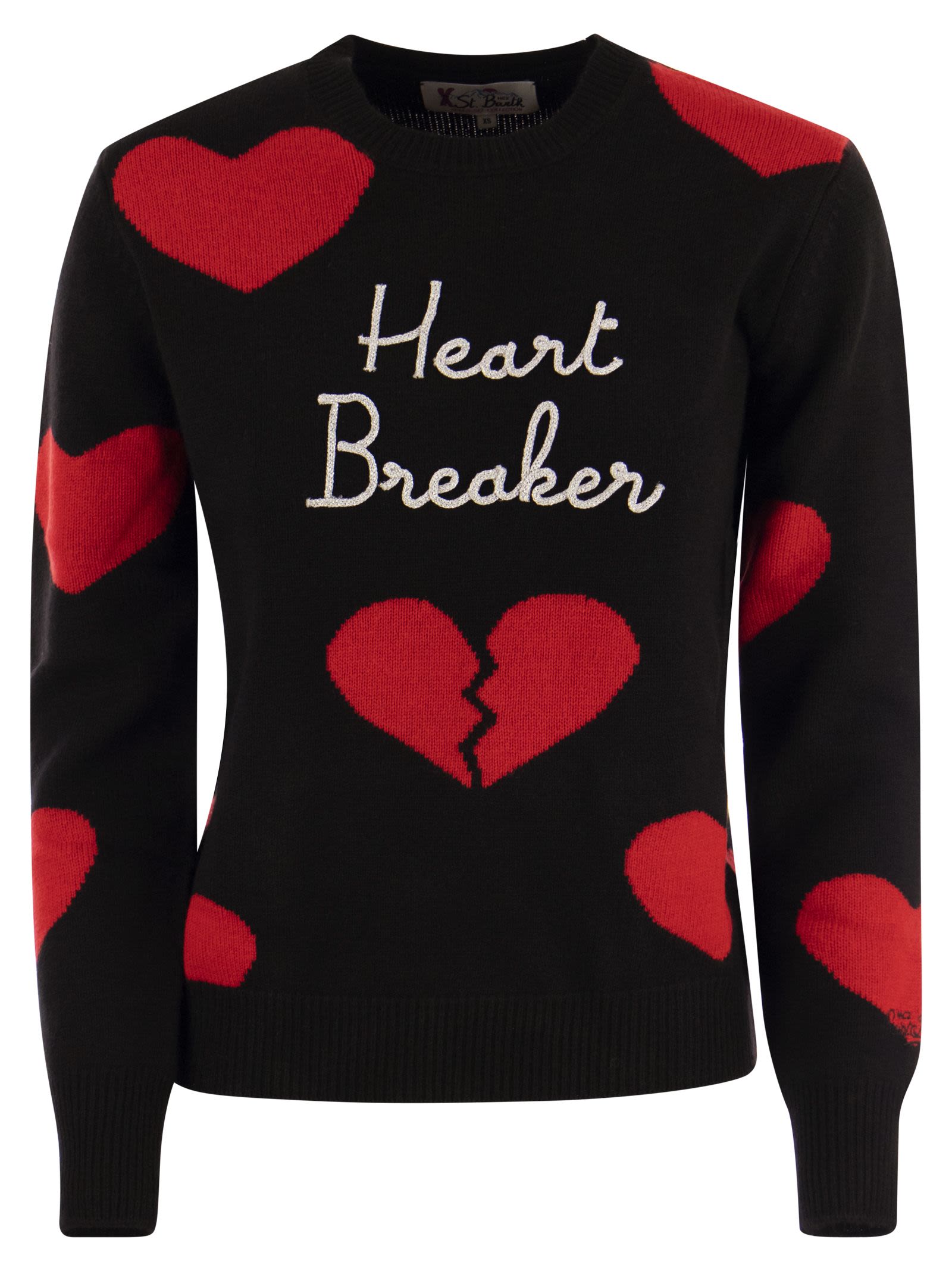 Jumper miscela di lana con ricami anteriori. Collo dell'equipaggio, maniche lunghe, fondo al collo a coste e polsini. - Crew Neck - Fit regolare - Hearts and "Heart Breaker" ID Designer di lettere: Que0014 10997E