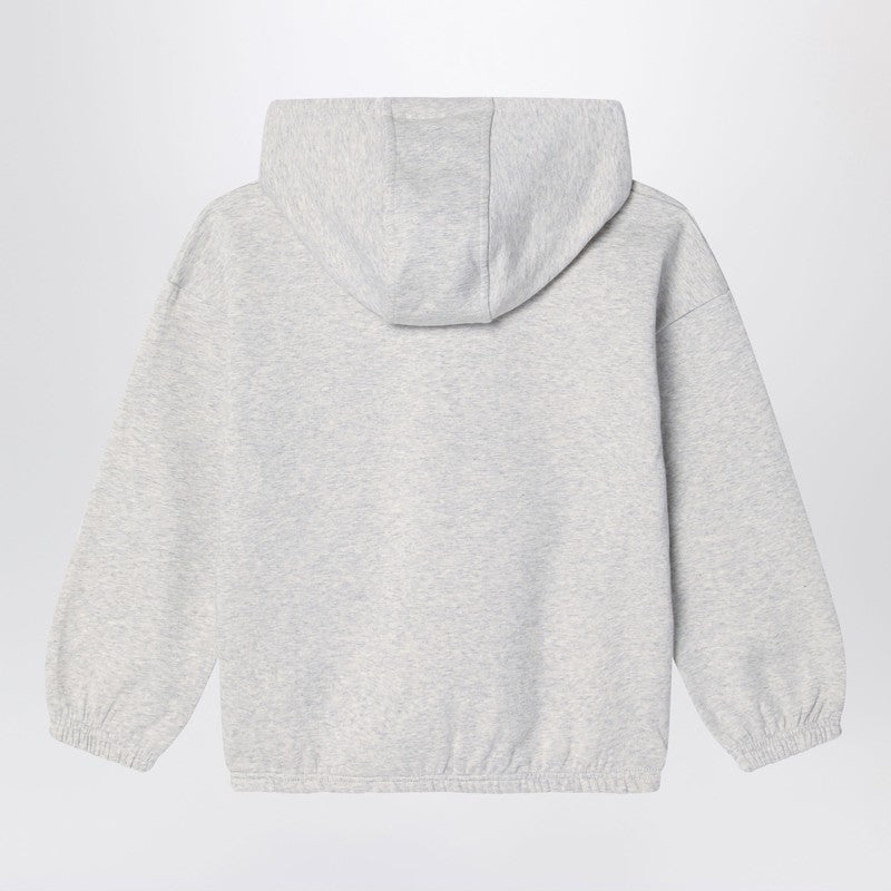 Hooded sweatshirt by Mini Rodini in grey organic cotton fleece, featuring long sleeves, front print and elasticated hems.