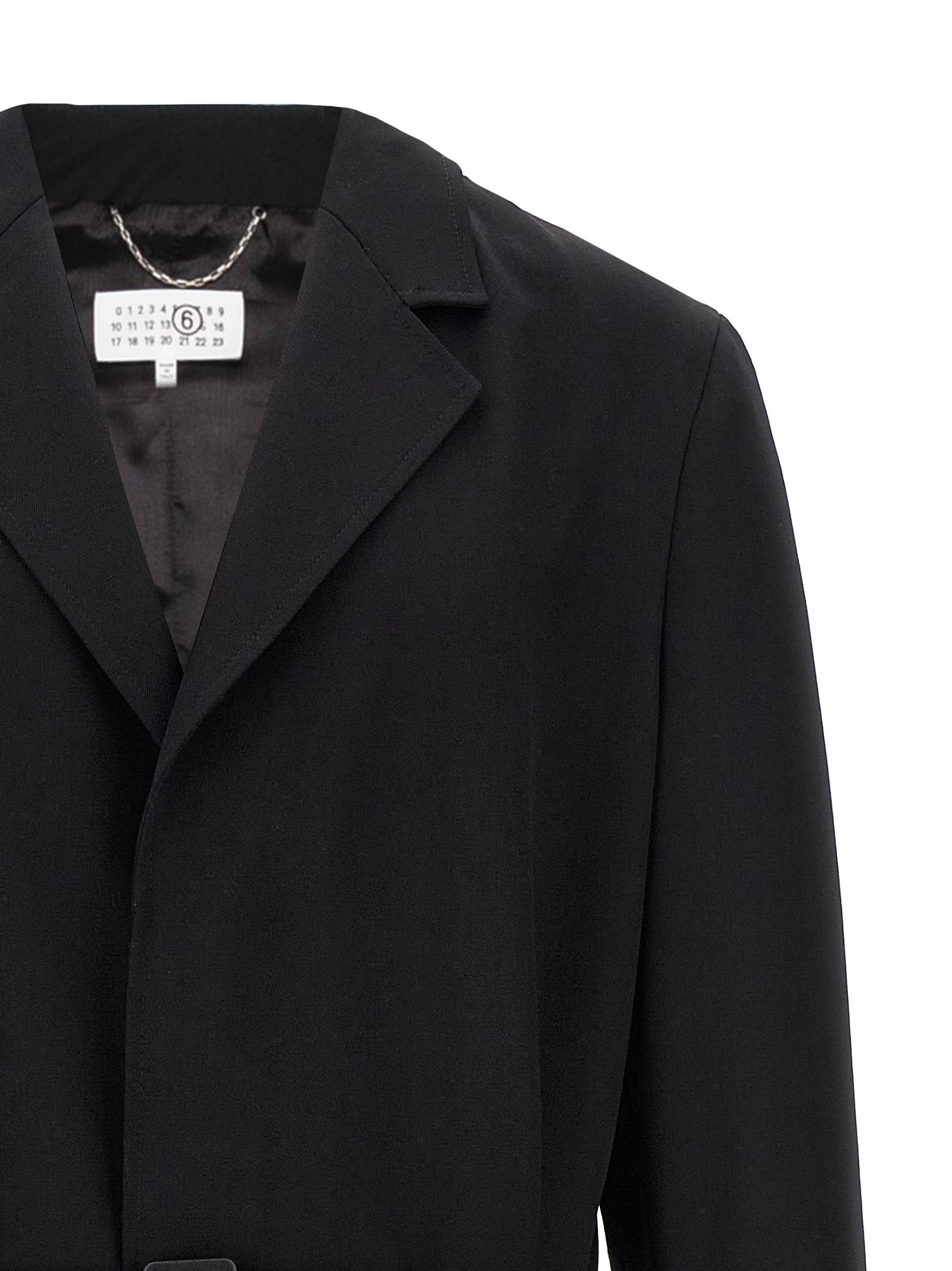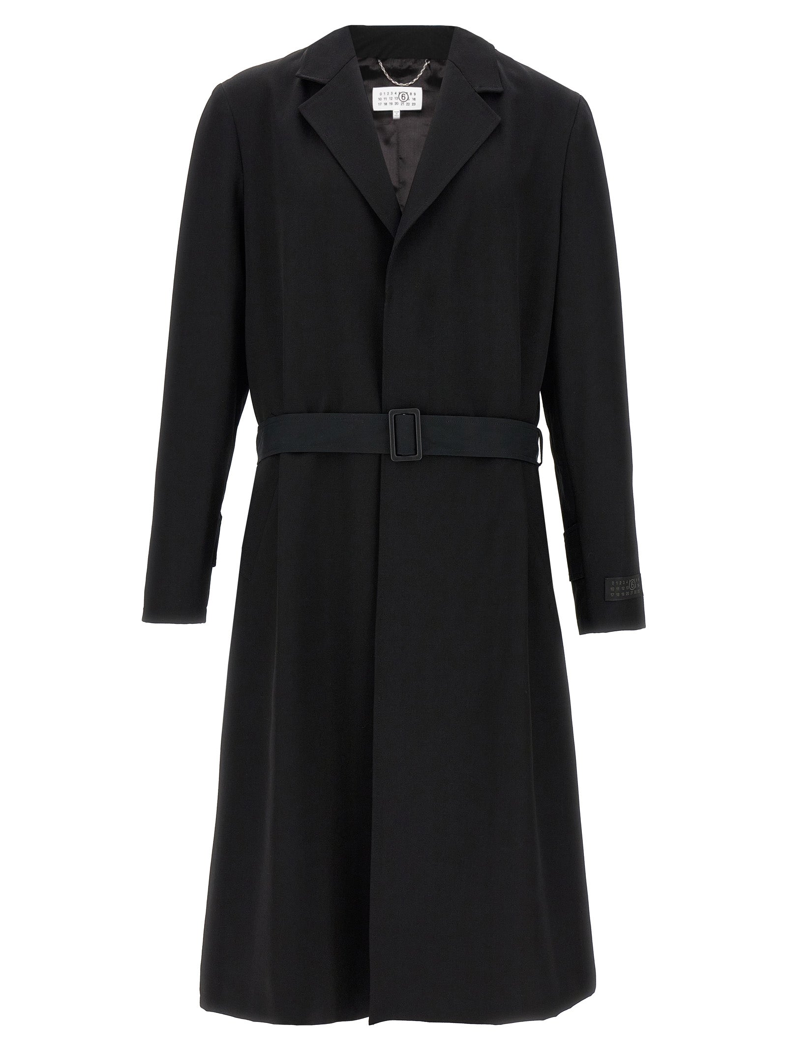 Trench di lana vergine con chiusura a bottoni, tasche, maniche lunghe con patch 'Numeric Firma MM6', cintura regolabile e rimovibile, "linea del punto bianco" sul retro, fessura posteriore con chiusura a bottone. Questo prodotto è realizzato con tecniche artigianali, possibili variazioni tra un elemento e un altro devono essere considerate caratteristiche del prodotto.
