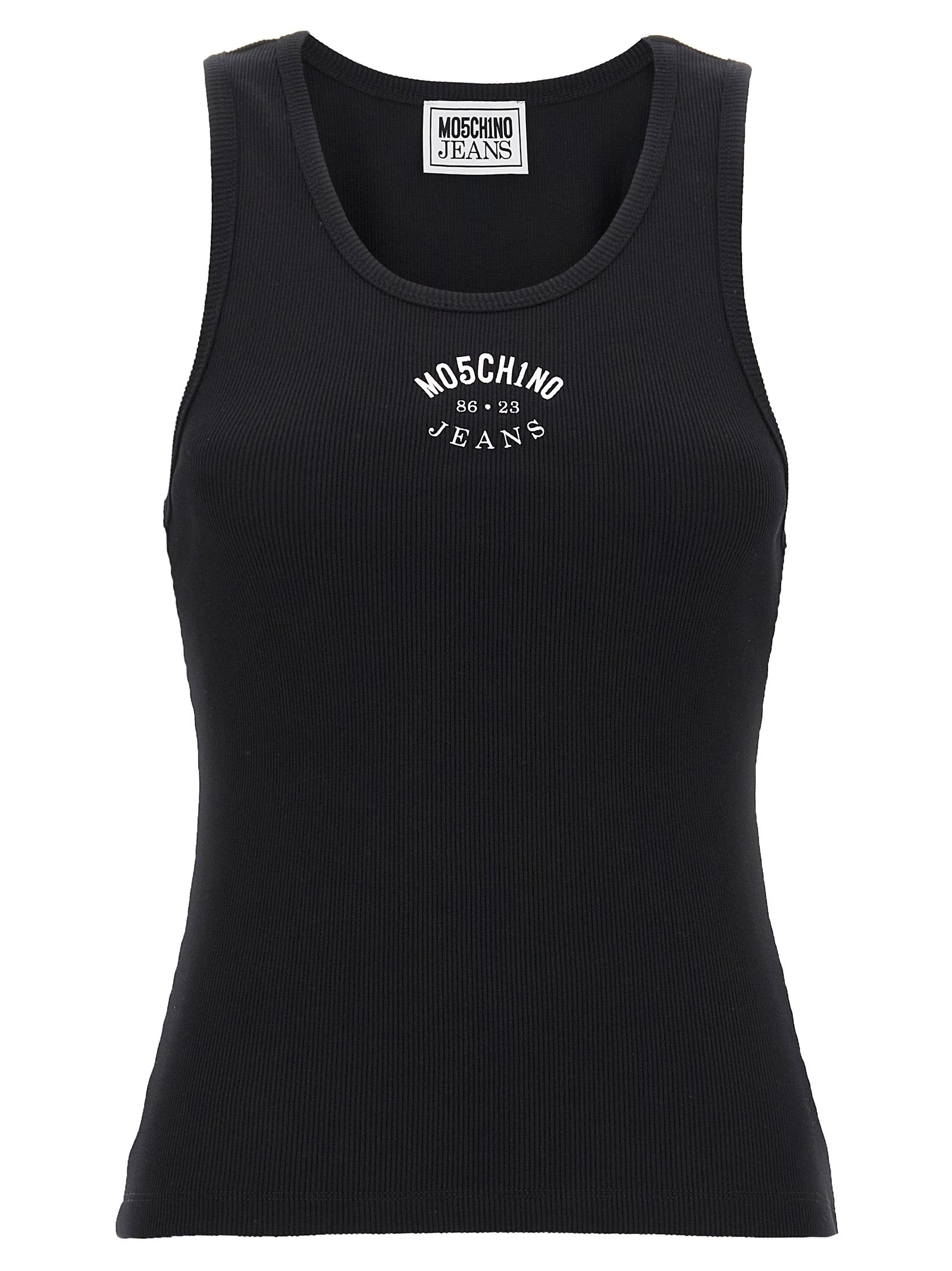 Stretch a costine di cotone con scollo rotondo, stampa anteriore, manica.