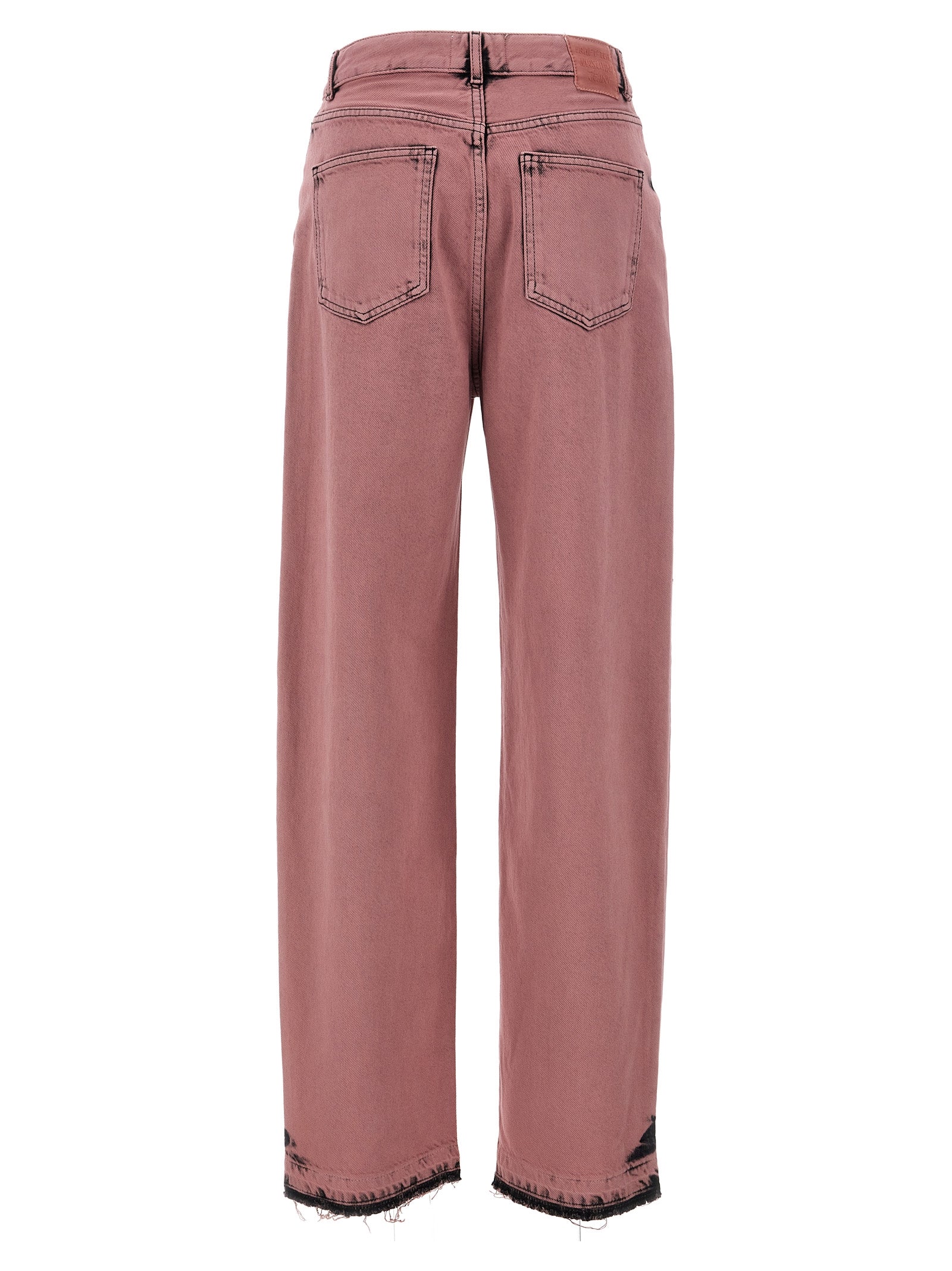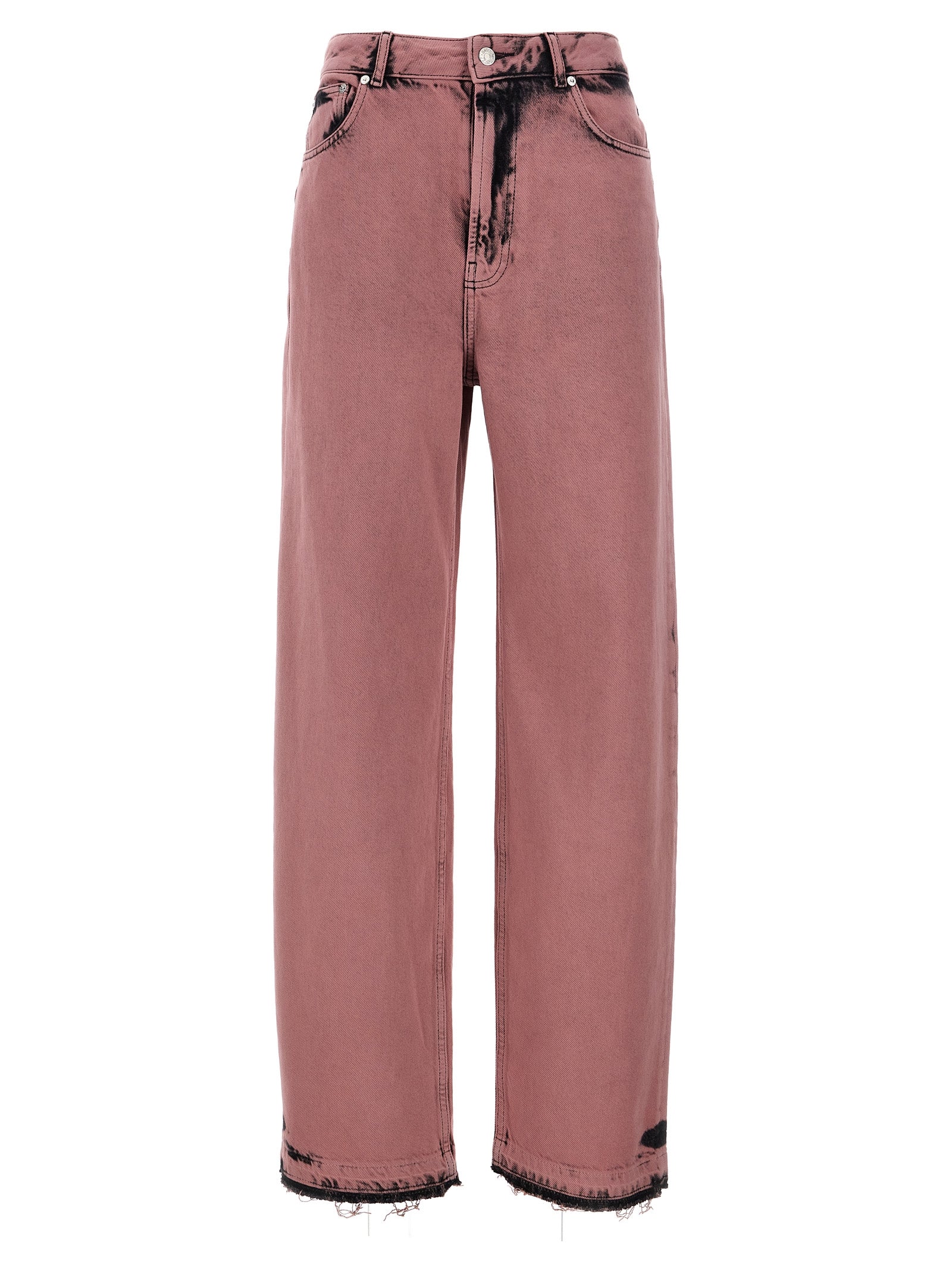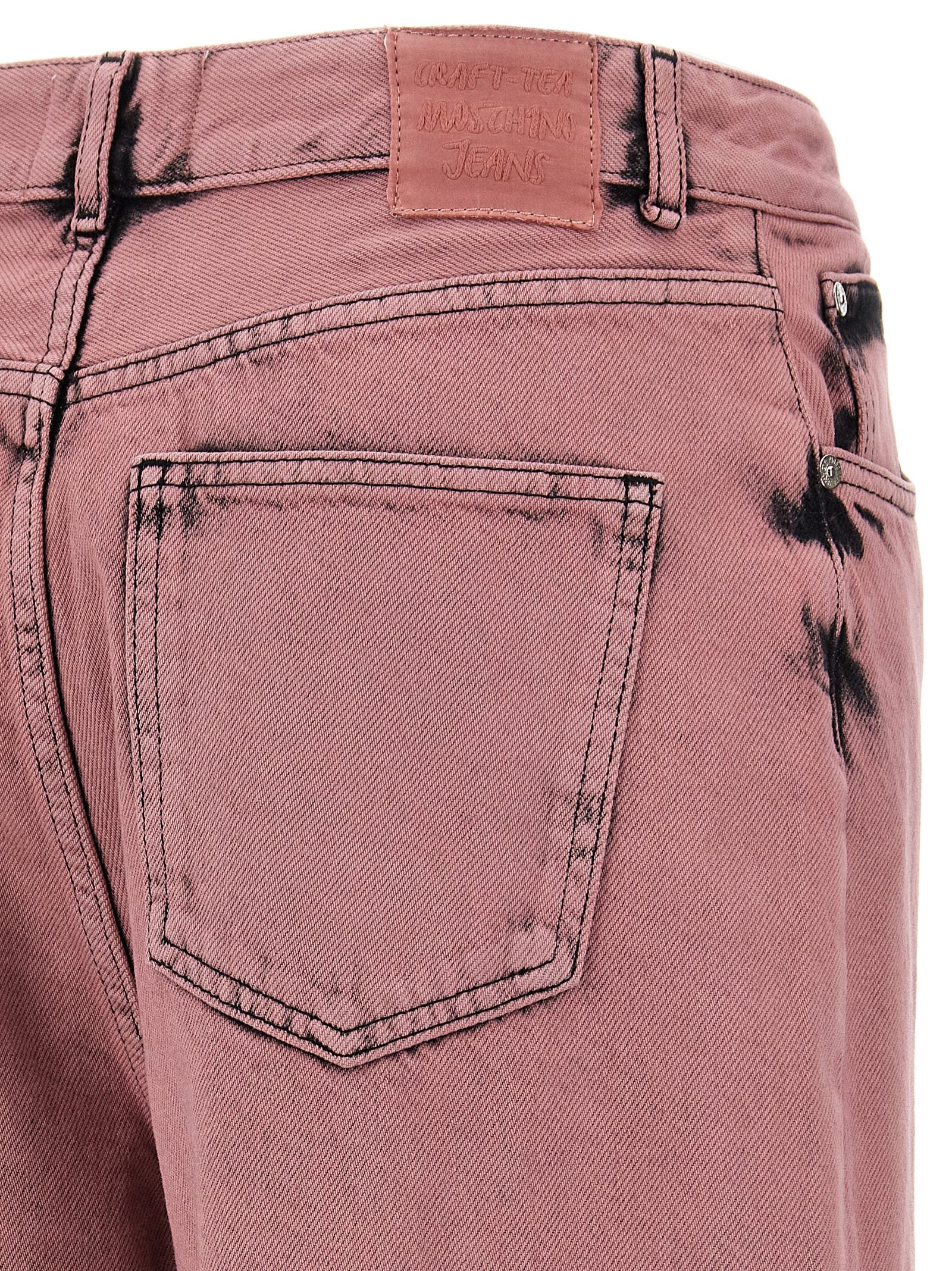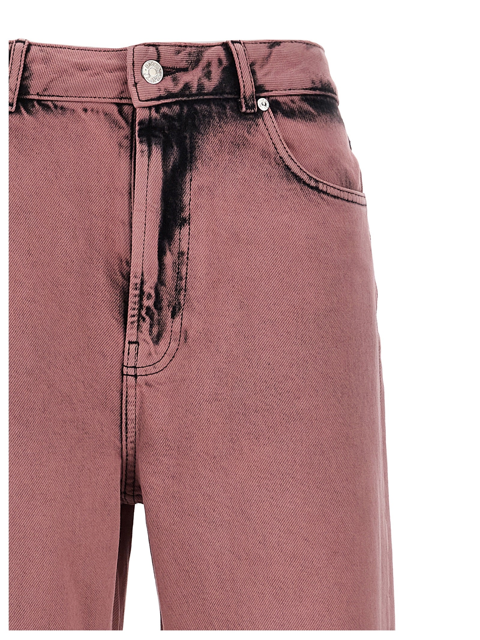 Jeans in denim in cotone effetto tie-dye, chiusura di zip e bottoni, cinque tasche e ricamo a logo posteriore.