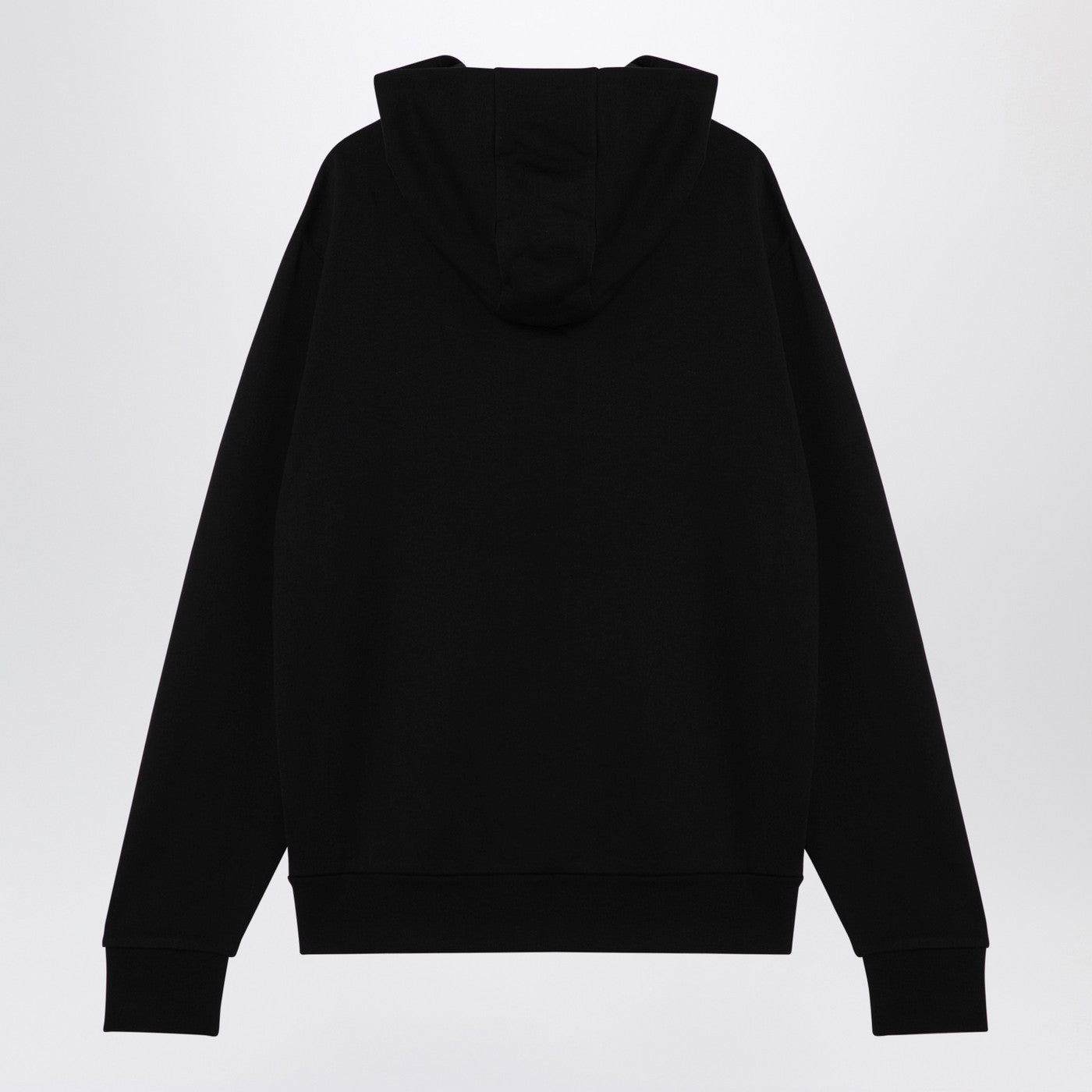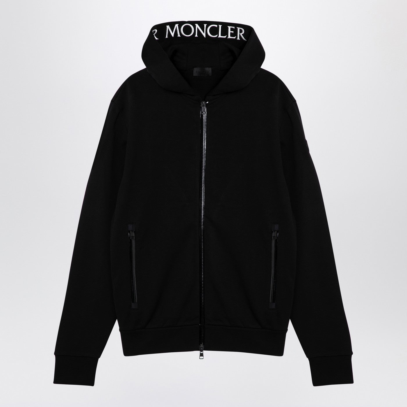Felpa di cotone nera di Moncler con un cappuccio con logo di lettere interne, maniche lunghe, un fissaggio anteriore a doppia zip con logo di lettere contrastanti all'interno, due tasche con zip laterali e orli a costola.