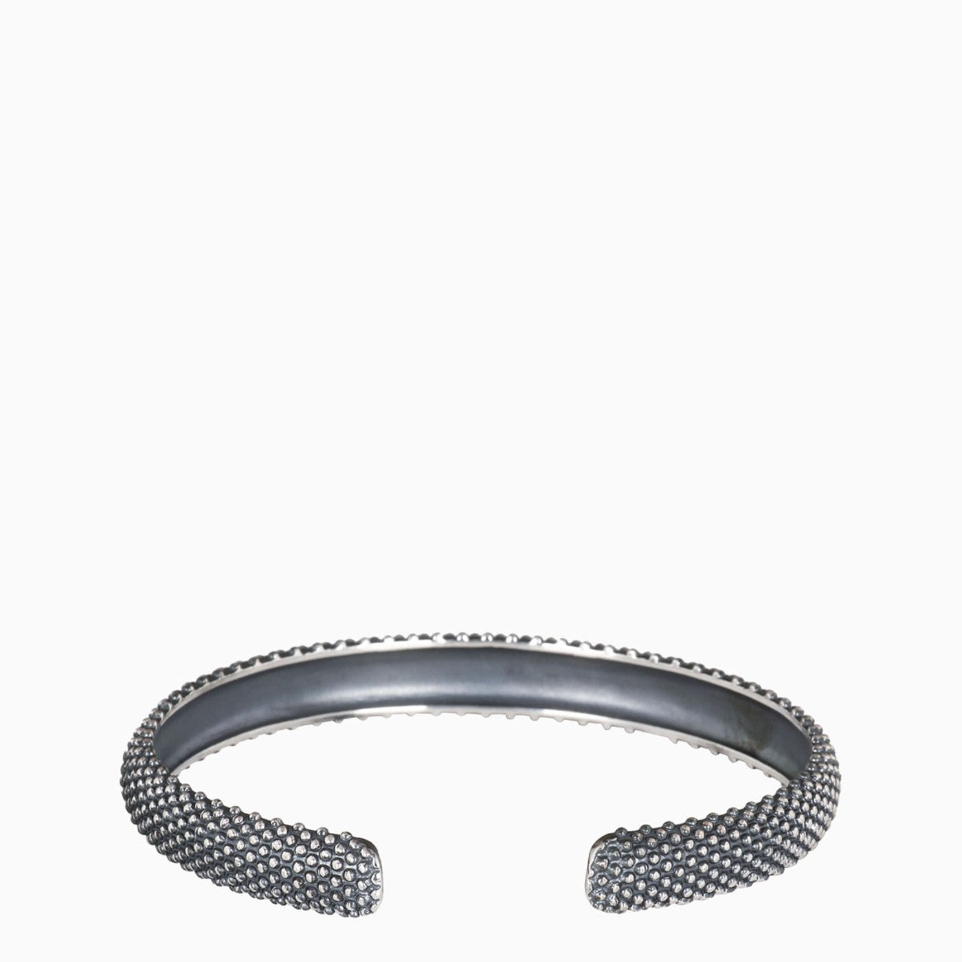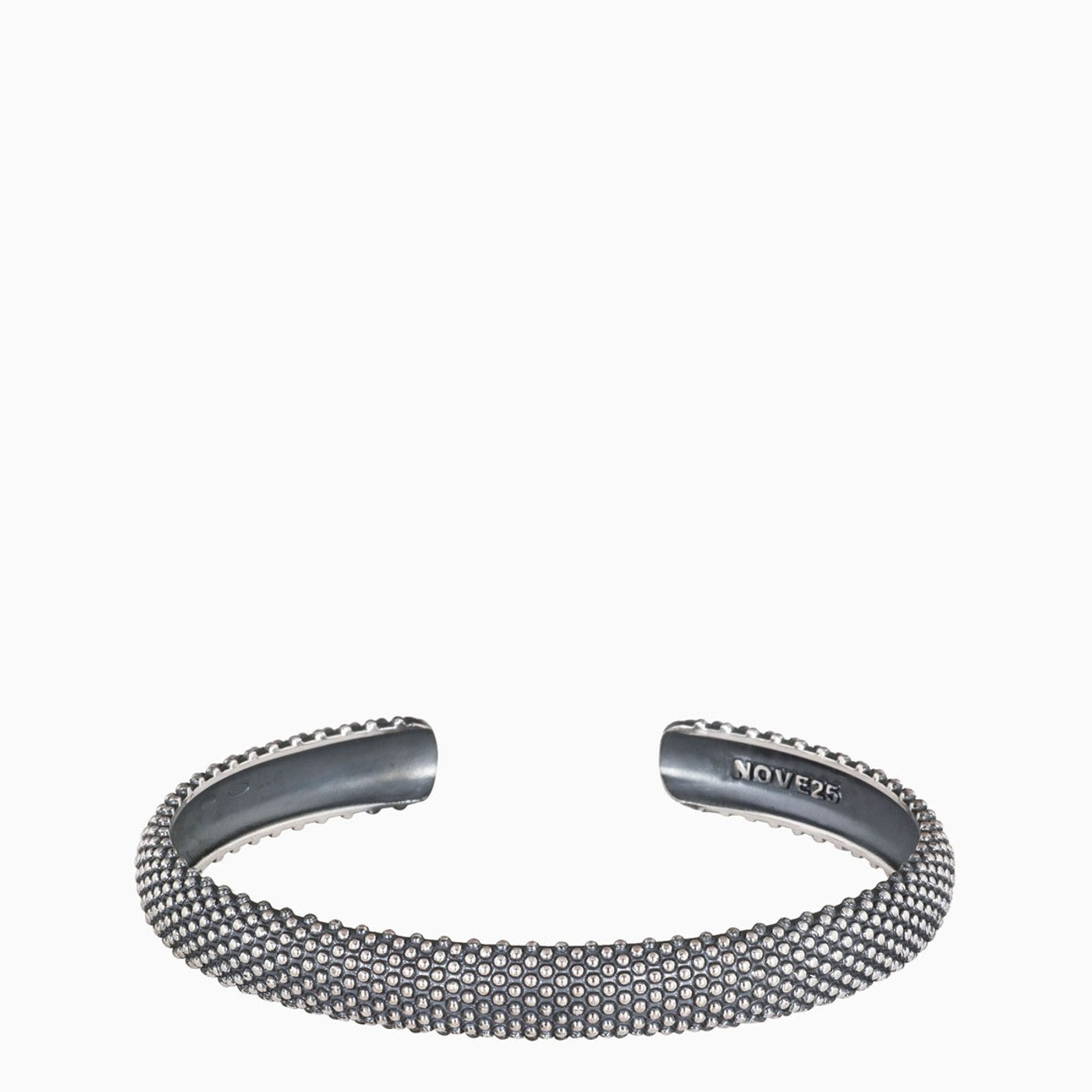 Il braccialetto Puntinato di Rigido Nove25 è stato realizzato in Italia. Abbina il tuo con qualsiasi abbigliamento casual per una finitura urbana.