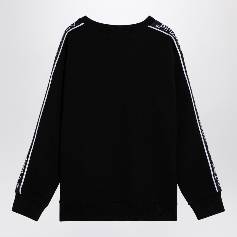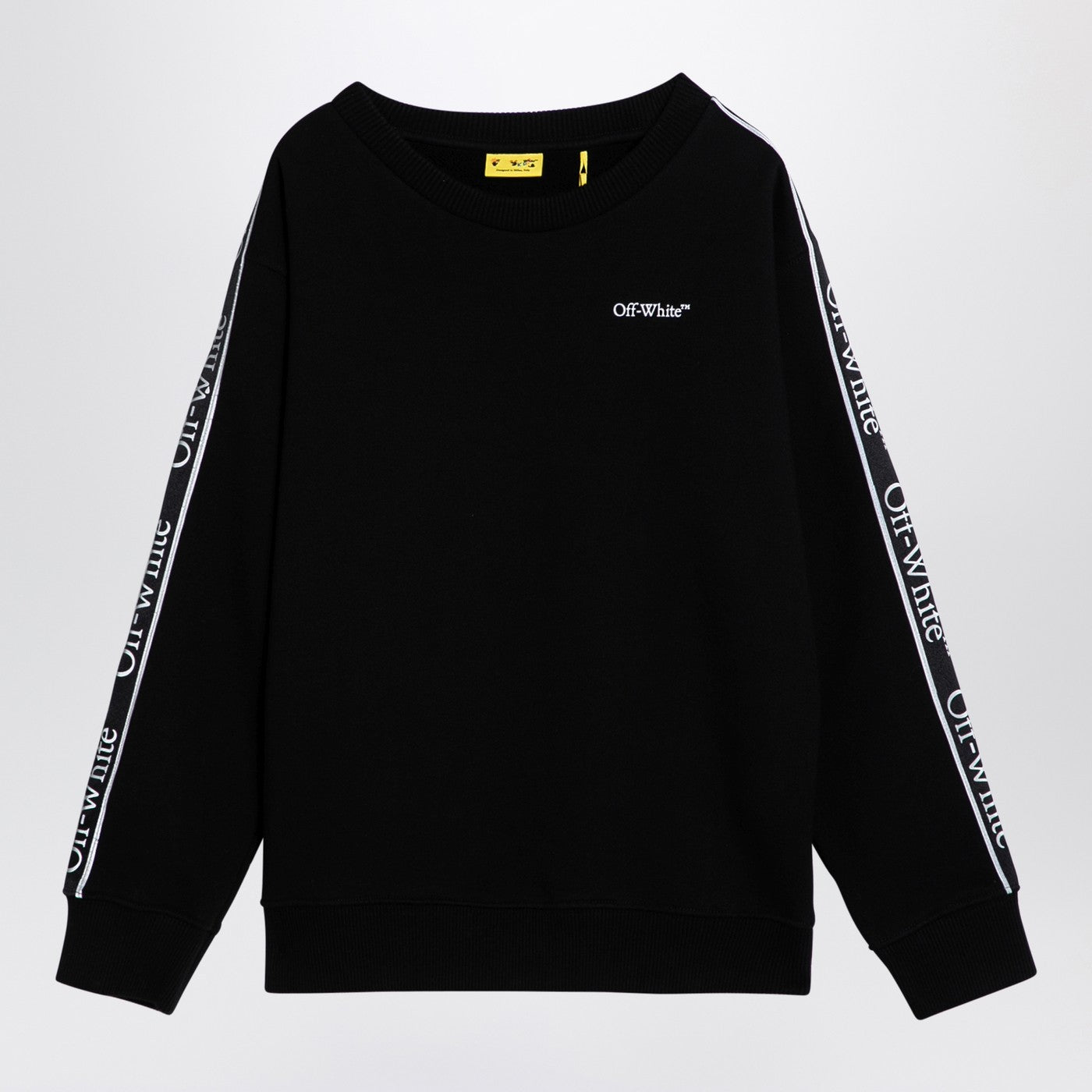 Felpa scollatura da equipaggio di cotone nero da bianco sporco con maniche lunghe con strisce logo, orli a coste, lettere contrastanti Stampa logo sul torace e orlo dritto.