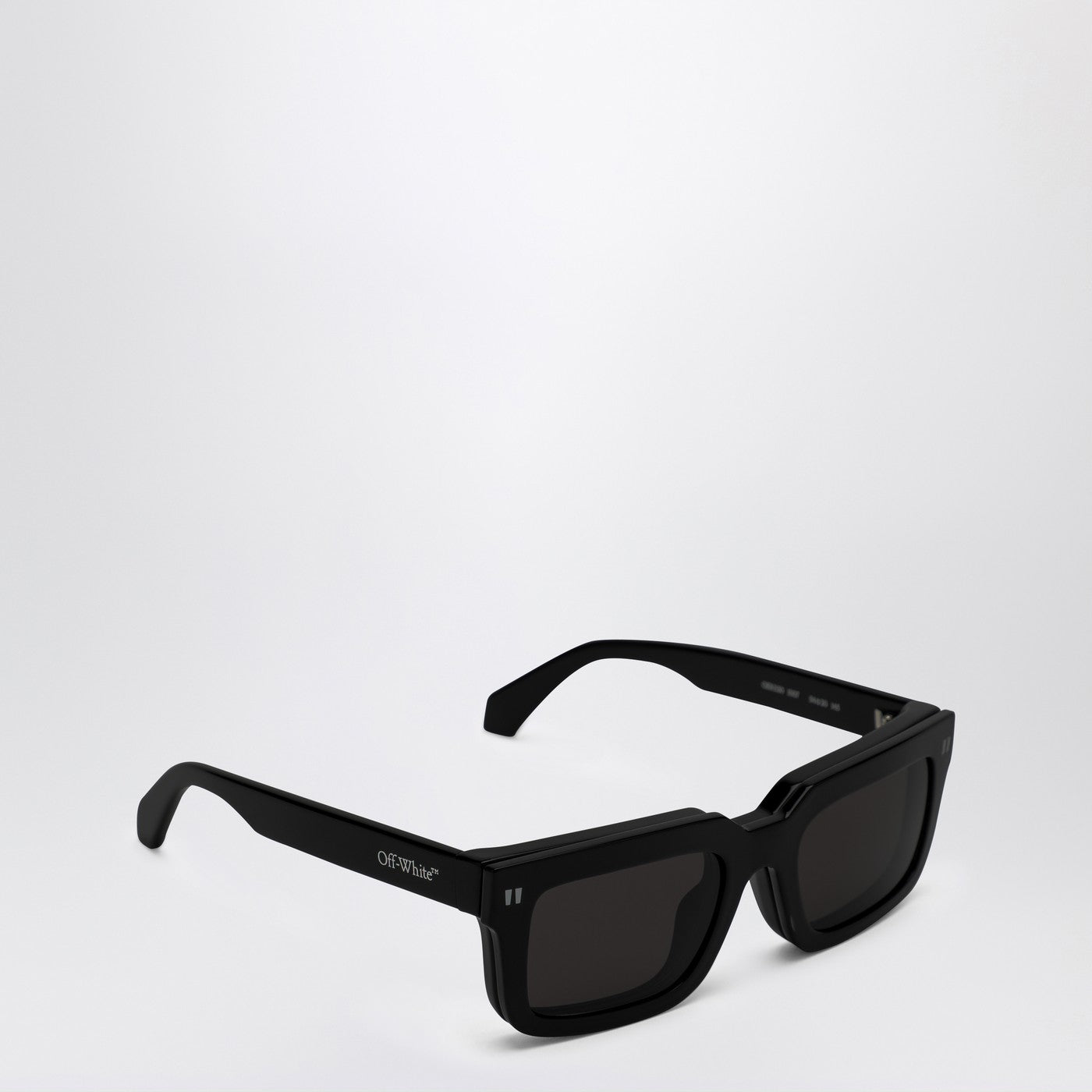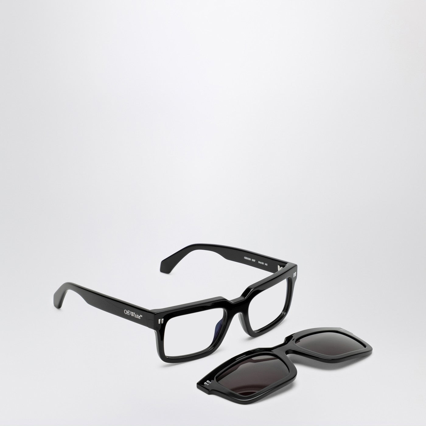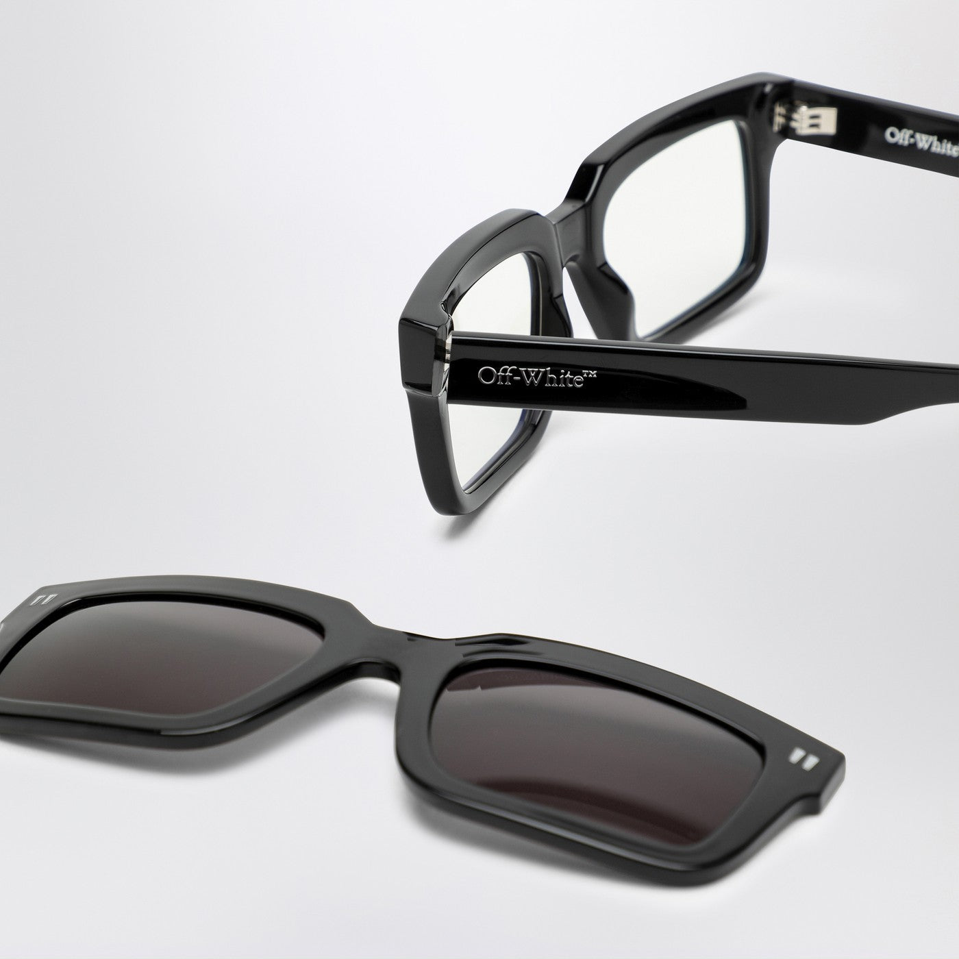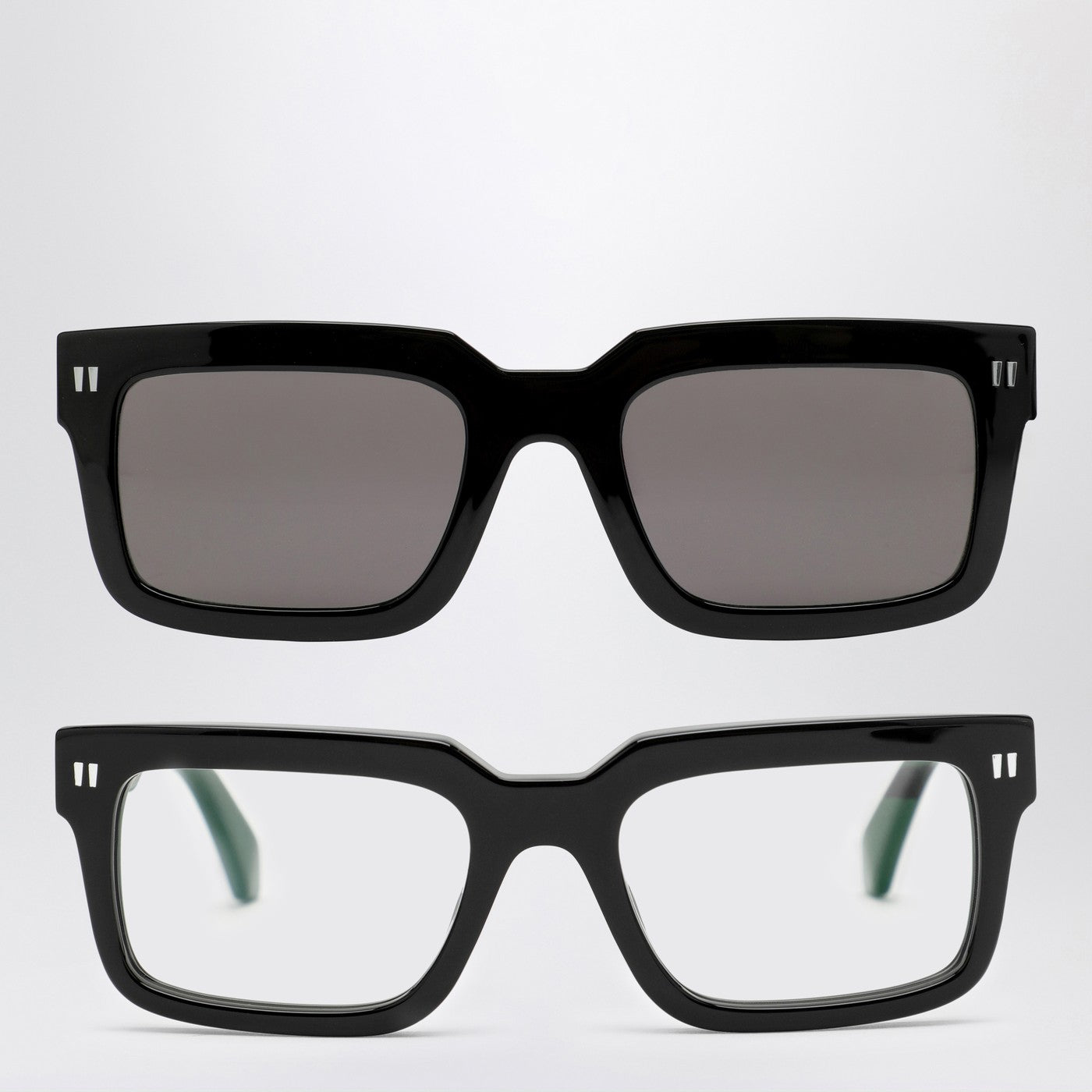 Occhiali da sole acetato nero di bianco sporco con lenti nere, con una cornice quadrata, design a clip con chiusura magnetica e logo di lettere sul tempio.