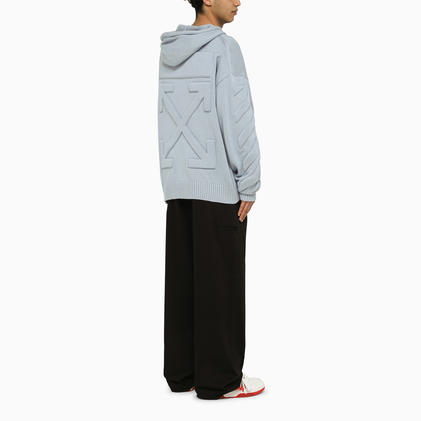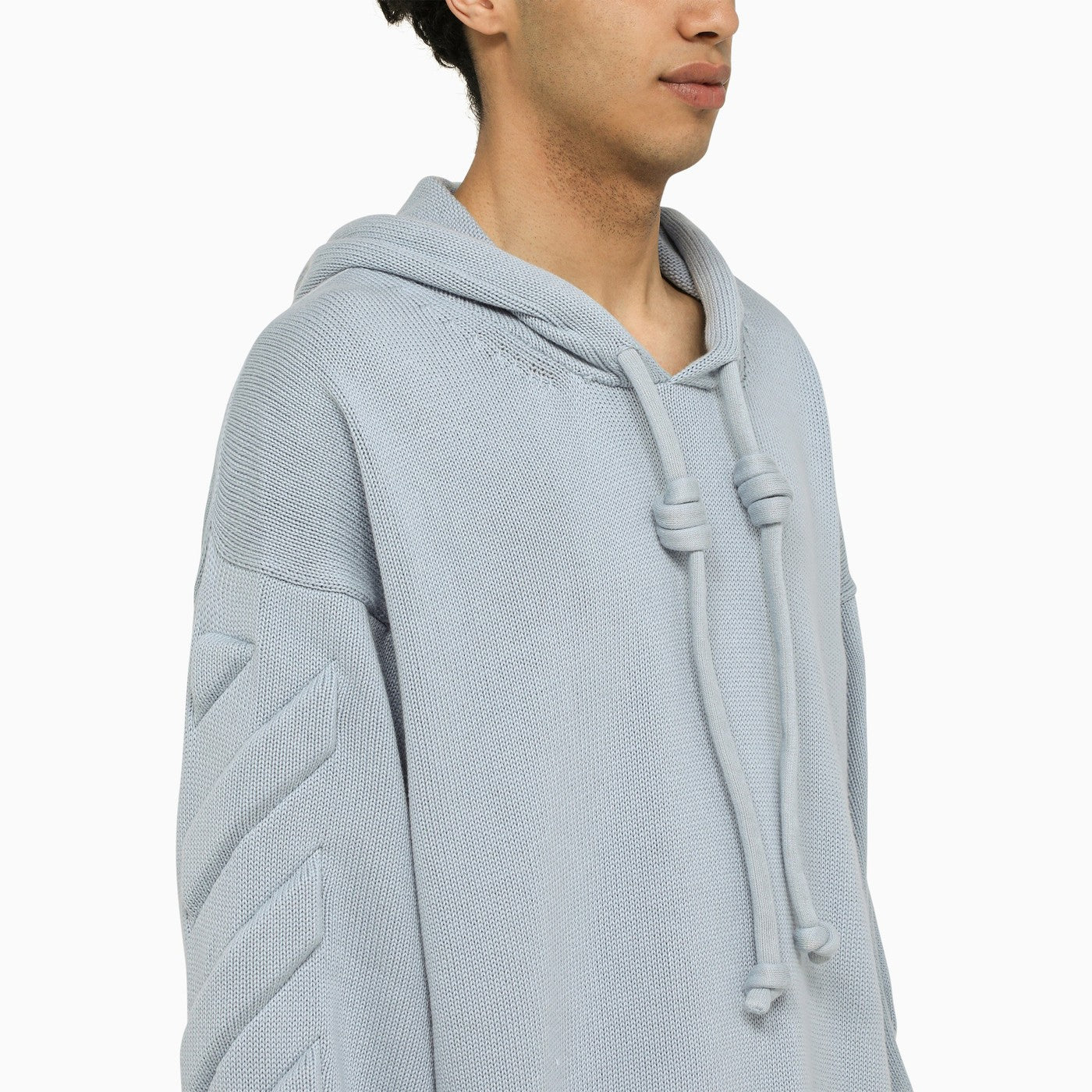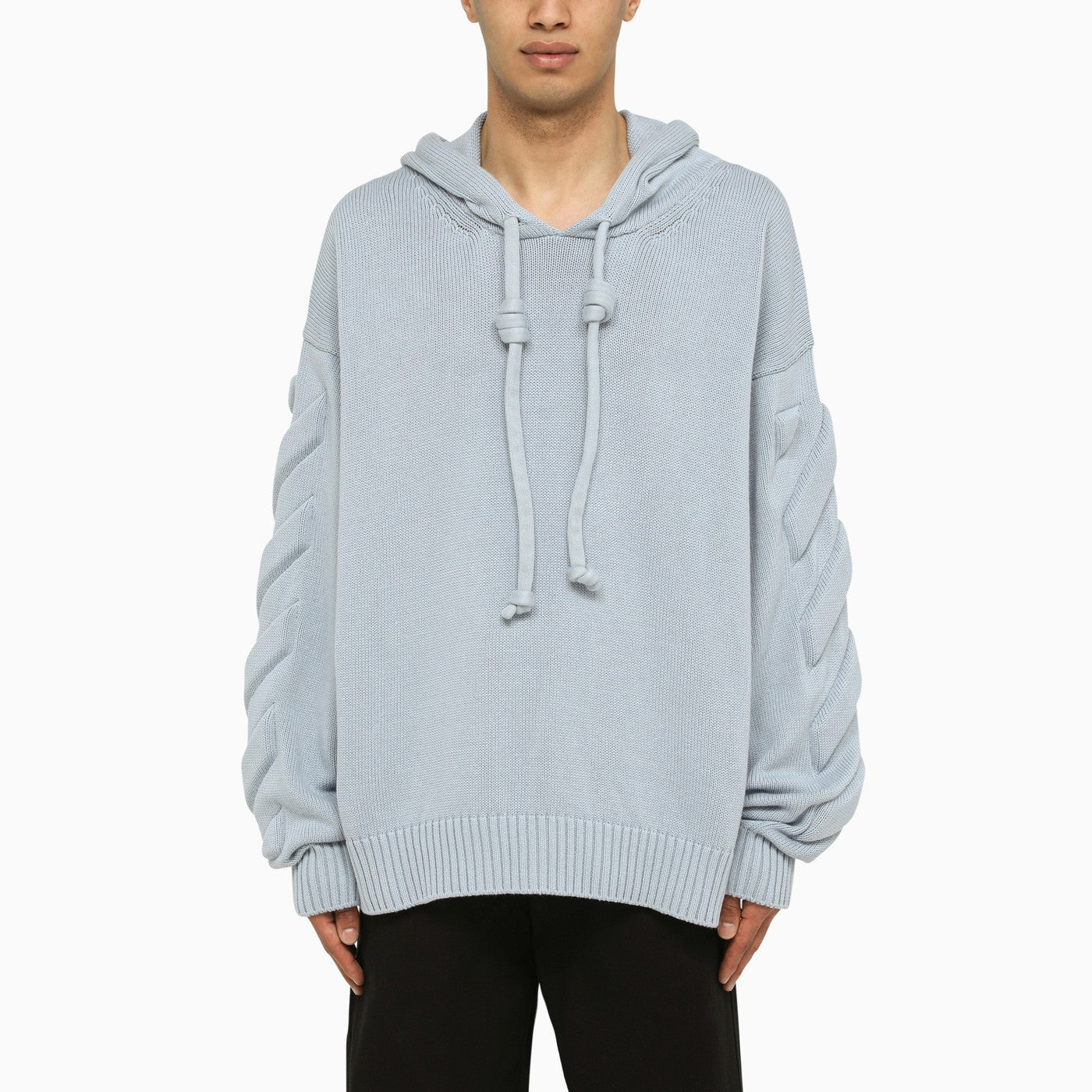 Felpa in maglia di cotone color ghiaccio di bianco off-bianco con un motivo diag a effetto 3D, maniche lunghe, cappuccio regolabile con corse annodate e bordi a coste.