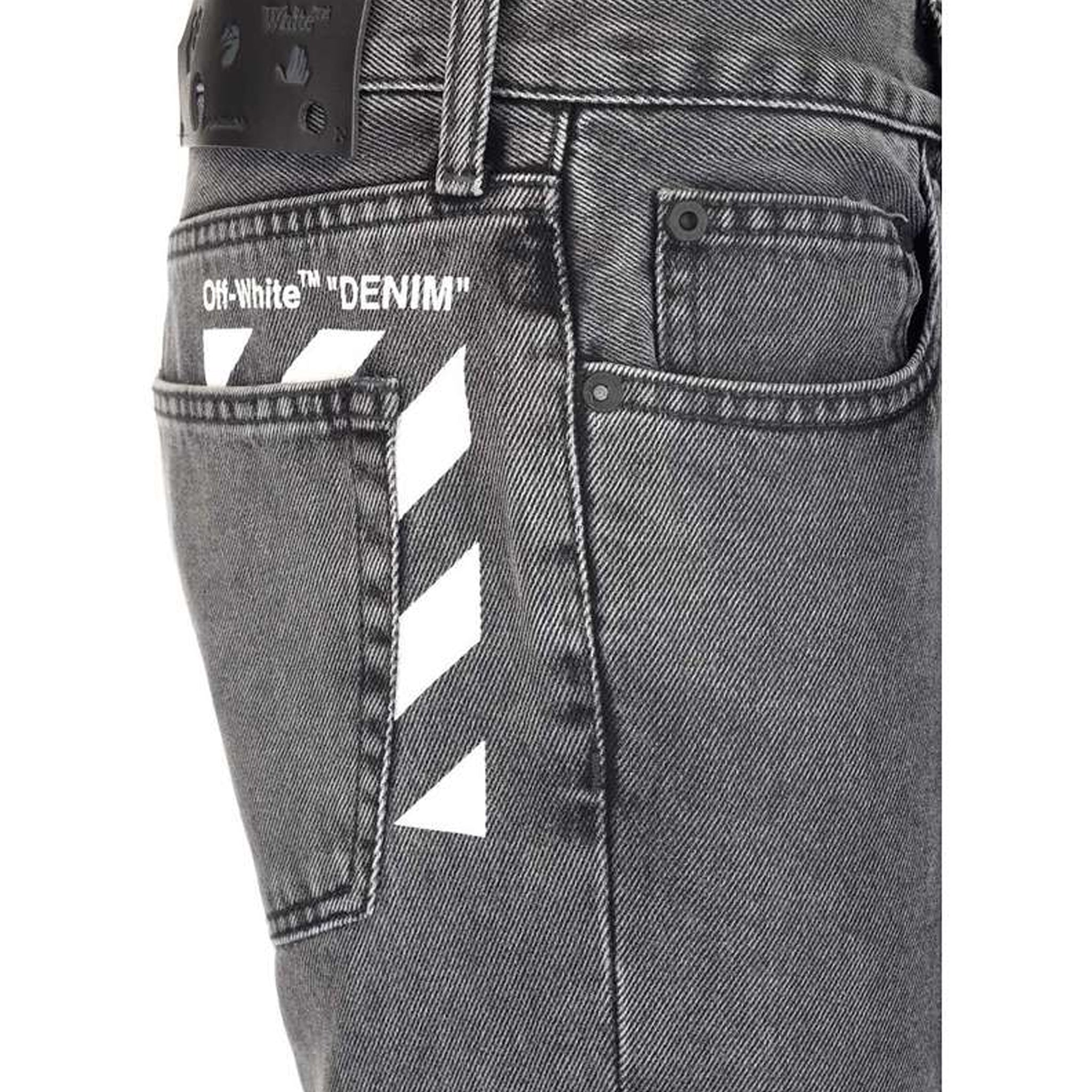 Off bianchi al largo di jeans in denim bianco