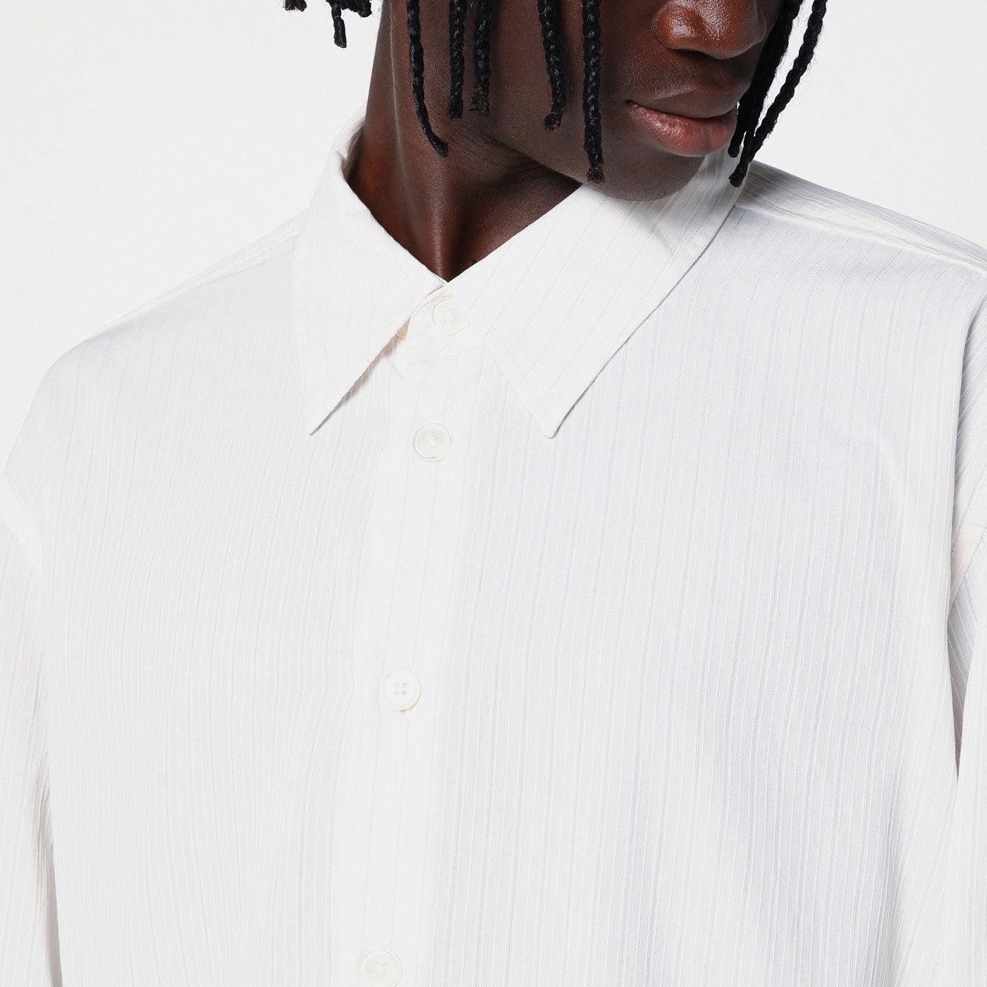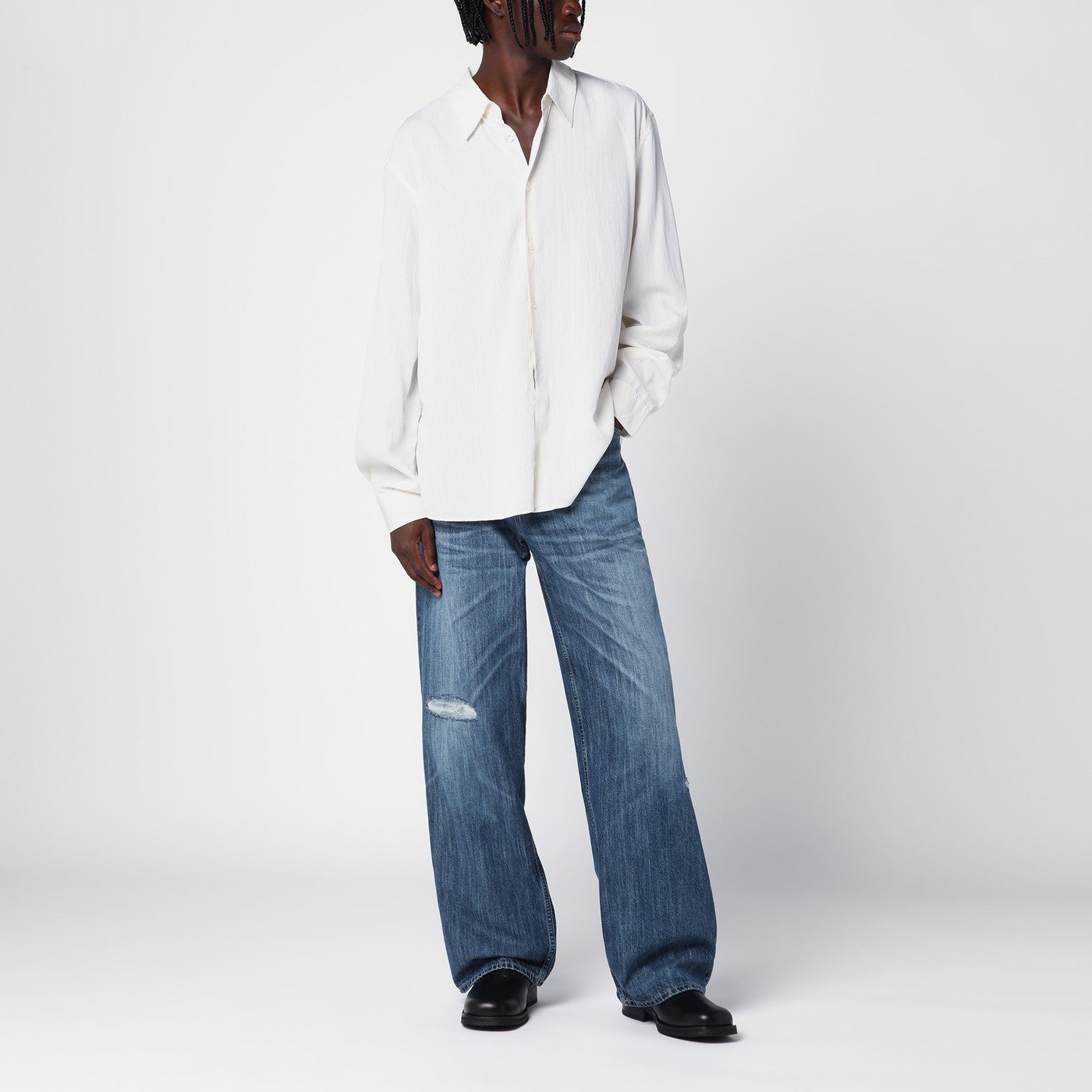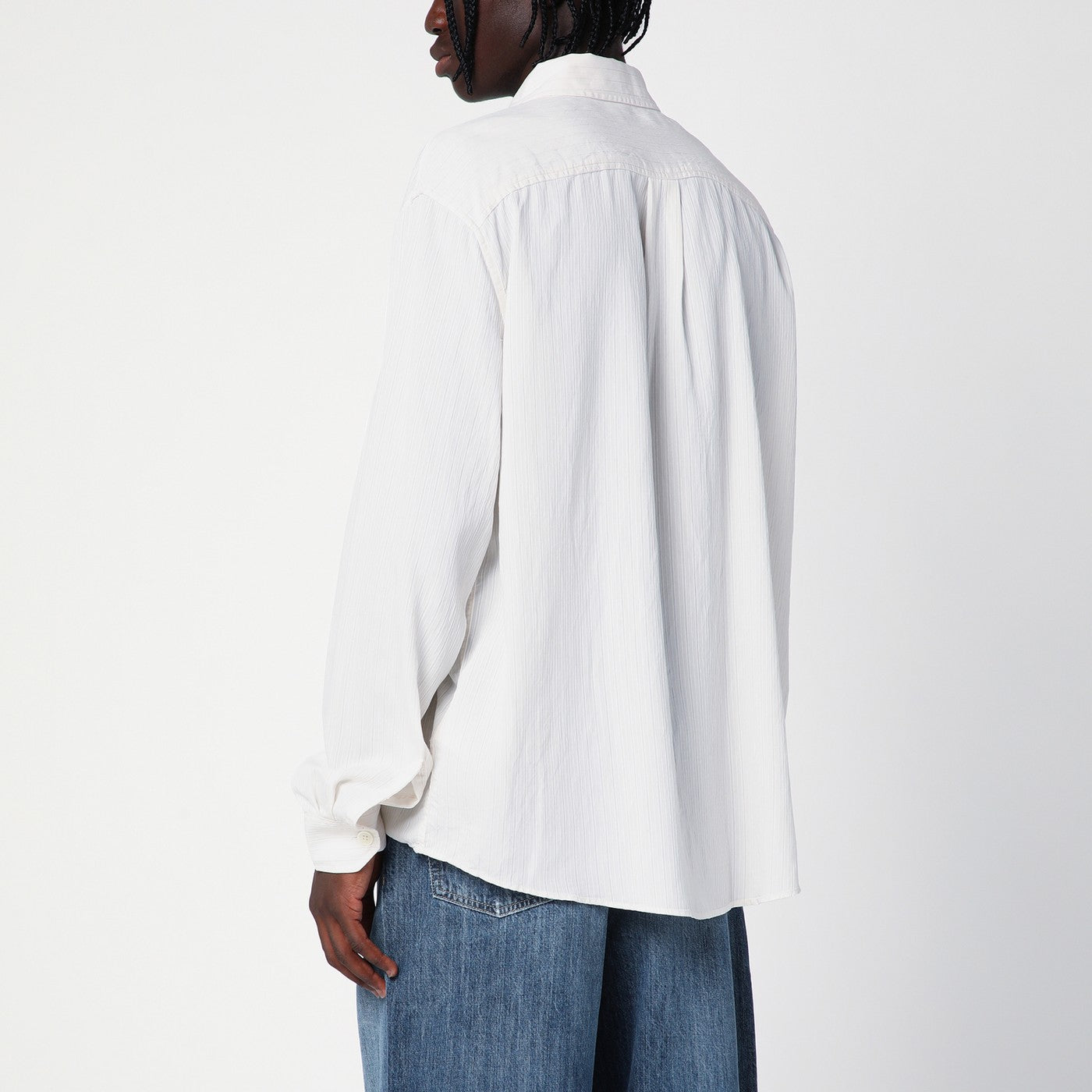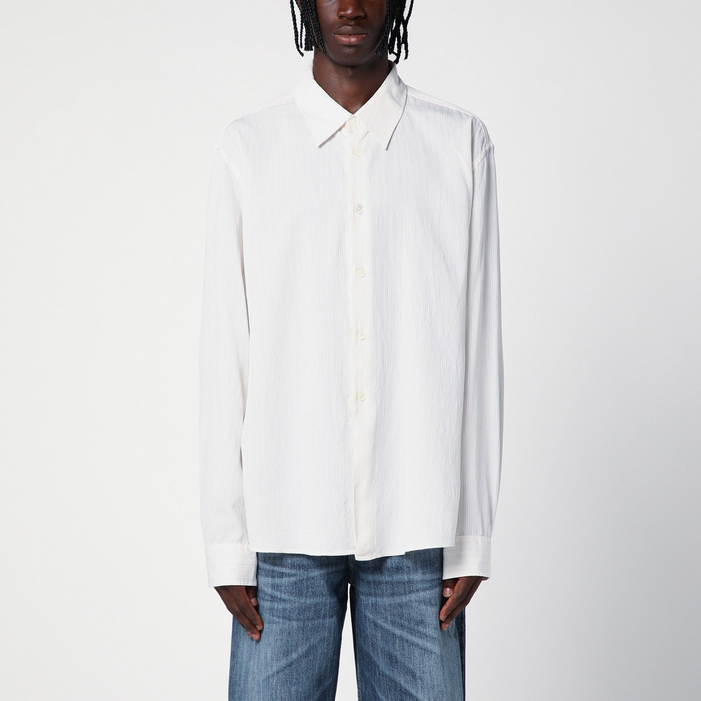 Camicia a strisce con miscela con viscosa avorio dalla nostra eredità con maniche lunghe con polsini a bottone, colletto classico e placca a bottone anteriore.
