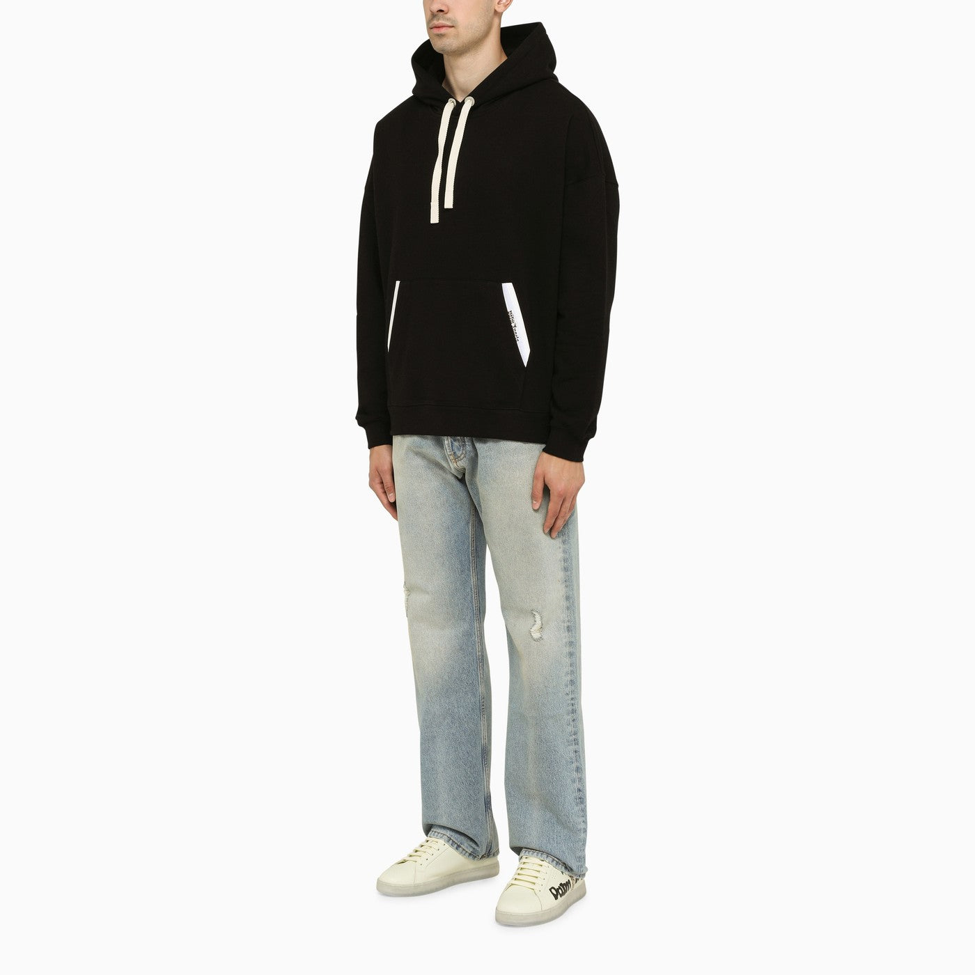 Stretch Black Stretch Cootne Felpa di Palm Angels, con un cappuccio regolabile con corse, una tasca di canguro sul davanti con tubazioni a contrasto e una vestibilità regolare.