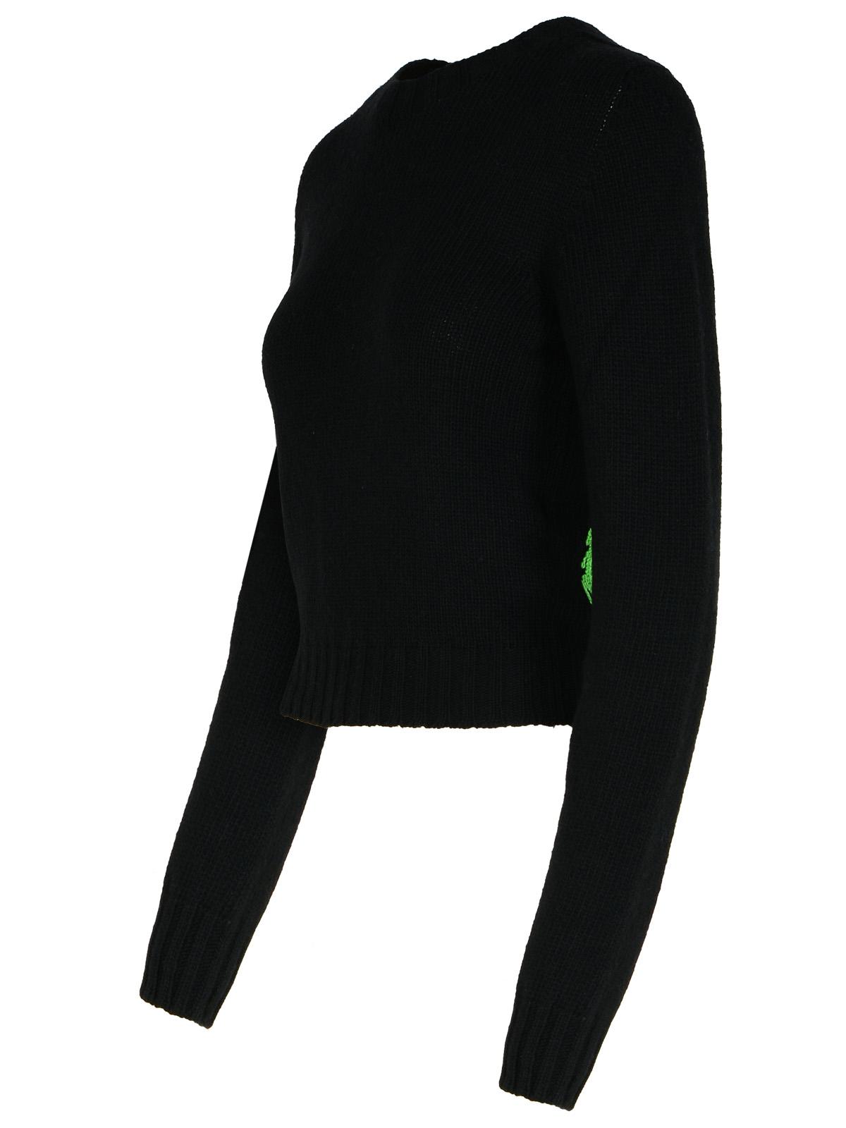 Lana a maglia in lana merino, viscosa, poliammide e cashmere, collo dell'equipaggio finito, logo verde contrastante sul retro, orlo a coste e polsini