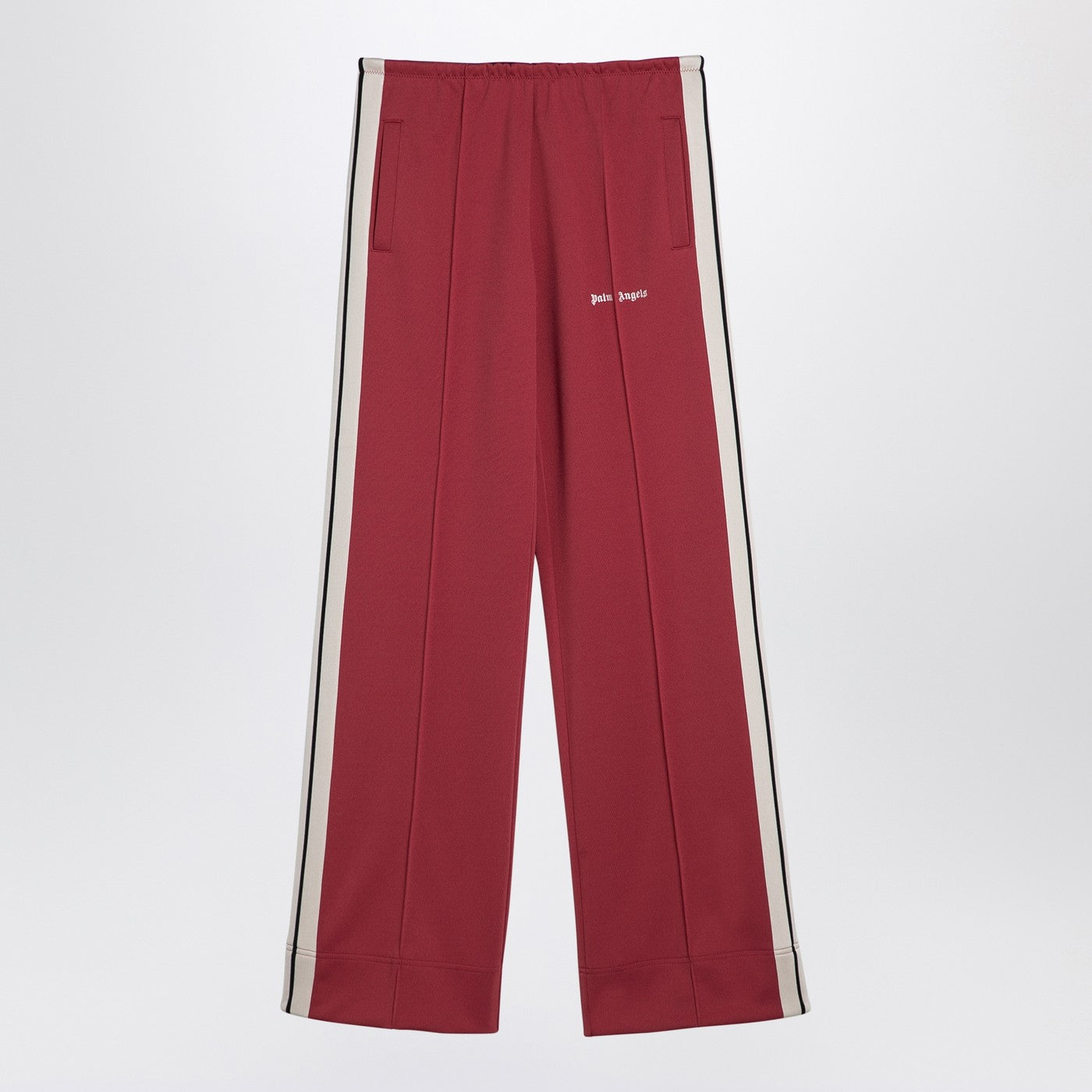 Pantaloni sportivi di Palm Angels in Earth Red, con una cintura elasticizzata, due tasche laterali Welt, una fascia écru sul lato e un logo di lettere contrastante sul davanti.