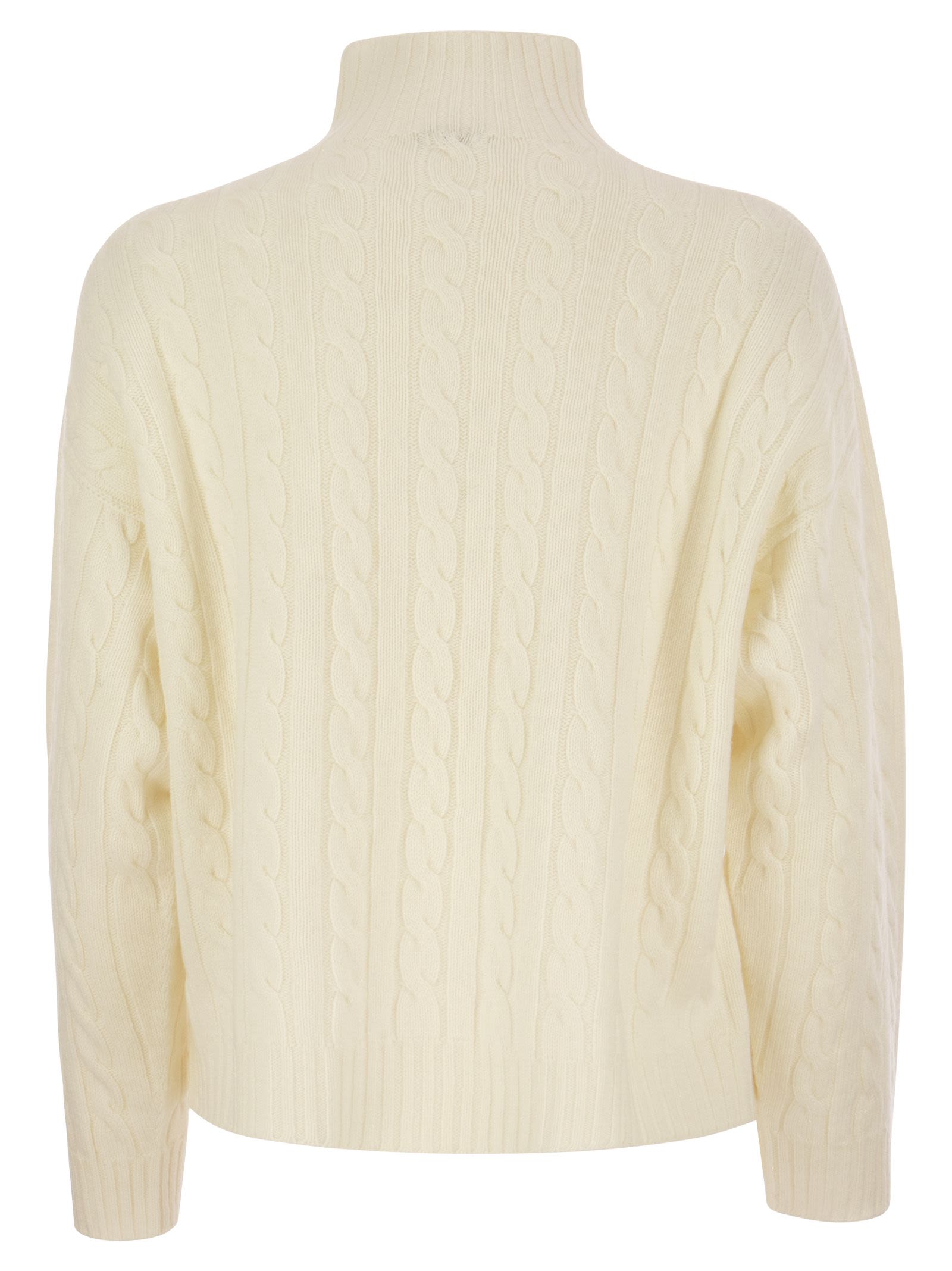 Lana, seta e cashmere miscela jumper, un bel mix per un aspetto impressionante, perfetto per ogni giorno con un cavo a maglia, al collo alto e dettagli a strisce su colletto, polsini e orlo. - Neck High - polsini a coste, bordo di orlo e colletto - ID designer adatta regolare: S99018F07 09095 401