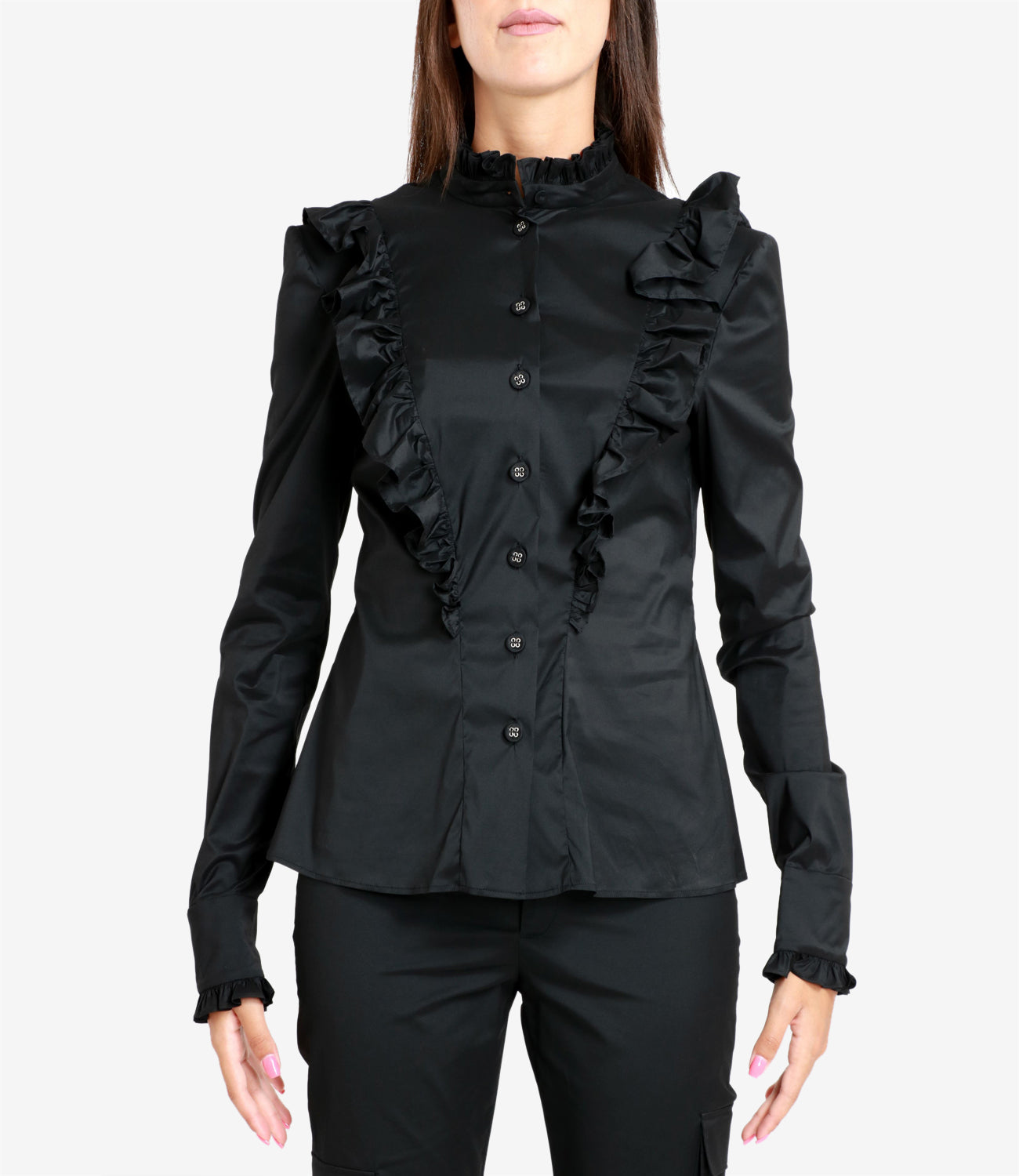 - collare alto con volant