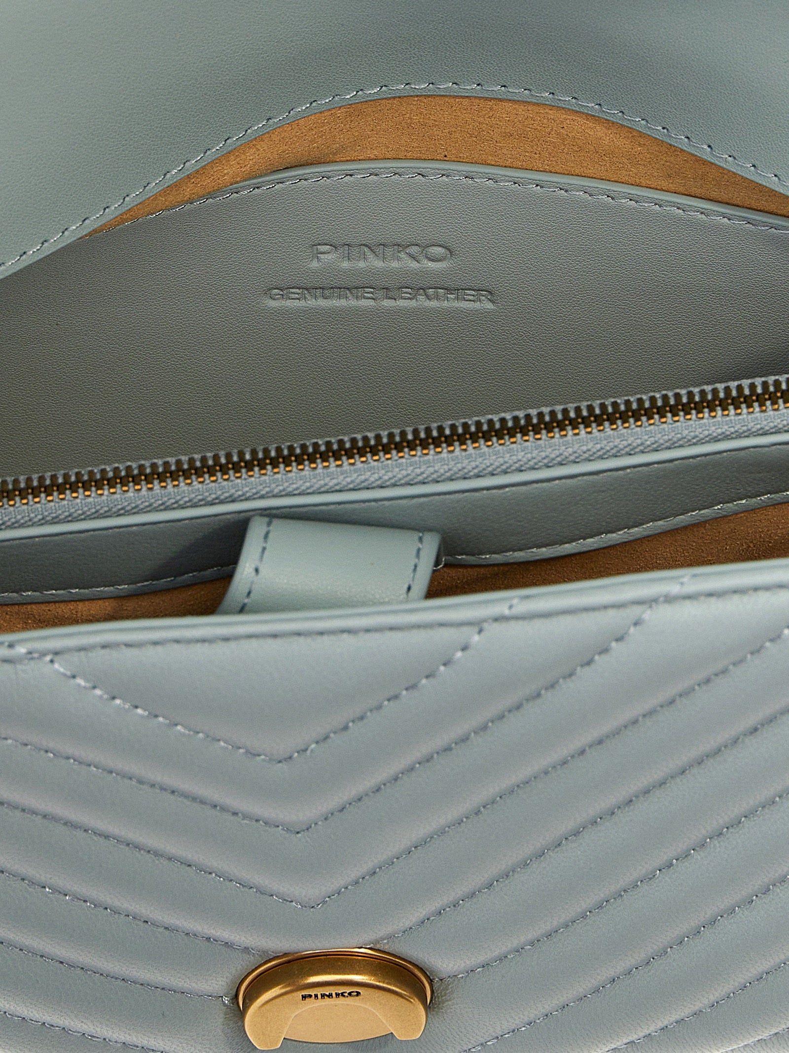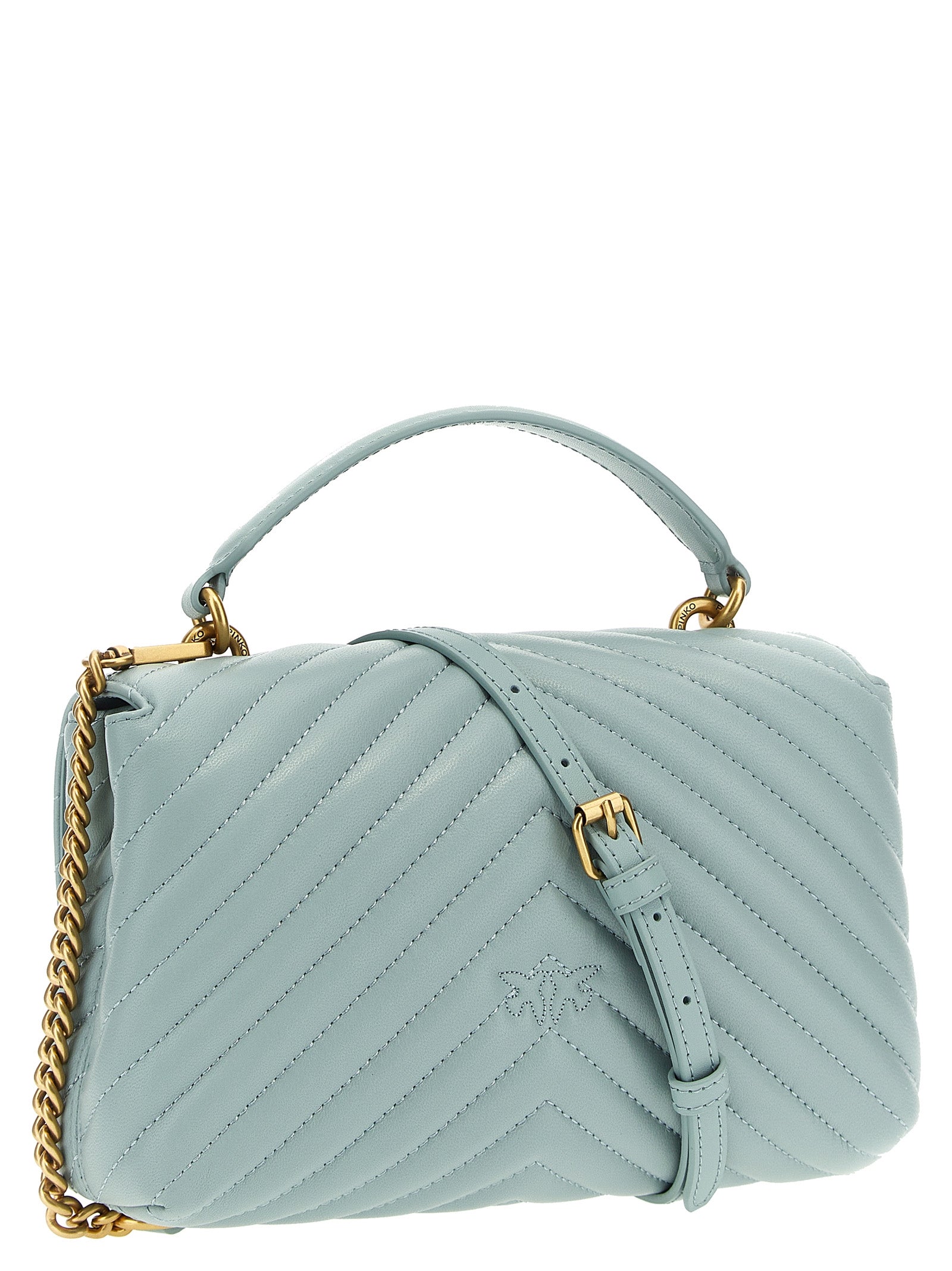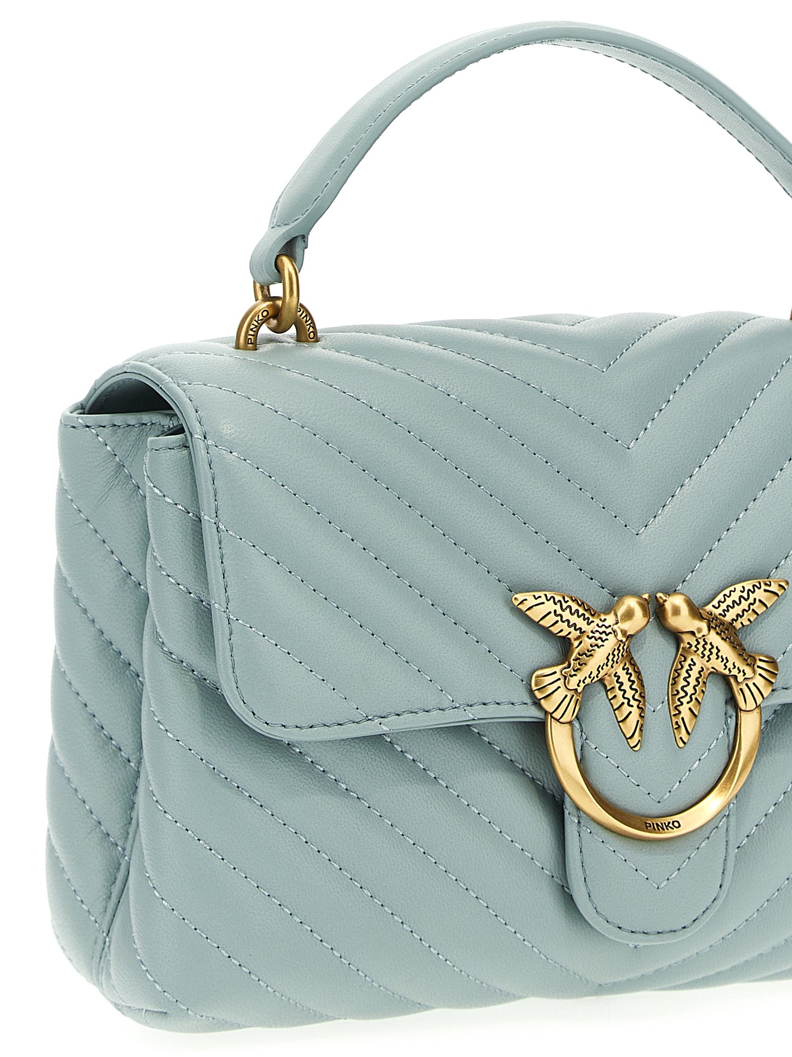 Borsa "Mini Lady Love Bag Puff" in pelle Chevron nappa trapuntata, chiusura con dettaglio con fibbia logo, maniglia superiore, tracolla a catena e in pelle.