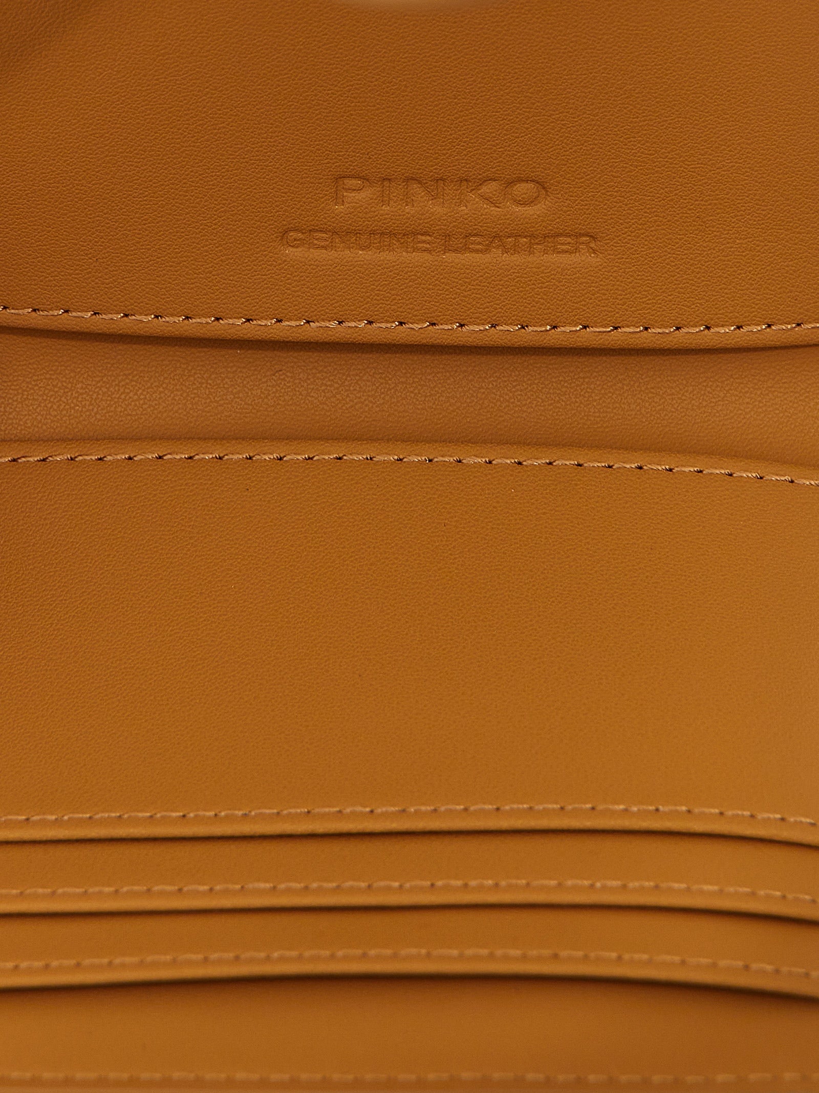 Portafoglio in pelle "multipopo", chiusura dei pulsanti con appliqué a logo in metallo, chiusura a zip e supporto per carte.