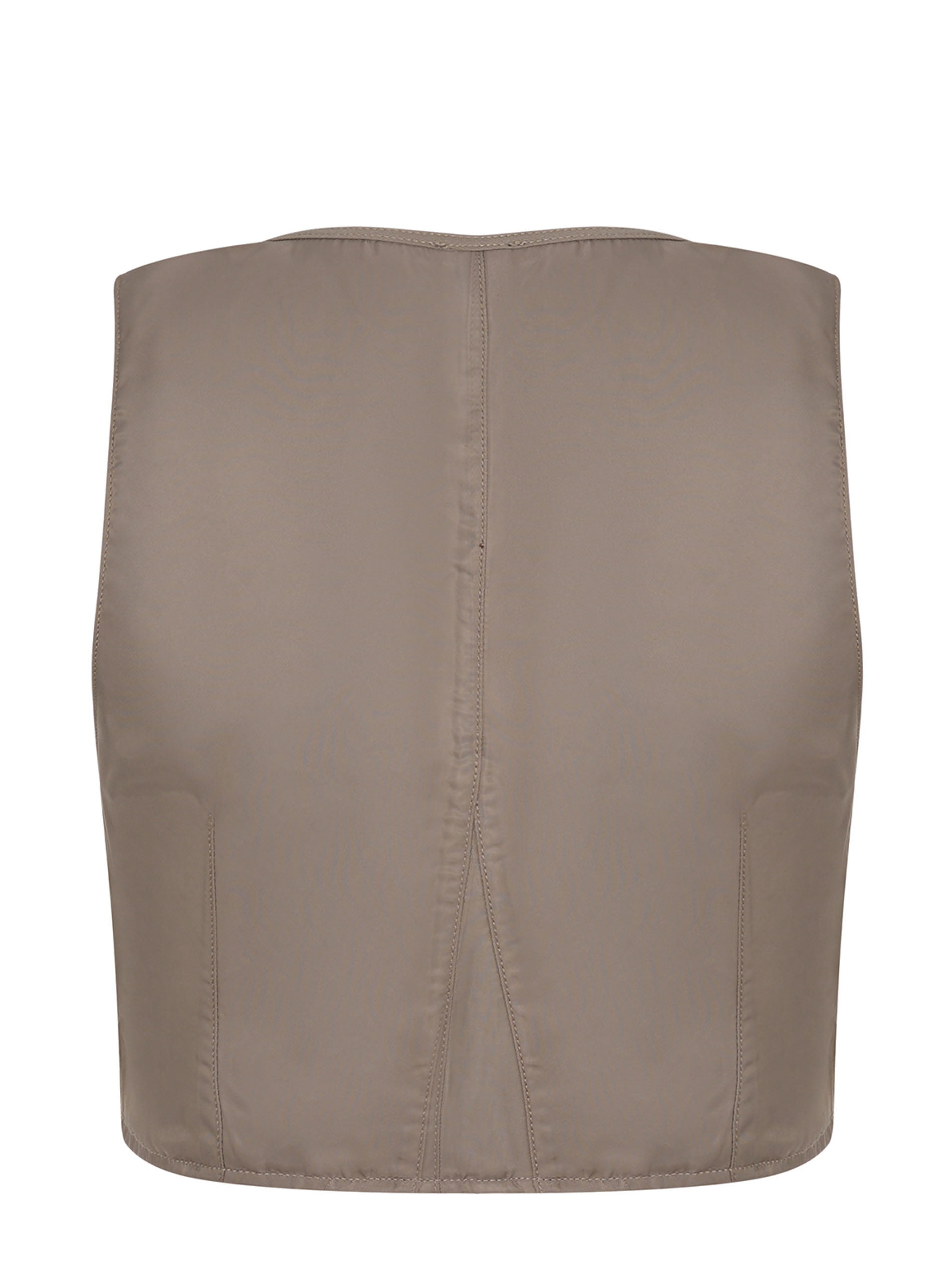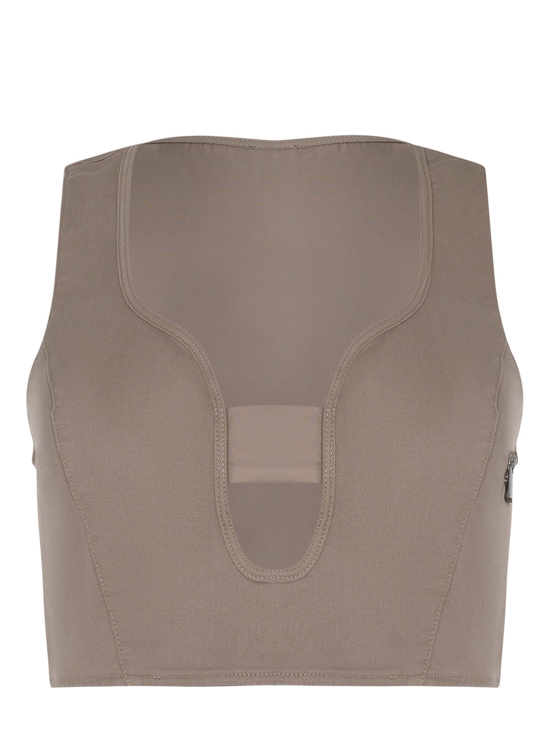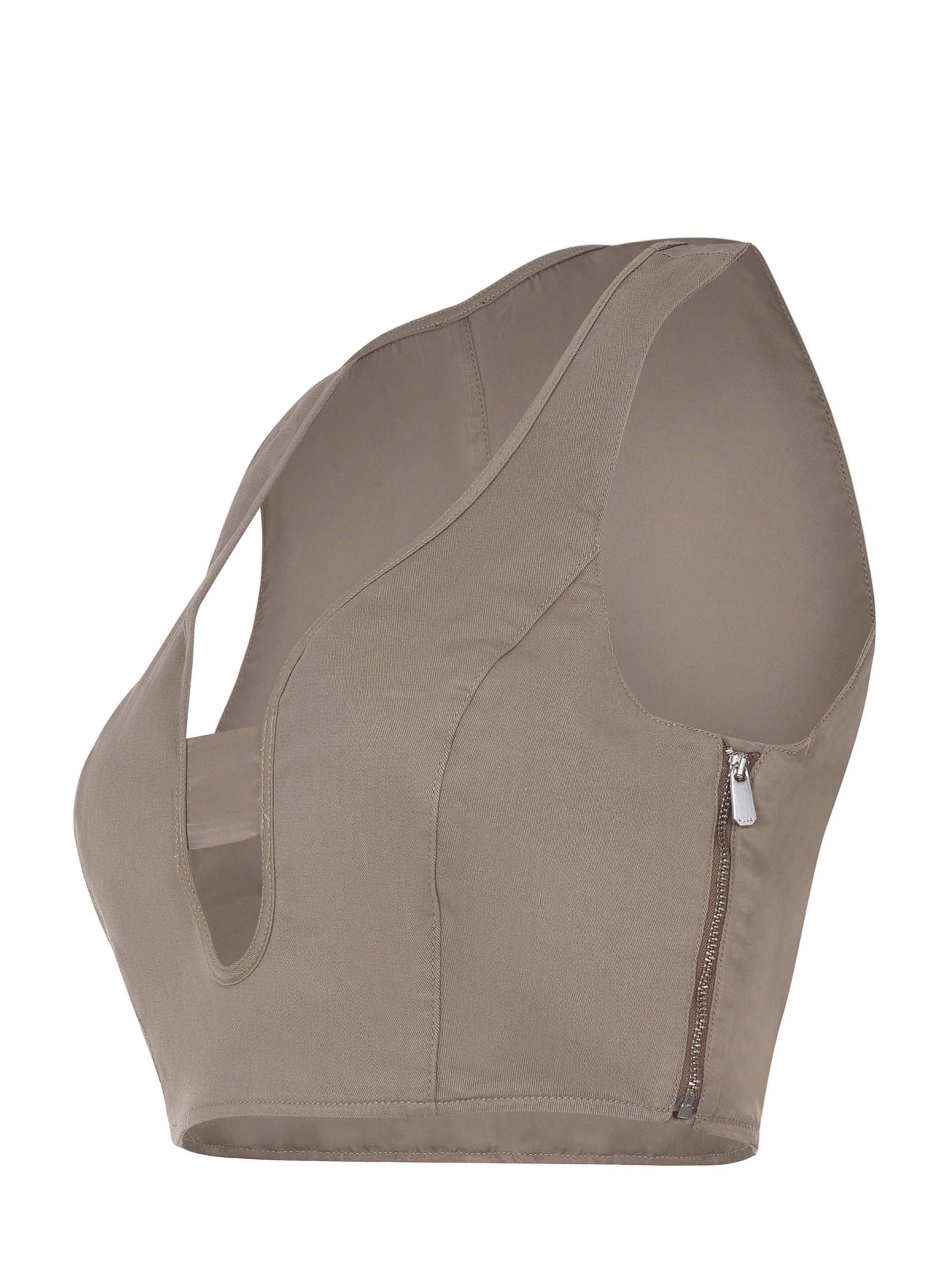 Pinko "Strangelove" Top di cotone in verde militare. Senza maniche. Cintura a spalla ampia. Scollo ampio con inserto in tela tecnico lucido. Chiusura a zip laterale. Di nuovo in tessuto tecnico lucido. 97% di cotone 3% elastano