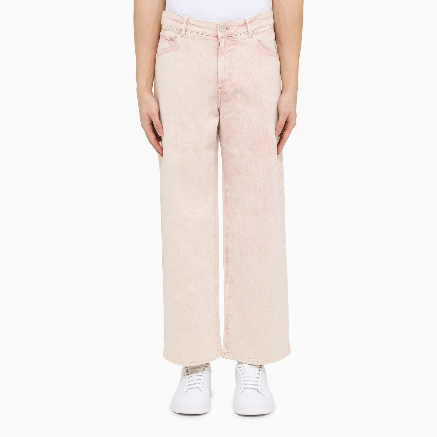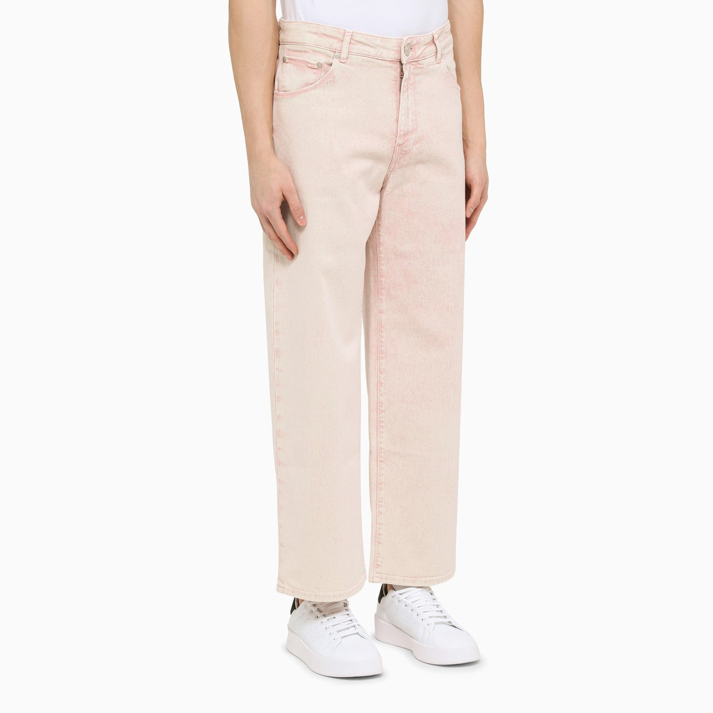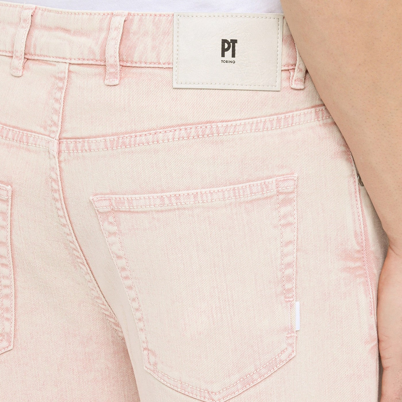 Jeans regolari di Pt Torino in denim di cotone rosa, con tre tasche anteriori, due tasche posteriori, fissaggio sul pulsante frontale e patch logo cucito sul retro