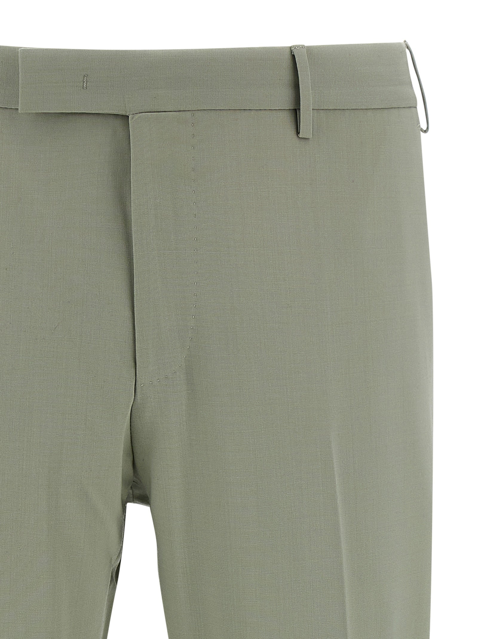 Pantaloni di lana batavia "Dieci", lunghezza della caviglia, chiusura a zip gancio e bottone, tasche, gamba dritta, piega allungata.