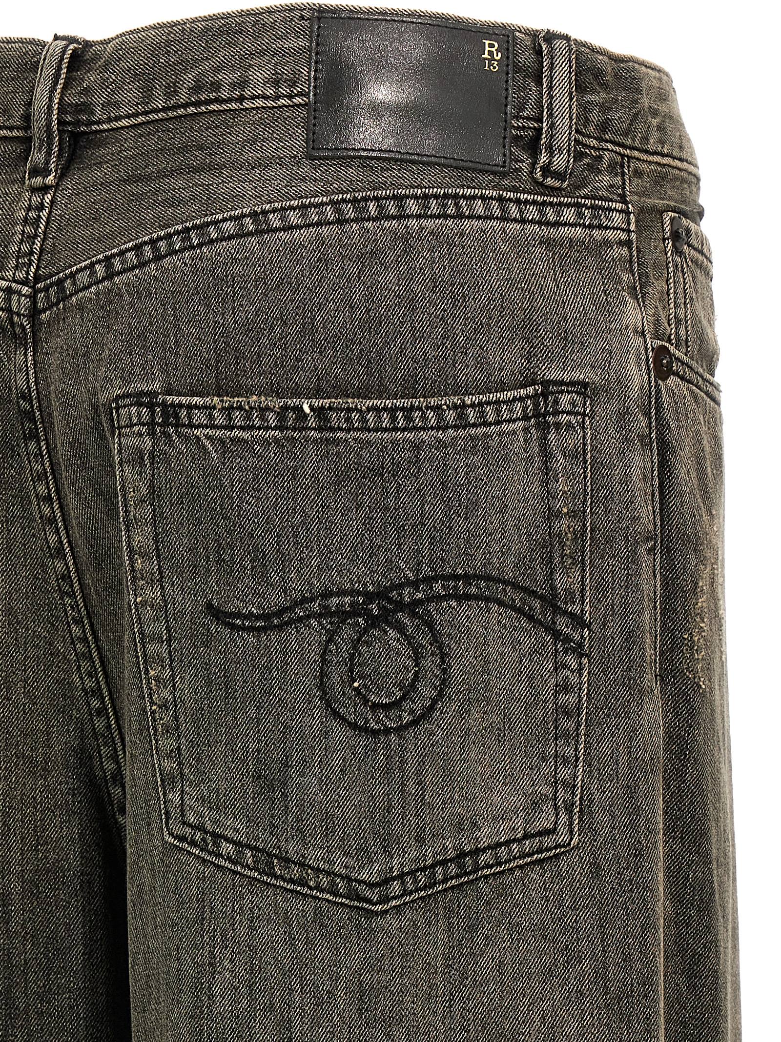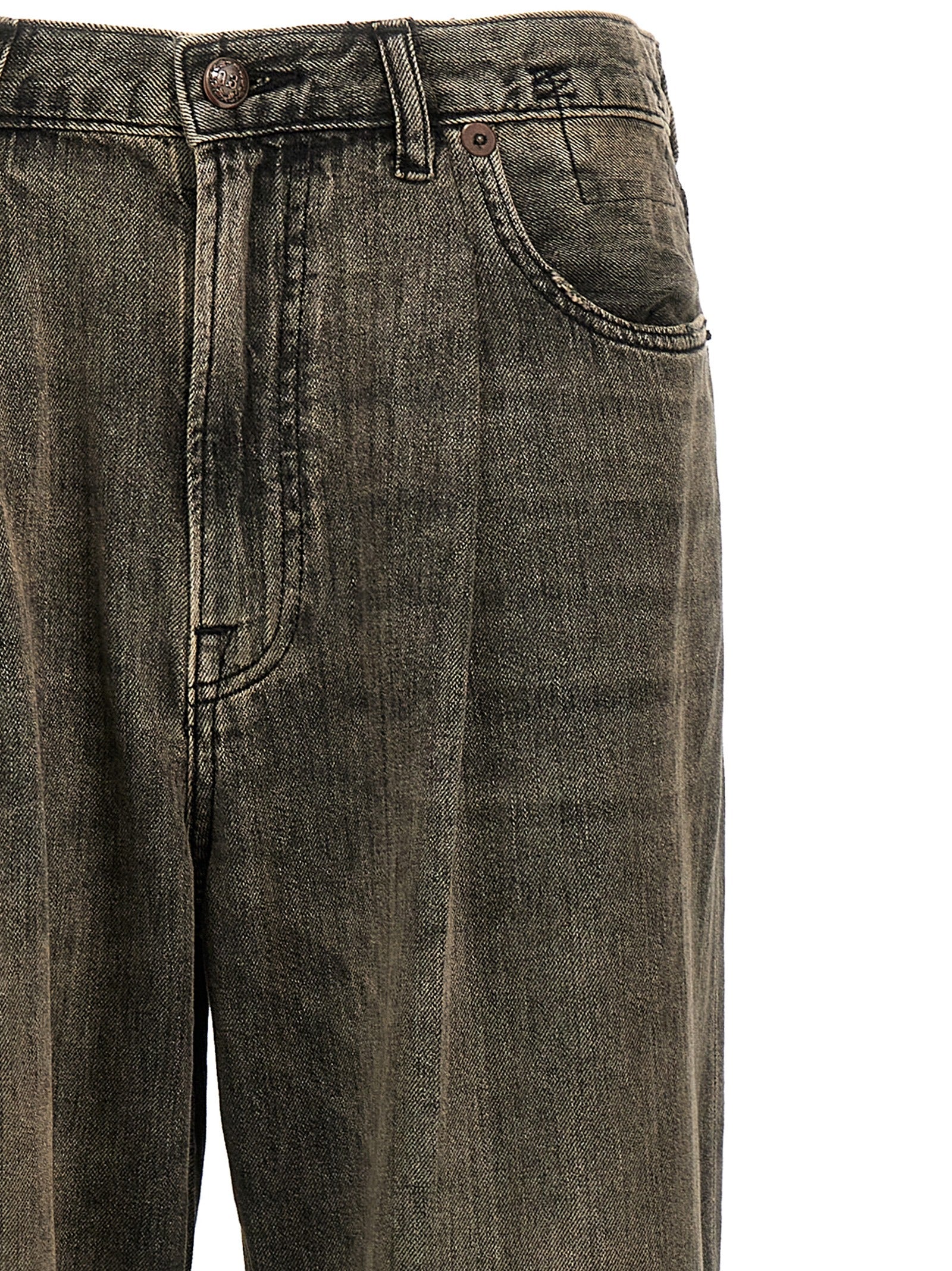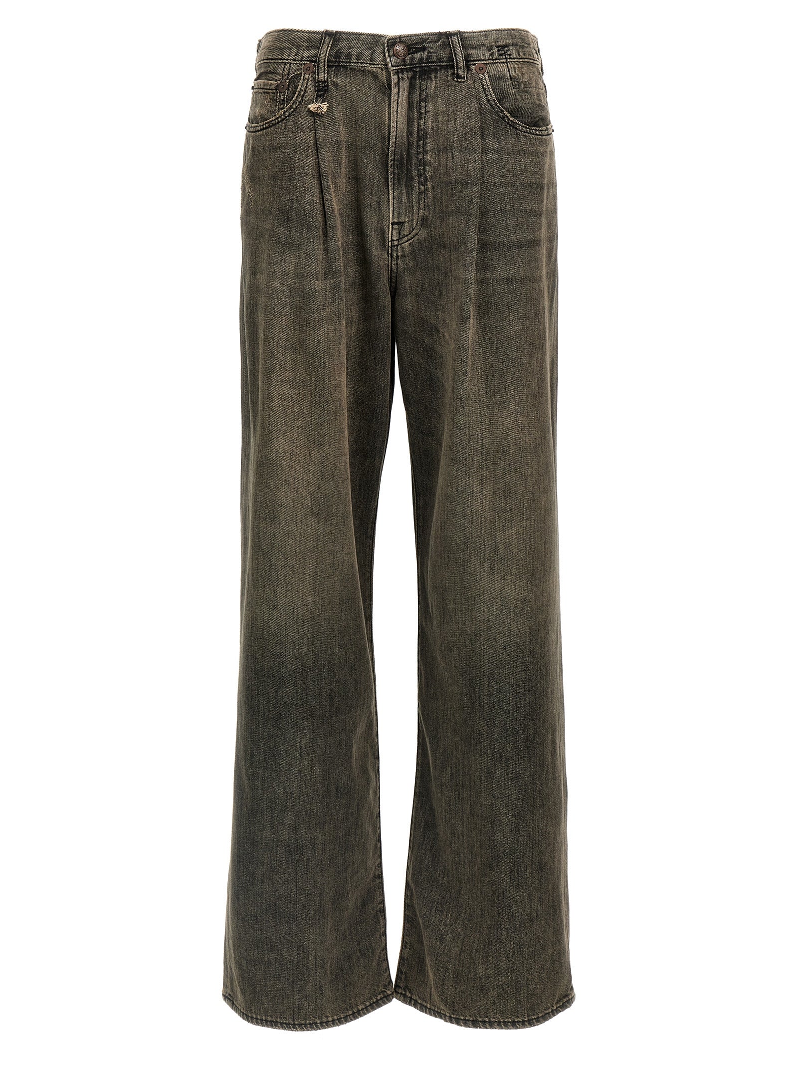 Jeans in denim in cotone Delavé a vita alta con ampia gamba pieghetta, chiusura a zip e bottoni, cinque tasche e tag logo posteriore.