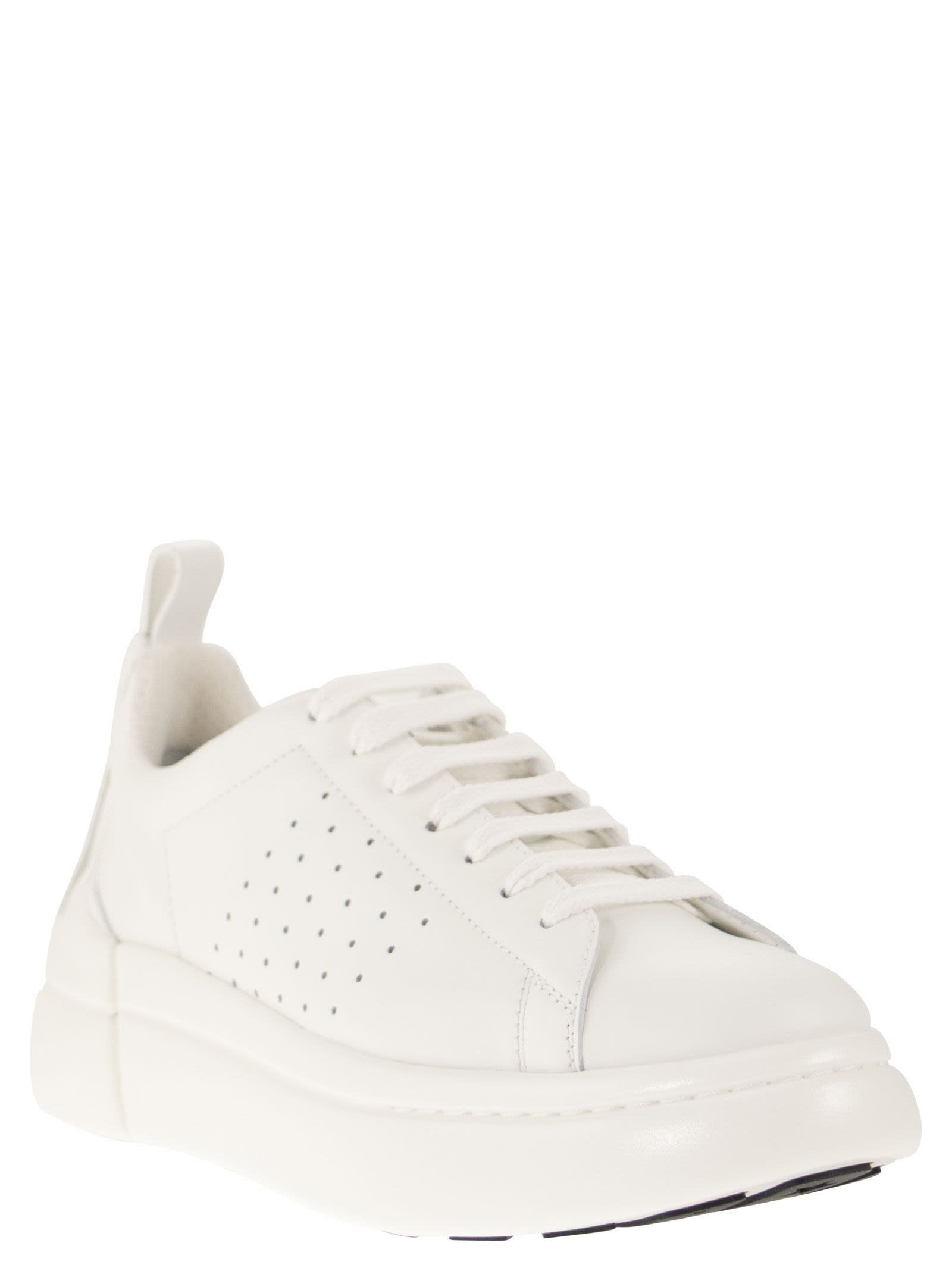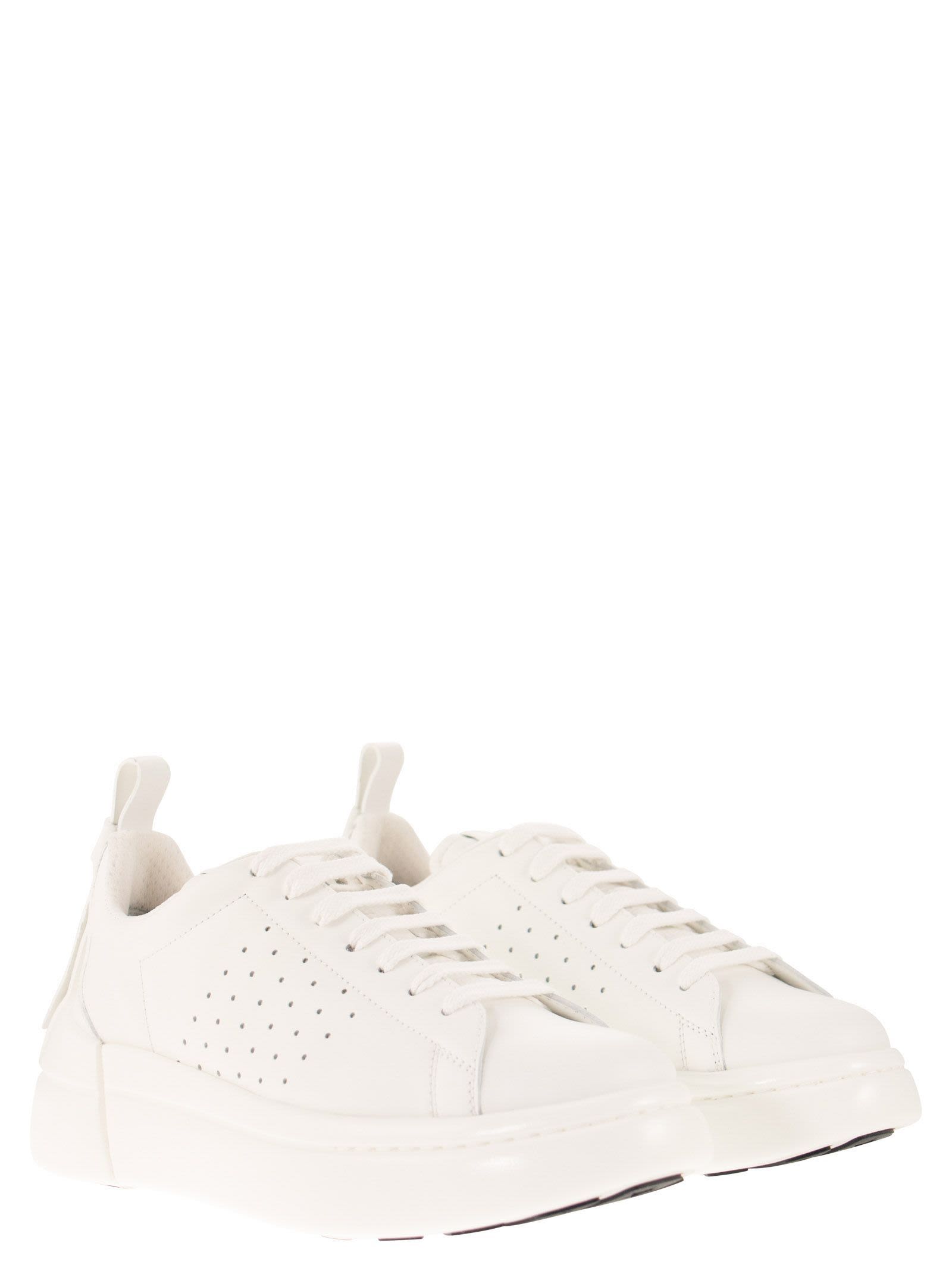 Realizzato in pelle bianca, Redv 's Gli allenatori sorprendono con la loro suola maxi in gomma da tono. Abbinalo a mini-vestiti o denim per una finitura ultra-moderna. - Dettaglio dell'arco sul retro - ID progettista di suola in gomma oversize personalizzata: 2q0s0e11stp 0bo