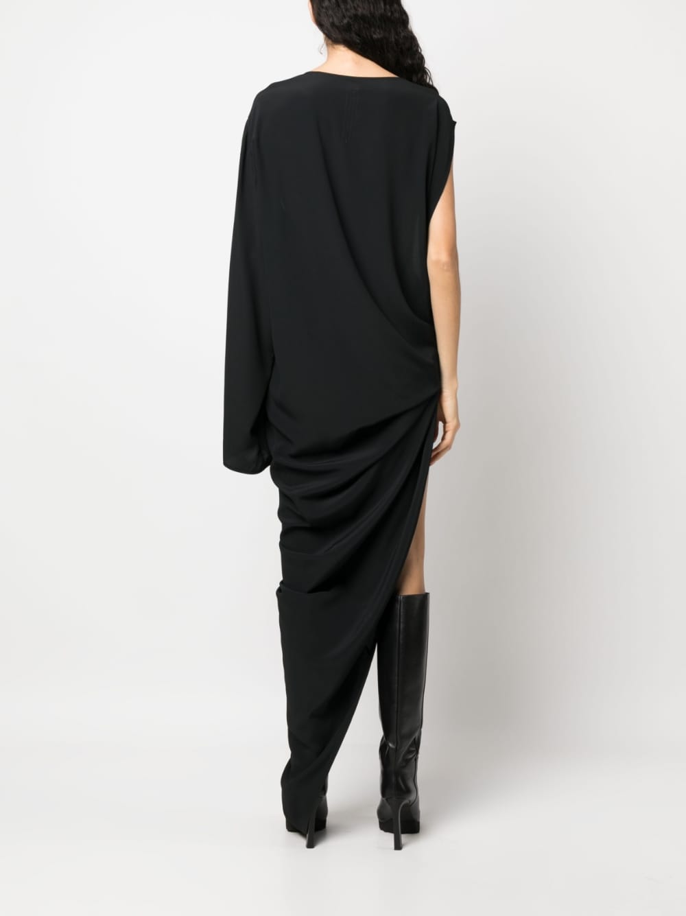 Rick Owens Long One Spalla Draped Silk Blend Dress