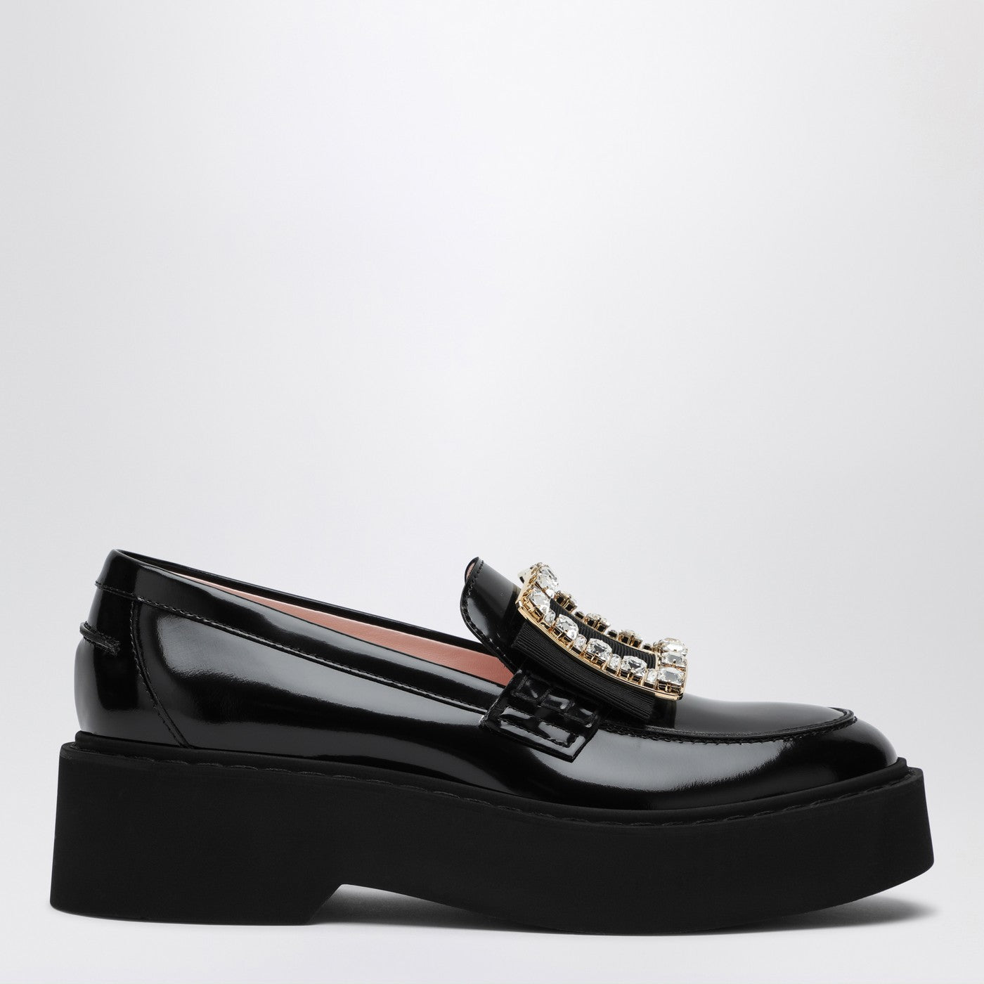 Black Patent in pelle Roger Vivier Platform mocassini con fibbia di strass e suola maxi in gomma.