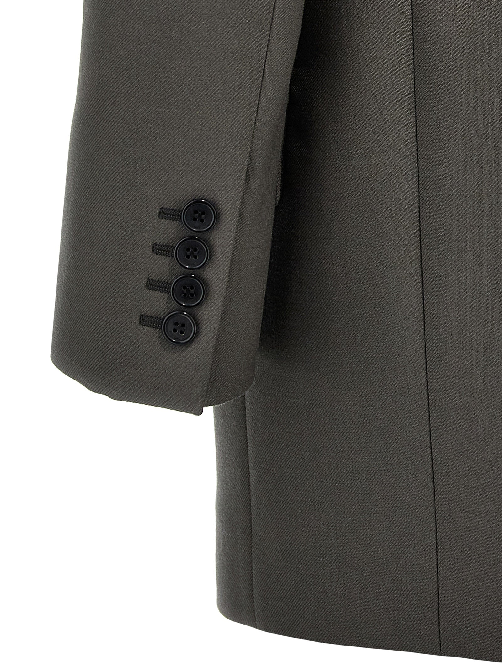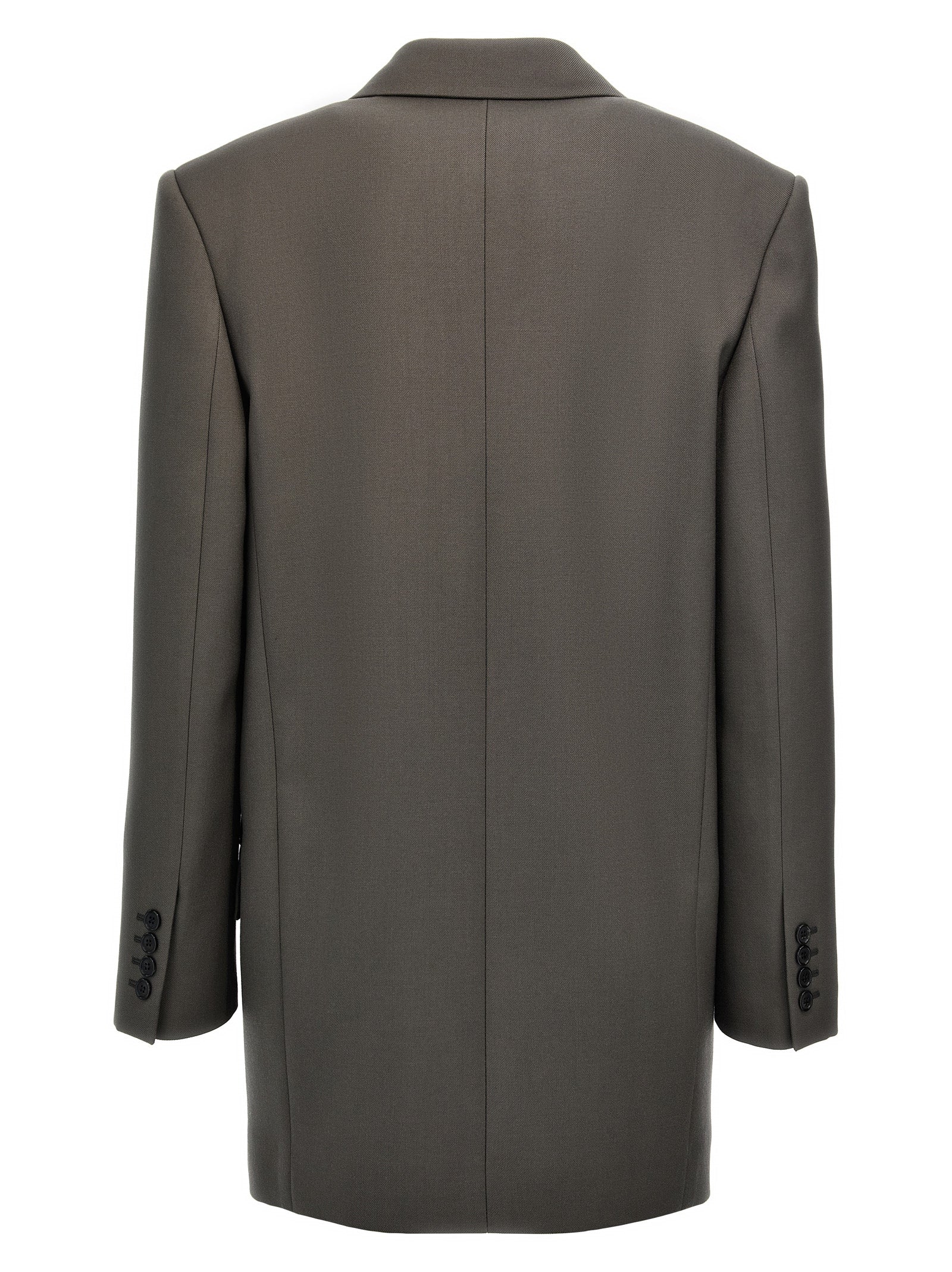 Blazer a doppio petto in gabardina di lana con chiusura a bottone, tasche, maniche lunghe, spalle imbottite.