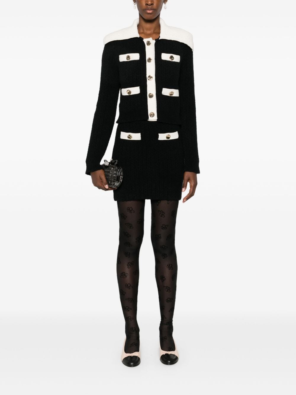Black ALPACA lana miscela a maglia Edilizia a maglia Pulsini tono in oro in vita alta e elasticizza due tasche per patch anteriore orlo dritto-lunghezza-lunghezza sfoderata