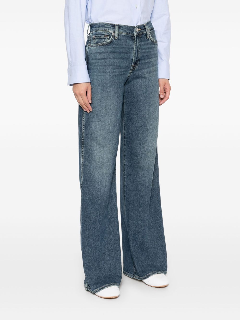 Sette jeans in denim svasati da lotta