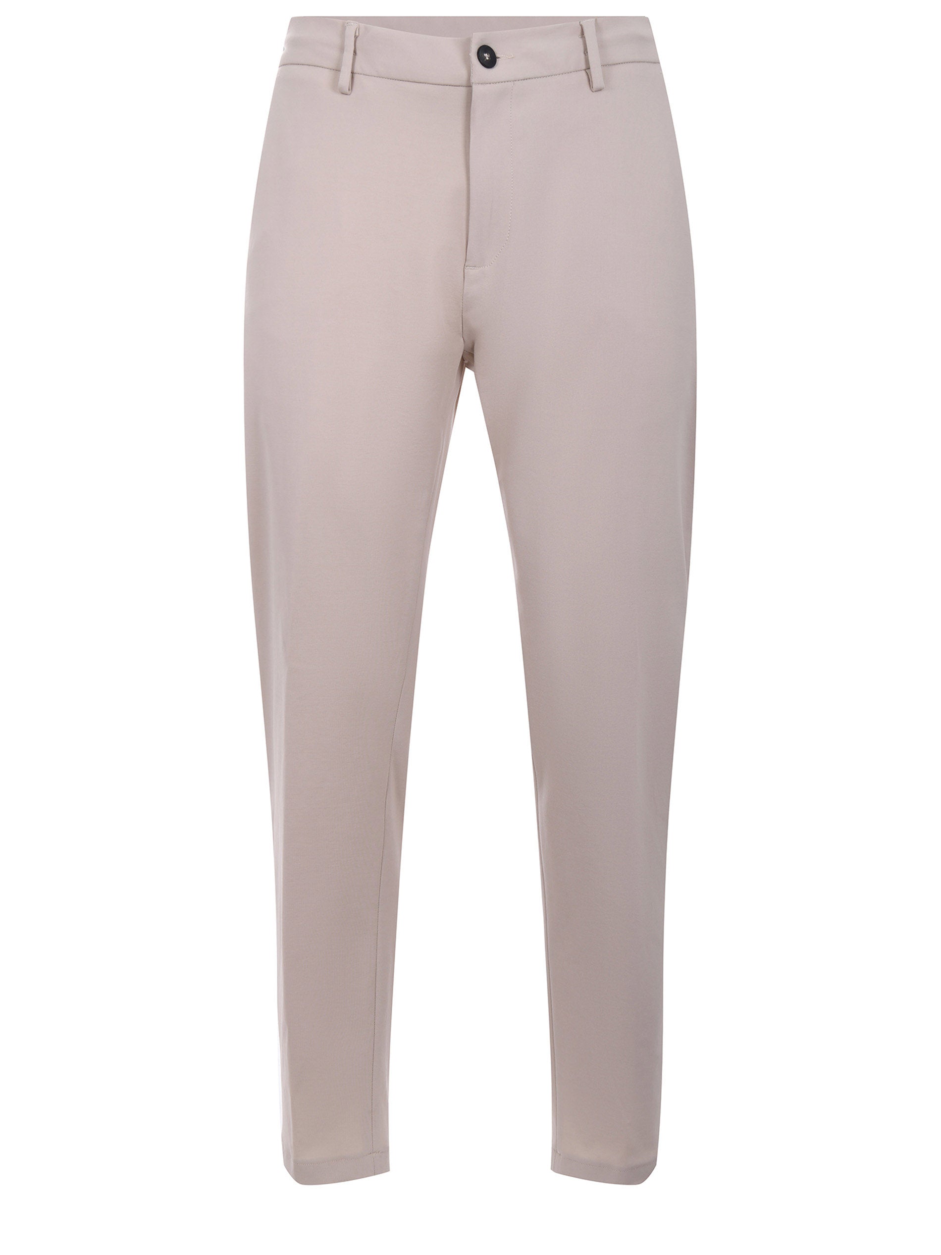 Pantaloni Siviglia in Jersey Beige di cotone allungato. Tessuto a punto Milano. Vita elasticizzata con coulisse. Picchieri della cintura. Chiusura zip e pulsanti. Tasche dell'America. Tasche Welt sul retro. 57% di cotone, 37% in nylon, 7% elastano