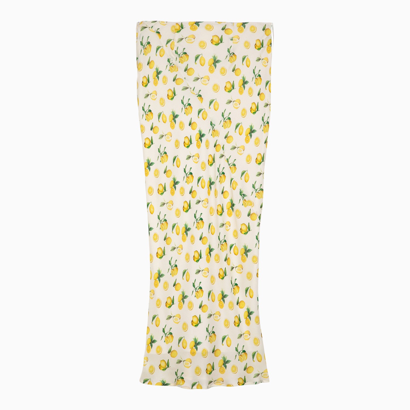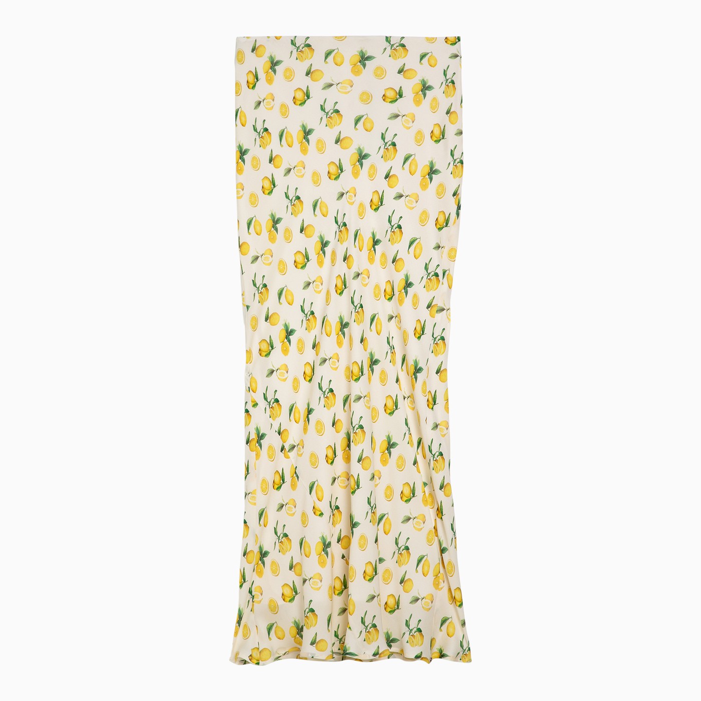 Gonna lunga di Sportmax in seta alla vaniglia, con una stampa a limone tutto il limone.