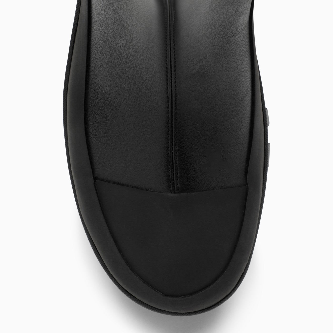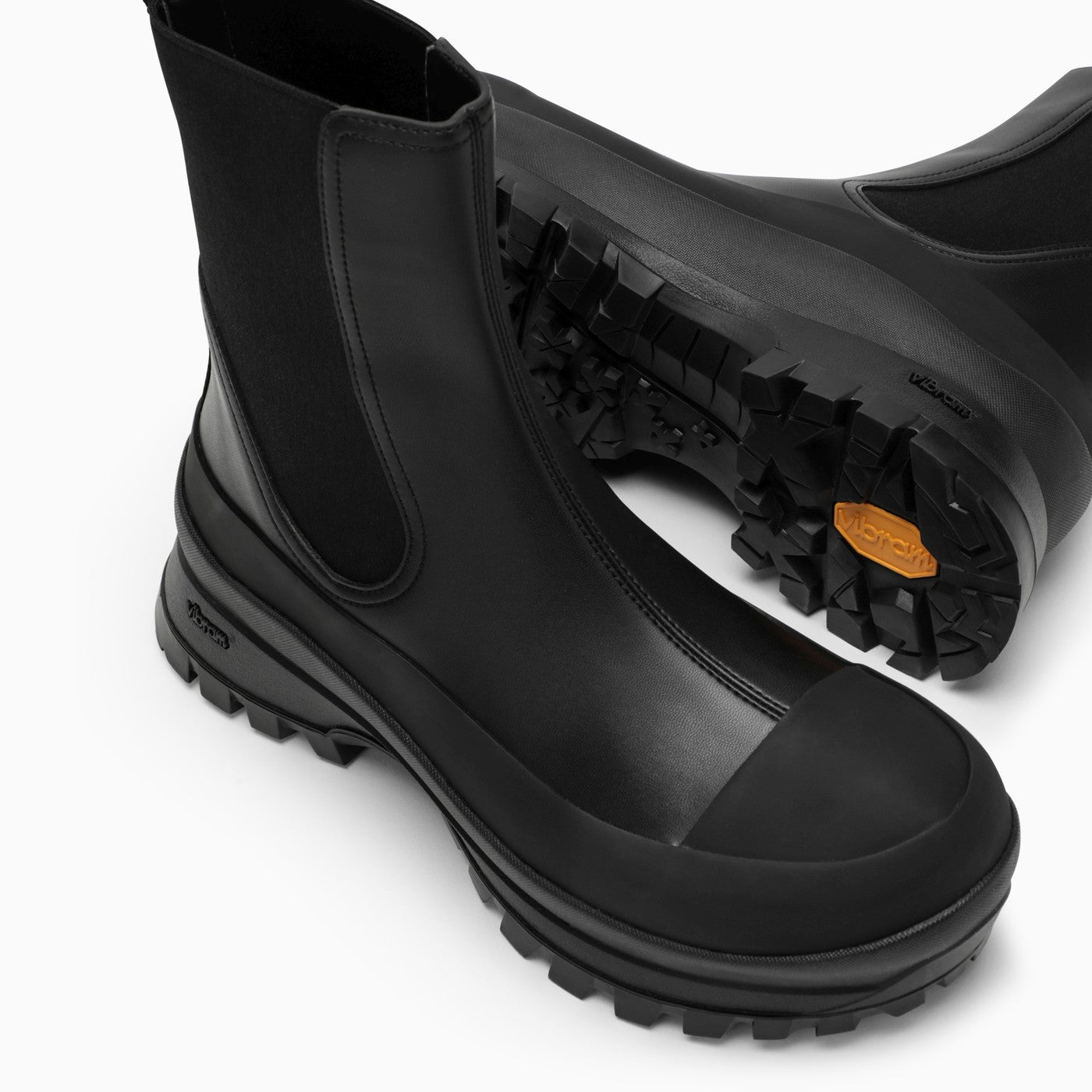 Stivali alla caviglia neri in Eco-Leather di Stella McCartney con intarsi in tessuto elastico laterale, linguetta logorata posteriore e suola in gomma vibram.