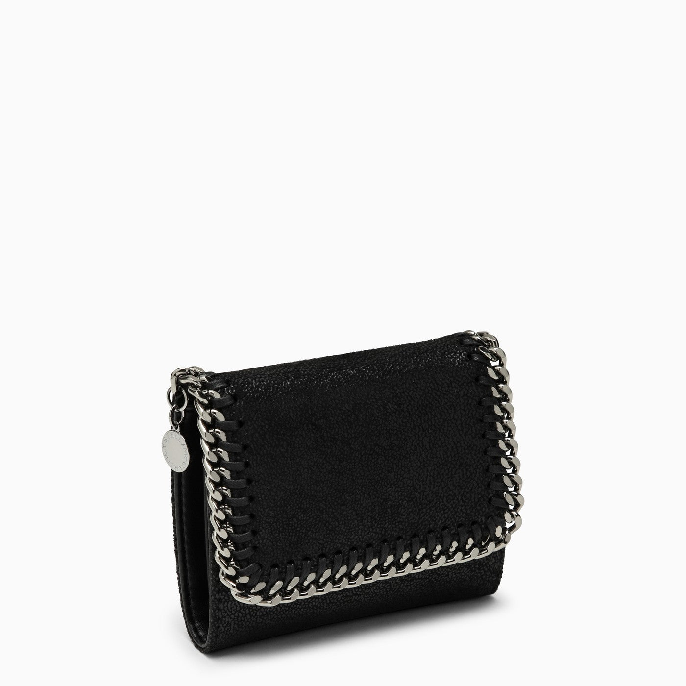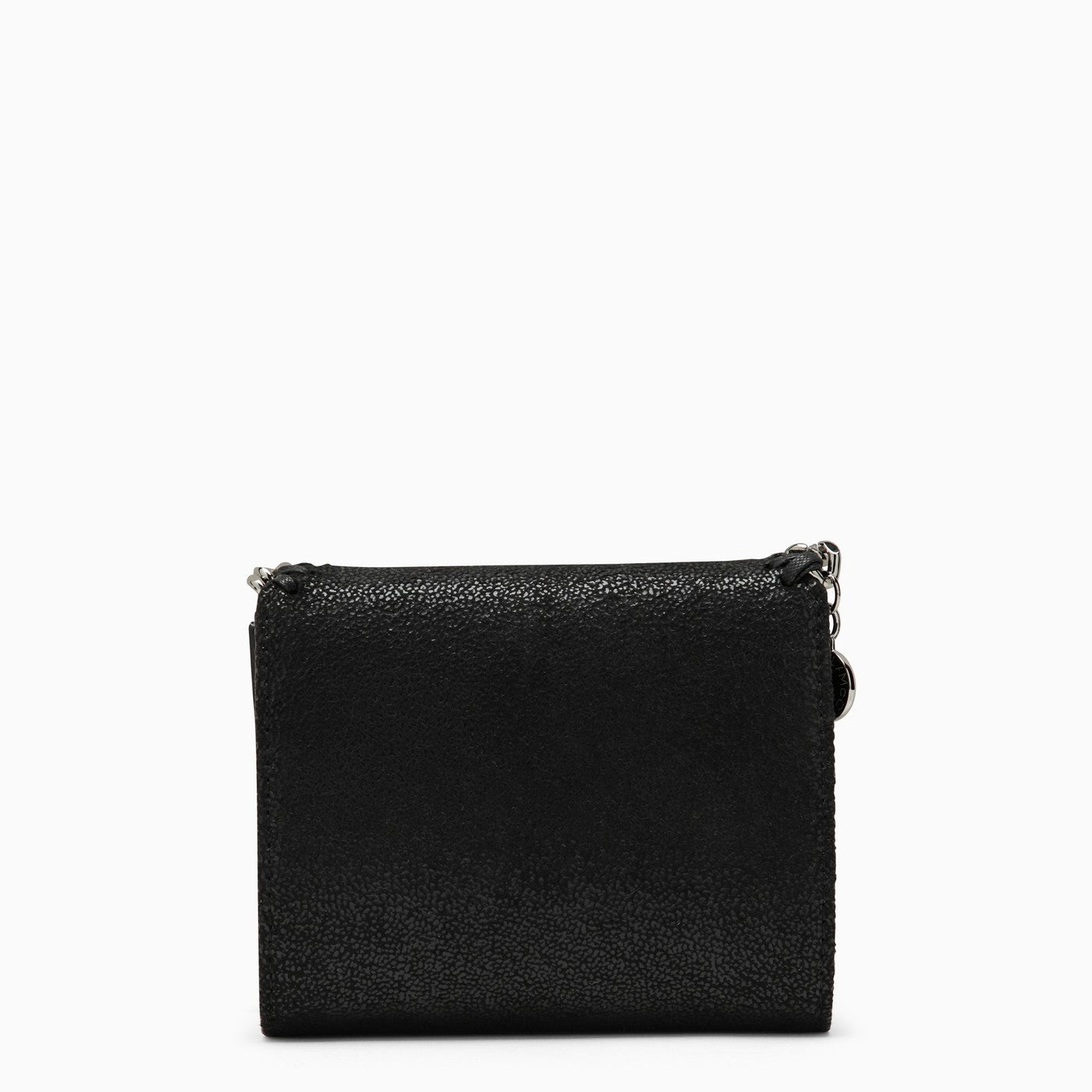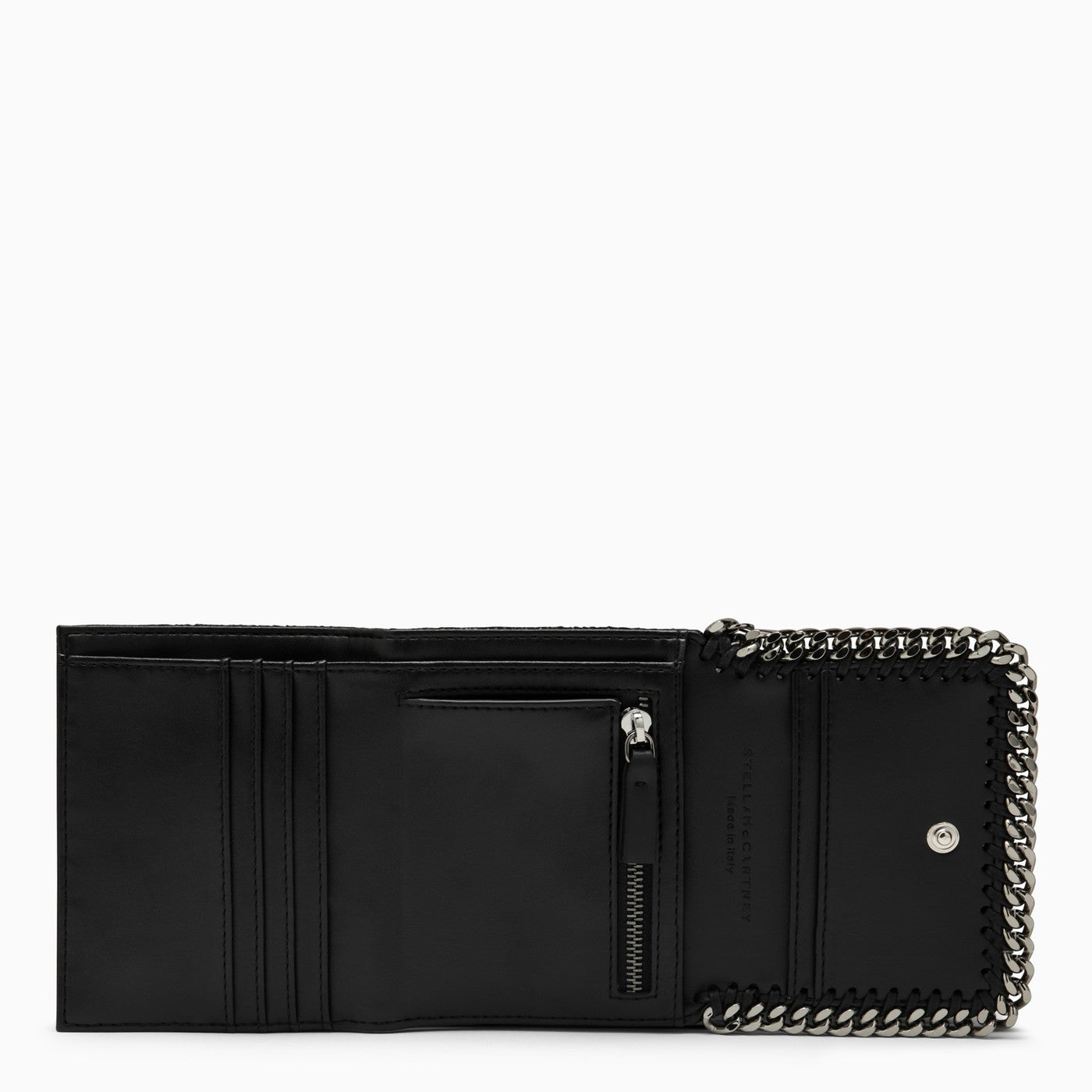 Piccolo portafoglio a flap di Stella McCartney in cervo black shaggy con un rivestimento a catena del rutenio, disco di logo Stella McCartney, slot a sei carte, una tasca principale e una borsa per monete con zip. Completamente foderato nel poliestere riciclato con logo di Stella McCartney.
