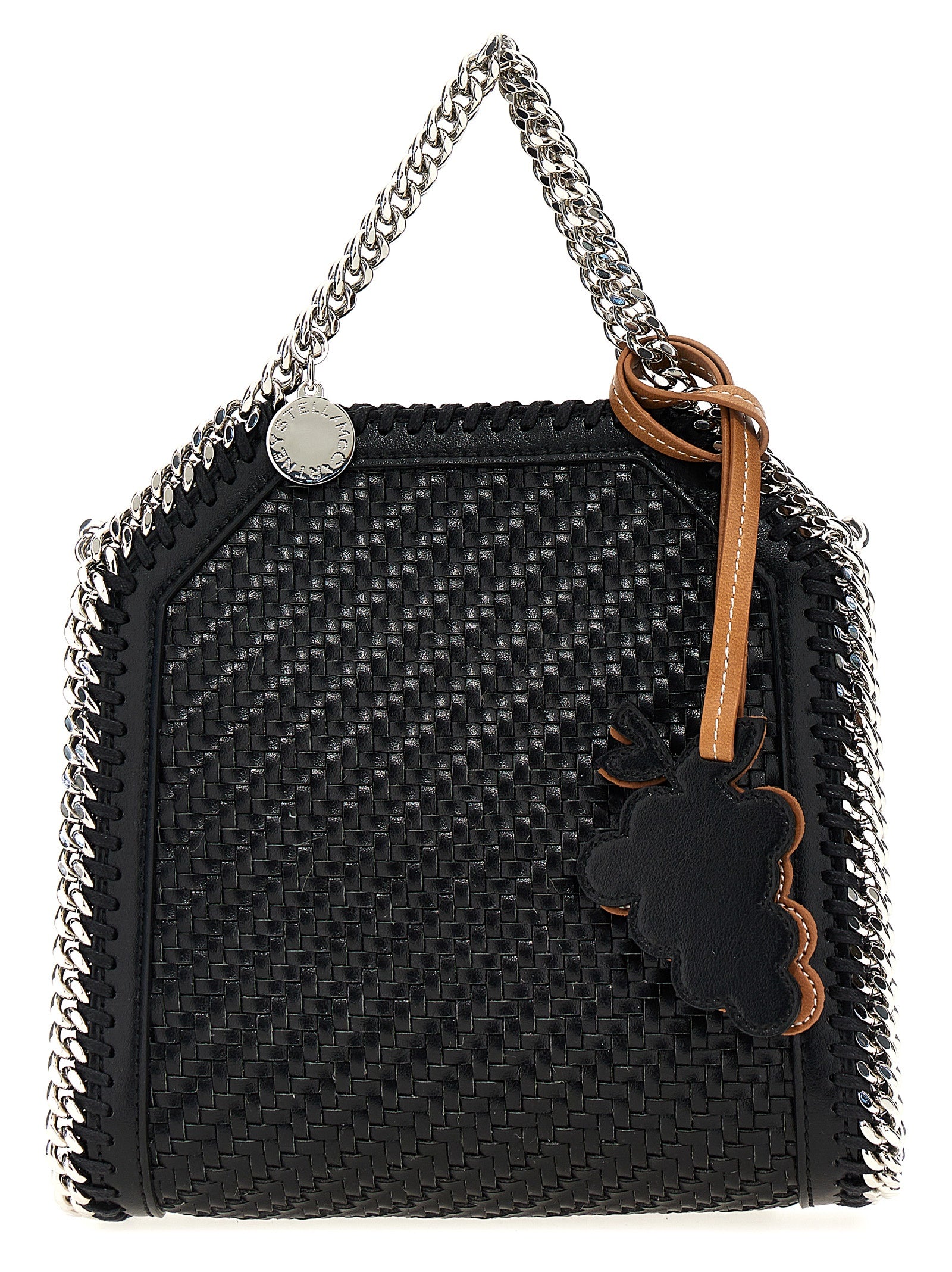 La borsa "Micro Falabella" in tessuto vegea con chiusura magnetica, doppia maniglia a catena corta, maniglia a catena lunga.