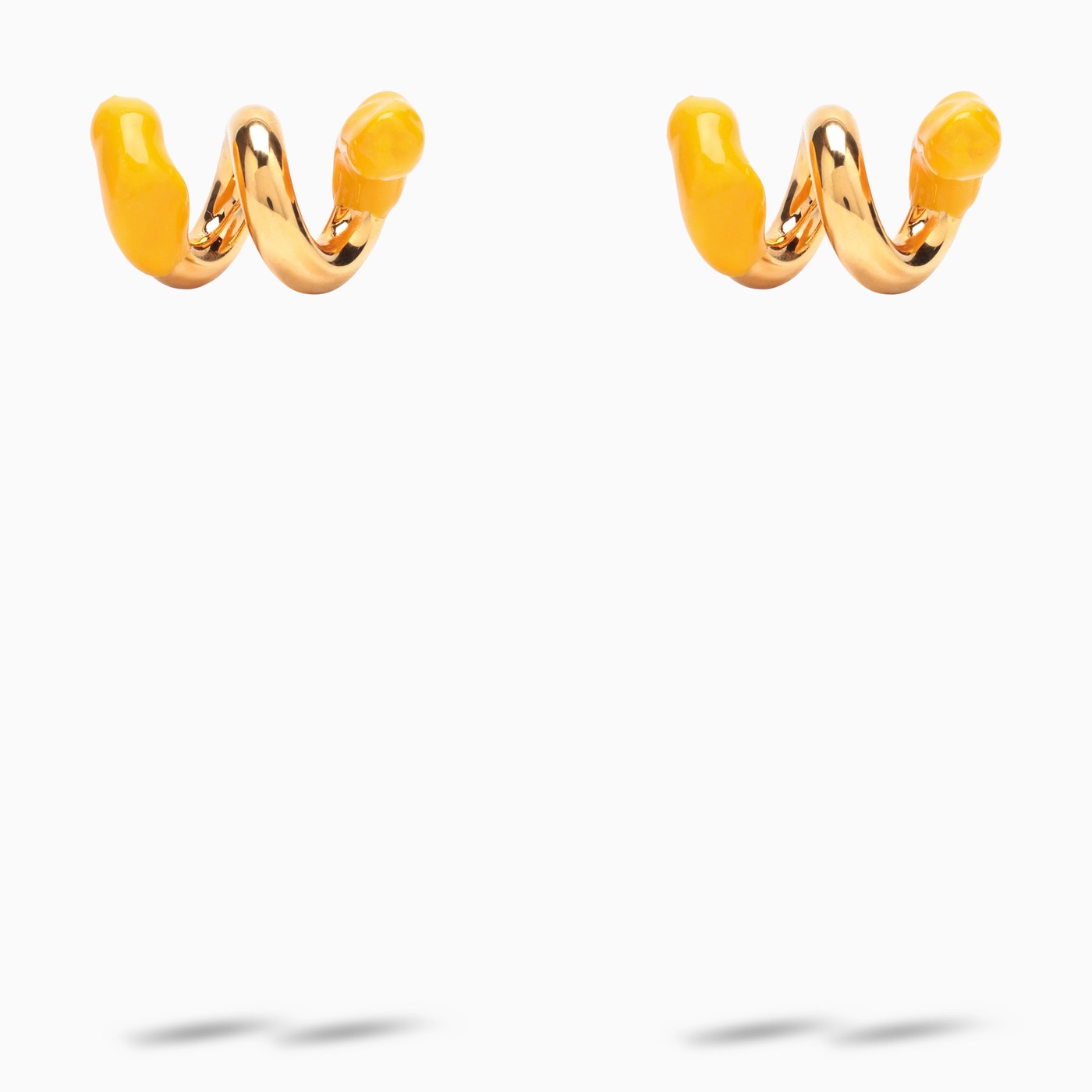 Orecchini di Sunnei in ottone color oro, con una finitura a effetto gommata in un colore contrastante e una chiusura a farfalla sul retro.
